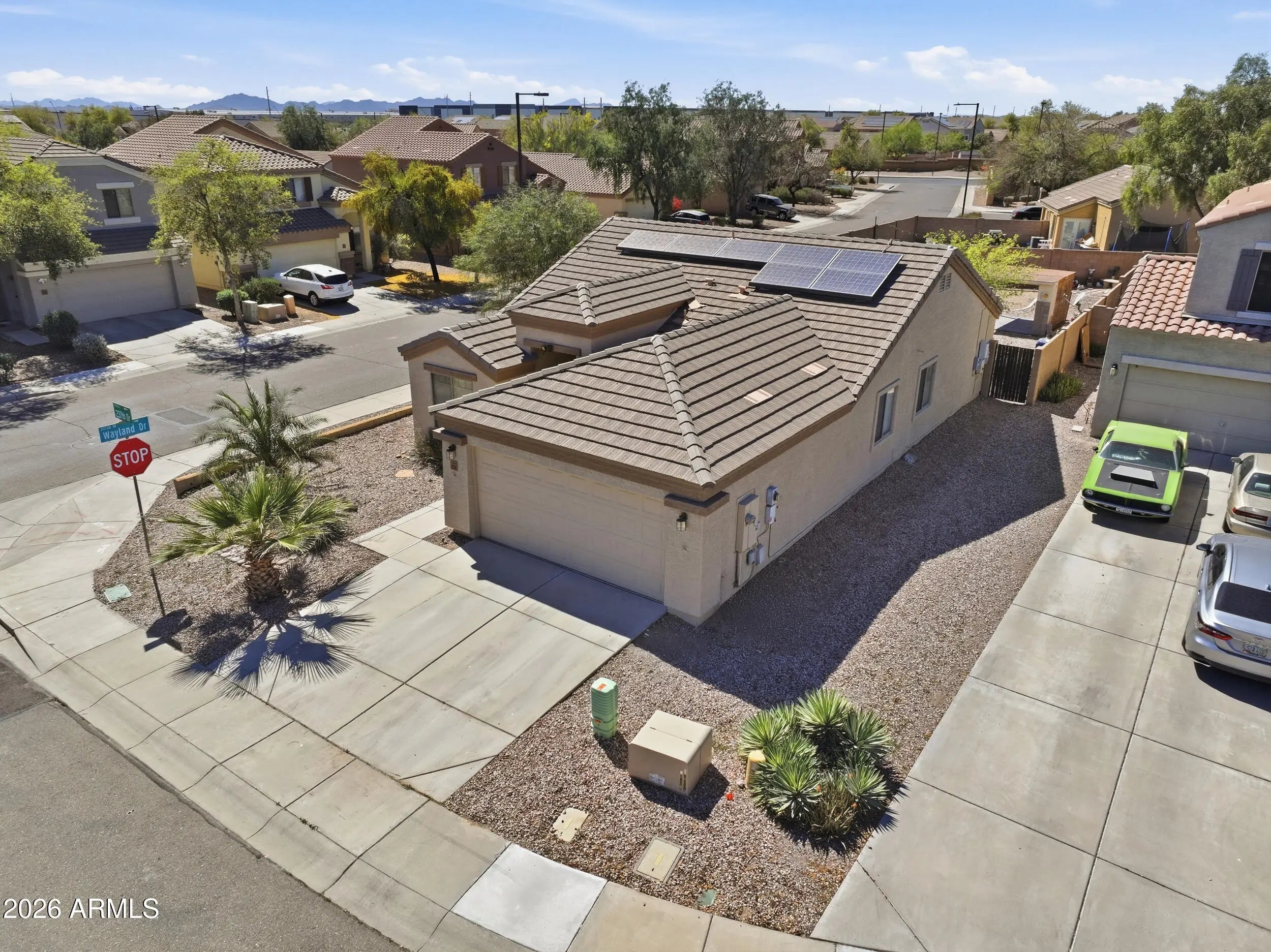 Single-story D.R. Horton home in Buckeye's Rita West community featuring vaulted ceilings and a fantastic floor plan. Located on a corner lot directly across from a neighborhood park, offering added privacy and great views. Interior features fresh paint and an open living space filled with natural light. Leased solar helps with energy efficiency. Conveniently located near shopping, dining, and major highways, making commuting and everyday errands easy.