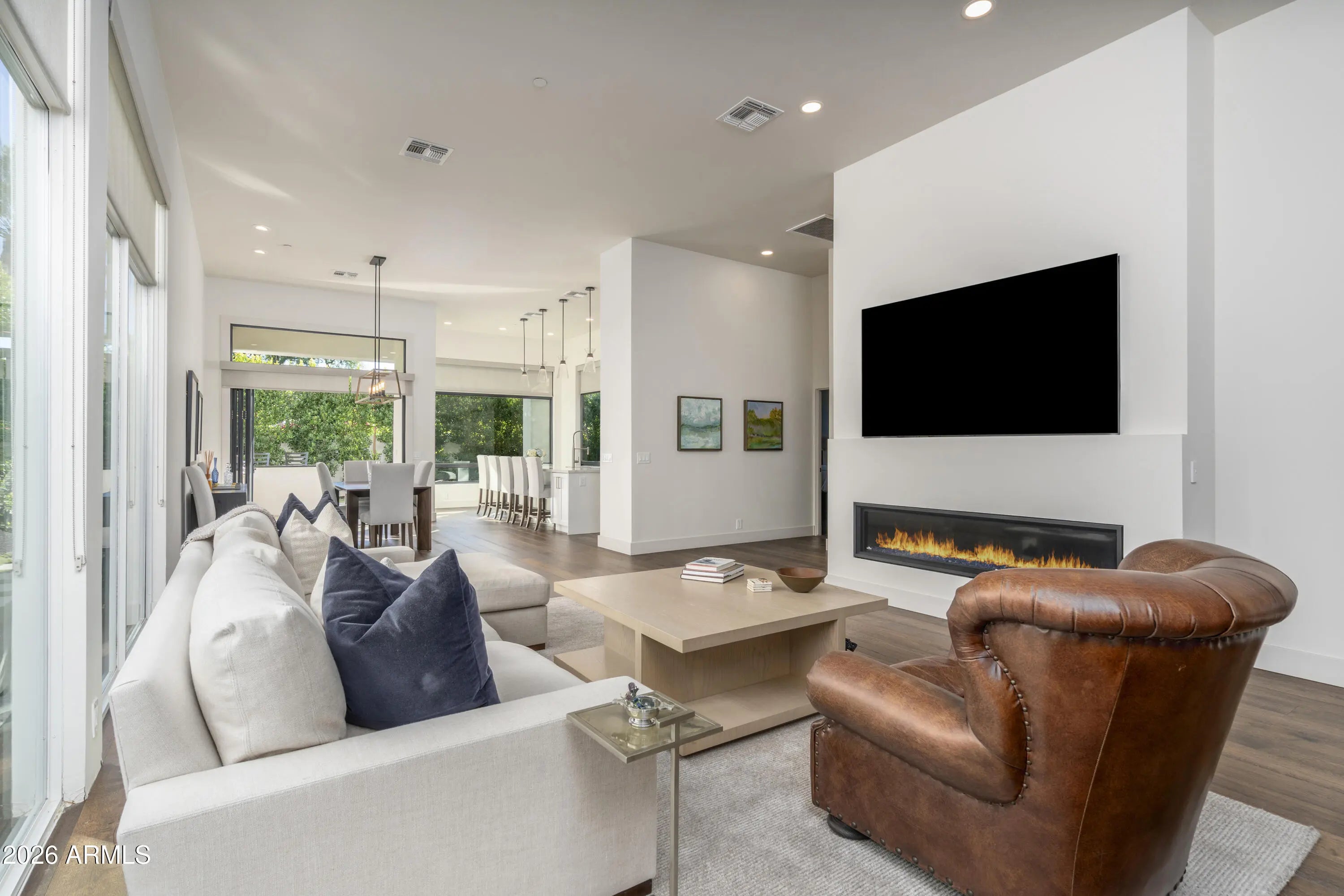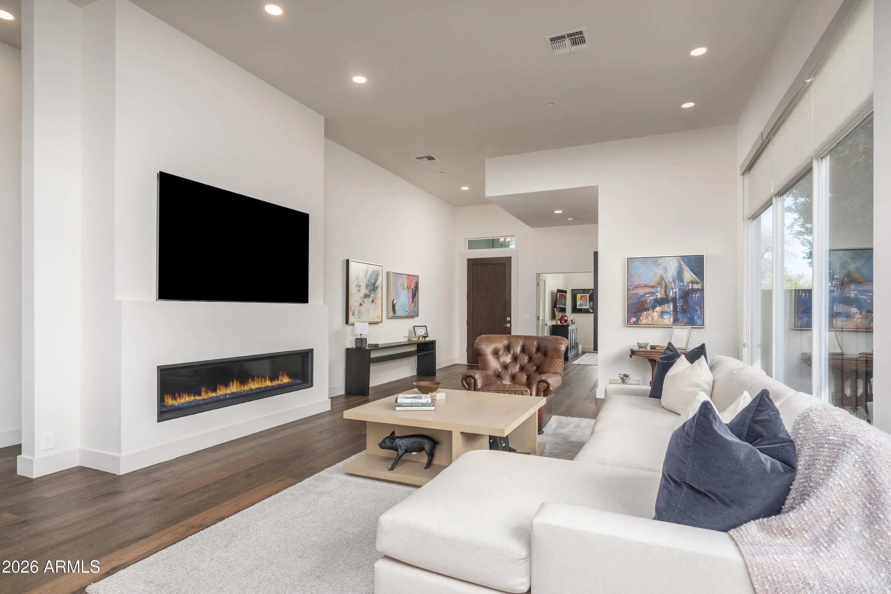 Unparalleled Scottsdale luxury awaits in the guard-gated enclave of 7600 Lincoln. This impeccably reimagined single-level residence has undergone a complete top-to-bottom renovation, offering 2 bedrooms and 2 bathrooms designed for effortless sophistication. At the heart of the home, the chef's kitchen impresses with custom cabinetry, a sprawling statement island, and Wolf appliances, including a large wine refrigerator. Engineered hardwood flooring flows seamlessly throughout expansive living spaces, enhanced by abundant natural light pouring in through oversized windows and doors. Step outside to a meticulously designed, low-maintenance outdoor oasis featuring a built-in grill with bar seating and a cozy fire pit ideal for hosting guests. This home is sure to please.