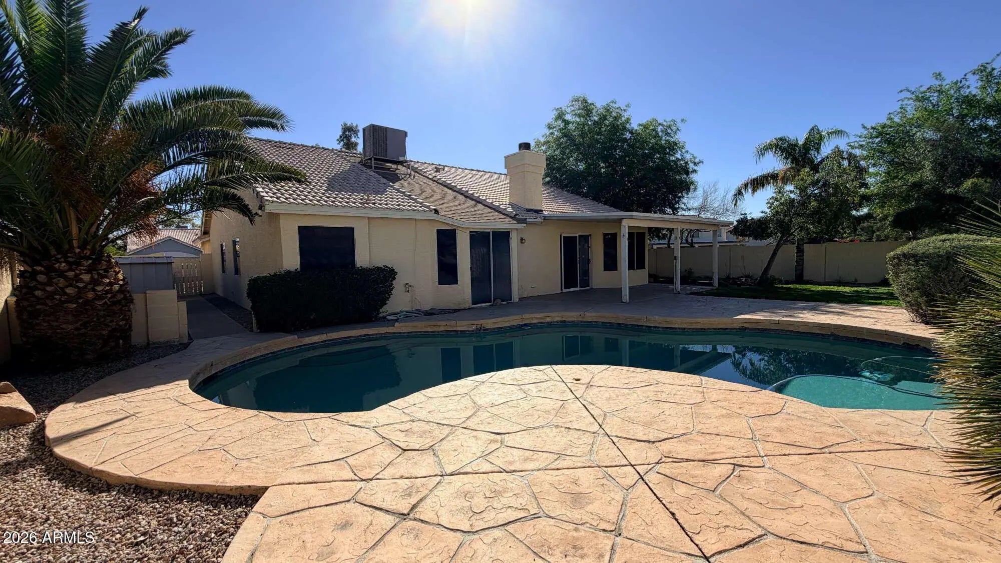 Pet friendly 4 bedroom, 2 bath Chandler home offering 1,801 sq ft on a corner lot with a private pool and pool service included in the rent. The interior has been beautifully updated and the home has not been occupied since the renovations were completed. The living area includes a fireplace and ceiling fans are installed in every bedroom. The kitchen comes fully equipped with all appliances. A covered patio overlooks the backyard pool area. Located close to shopping, restaurants, Downtown Chandler, Downtown Gilbert, and convenient access to the Intel campus and the surrounding tech corridor.