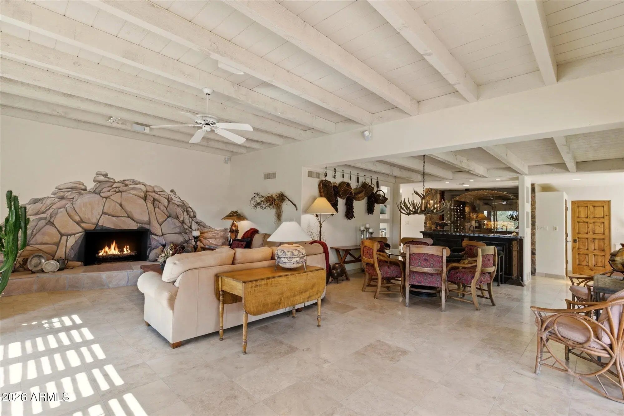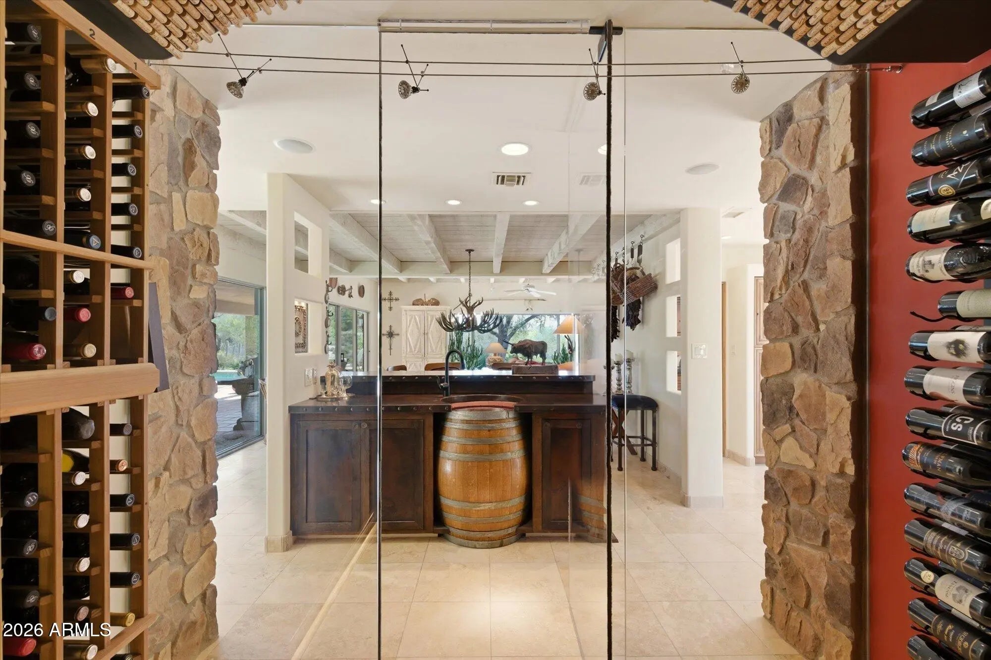 One of a kind- Rare Opportunity! Spacious-double customized home- Entertainer's Dream. Flexible floorplan-rooms open to Spectacular desert. Ideal Multi-Generational Home. Tremendous Beamed Great Room with corner of glass - Terrific Indoor-Outdoor living. Ultimate wine room & unique wet bar. Two kitchens, one with Viking appliances. Striking granite counters, also Butler's coffee bar. Quality cabinetry & doors throughout. Sun filled interiors-Views in every direction. Southwestern family room-distinctive fireplace & overlooking spectacular outdoors-patios, pool & spa. Spacious den/office and exercise room-TURNKEY! Most furnishings & art included. New roof-2023. Located within The Boulders-fabulous Resort & Golfing community. Membership optional. Home shows Exceptional Pride of Ownership.