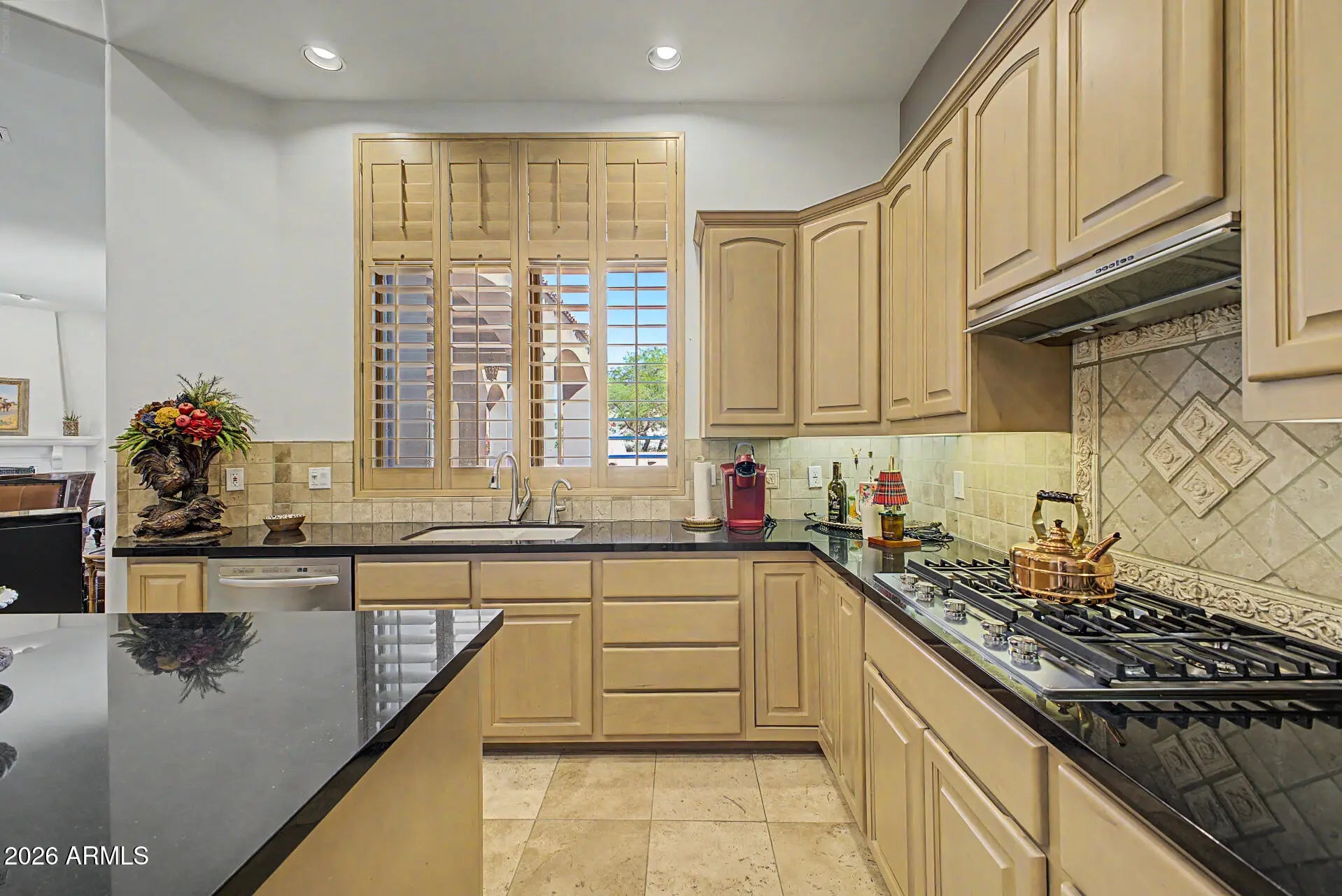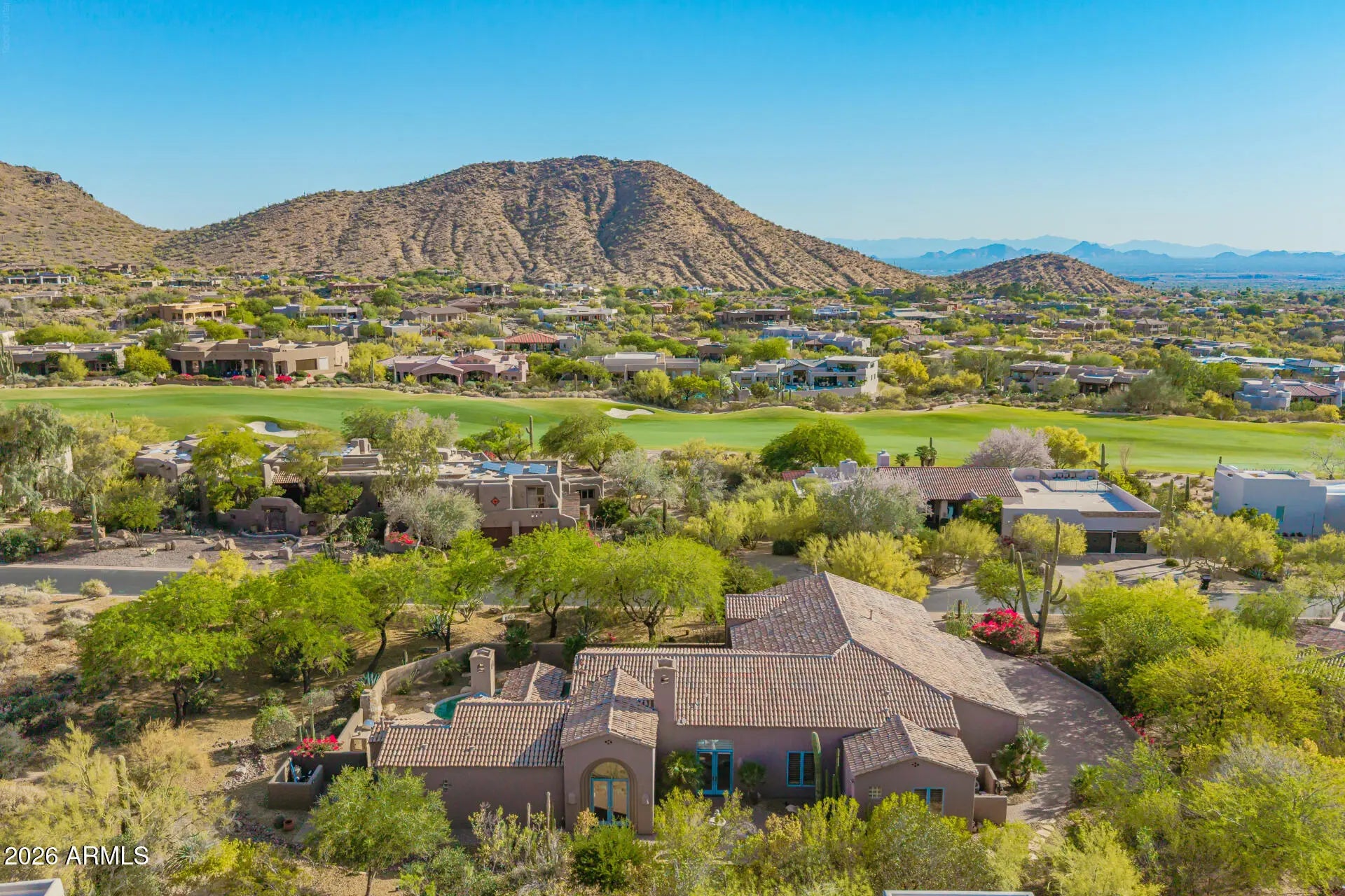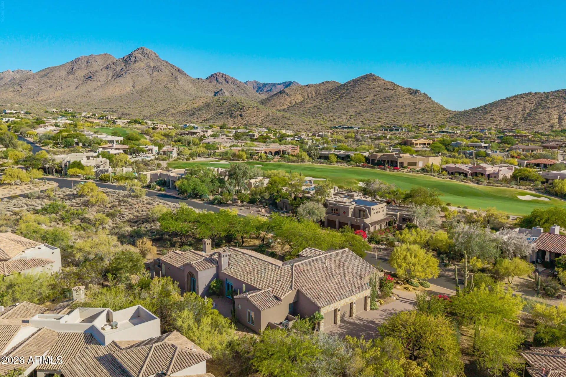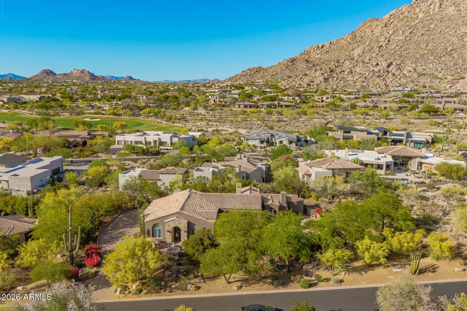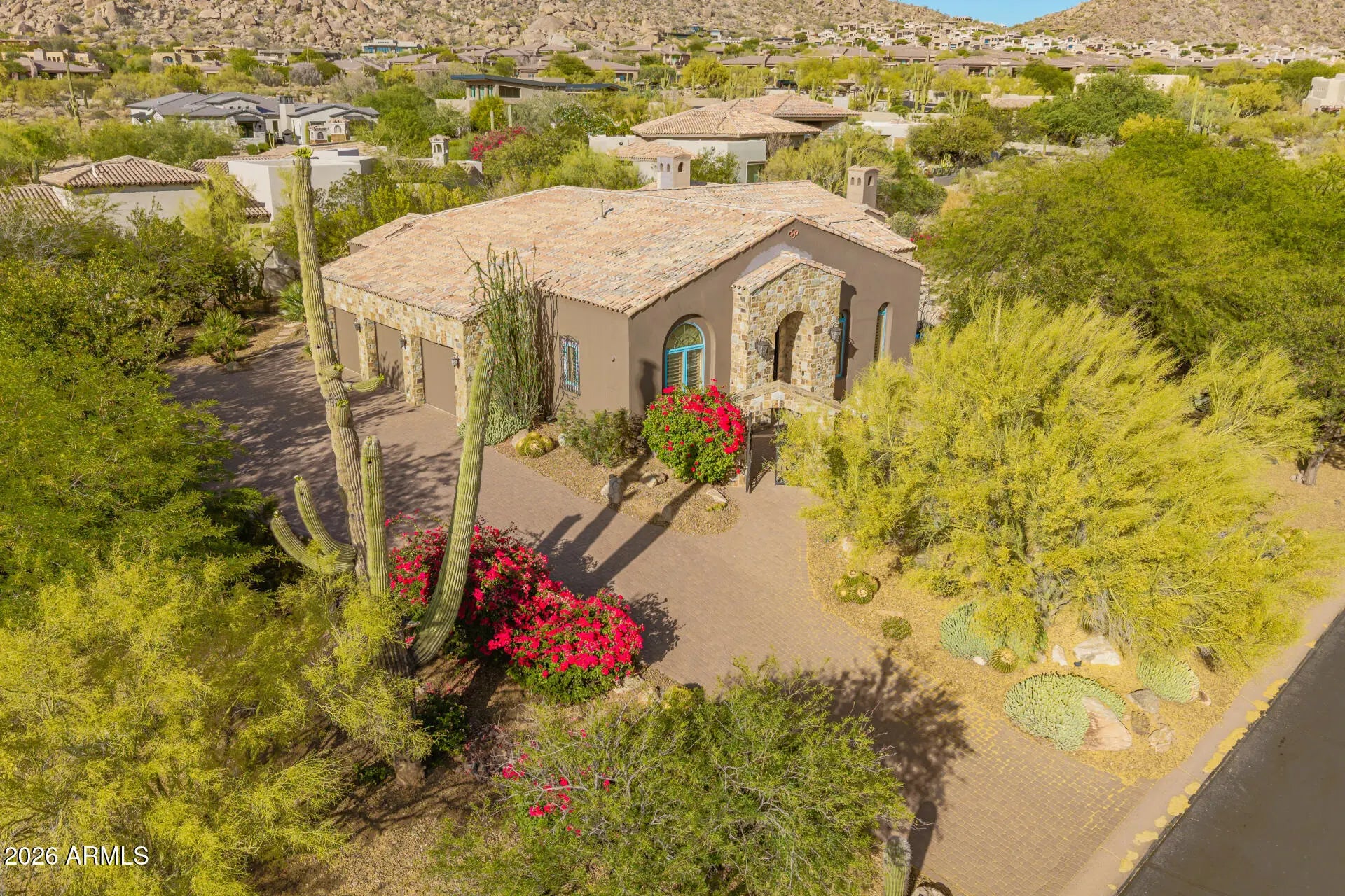 Nestled within the prestigious guard-gated community of Glenn Moor at Troon Village, residents enjoy a rare blend of privacy, security, and elevated North Scottsdale living with estate-sized lots and breathtaking desert, mountain, and city light views. This beautifully updated estate offers a rare blend of privacy, elegance, and serene desert living on an expansive .60-acre lot with stunning mountain views. The single-level home spans 3,093 square feet with no interior steps and features 3 bedrooms plus a dedicated office with a wet bar, along with a 3-car garage and a paver driveway. Designed with timeless craftsmanship, the home showcases solid wood doors and cabinetry, polished travertine floors with matching baseboards, wood beam accents, smooth walls, plantation shutters, & recessed lighting. The chef-inspired kitchen--open to the family room--features a large island with a secondary vegetable/prep sink, granite countertops, a gas range, double ovens, and generous prep and storage space, ideal for both everyday living and entertaining. A separate dining room and living room provide flexible space for formal entertaining, a media room, or additional lounge areas. The oversized primary suite is a private retreat complete with its own fireplace and double doors leading to the backyard, along with a custom closet featuring animal print carpet and refined finishes, while the primary bathroom offers a separate tub and dual vanities. The resort-style backyard is designed for relaxation and entertaining with a heated pool and spa, stone decking, built-in BBQ, large covered patio with wood beam accents, kiva fireplace, and a tranquil side yard with a peaceful fountain, creating the ultimate Arizona lifestyle experience. A+ Schools. While Glenn Moor itself emphasizes a quiet, low-density luxury lifestyle, homeowners have the option to join Troon Country Club, offering championship golf, tennis and pickleball courts, a fitness center, resort-style pool, dining, and a vibrant social calendar. The community is also ideally positioned near the McDowell Sonoran Preserve and Pinnacle Peak Park, providing access to miles of scenic hiking and biking trails, along with nearby parks, golf, dining, and shopping--making it the perfect combination of exclusivity, recreation, and everyday convenience.