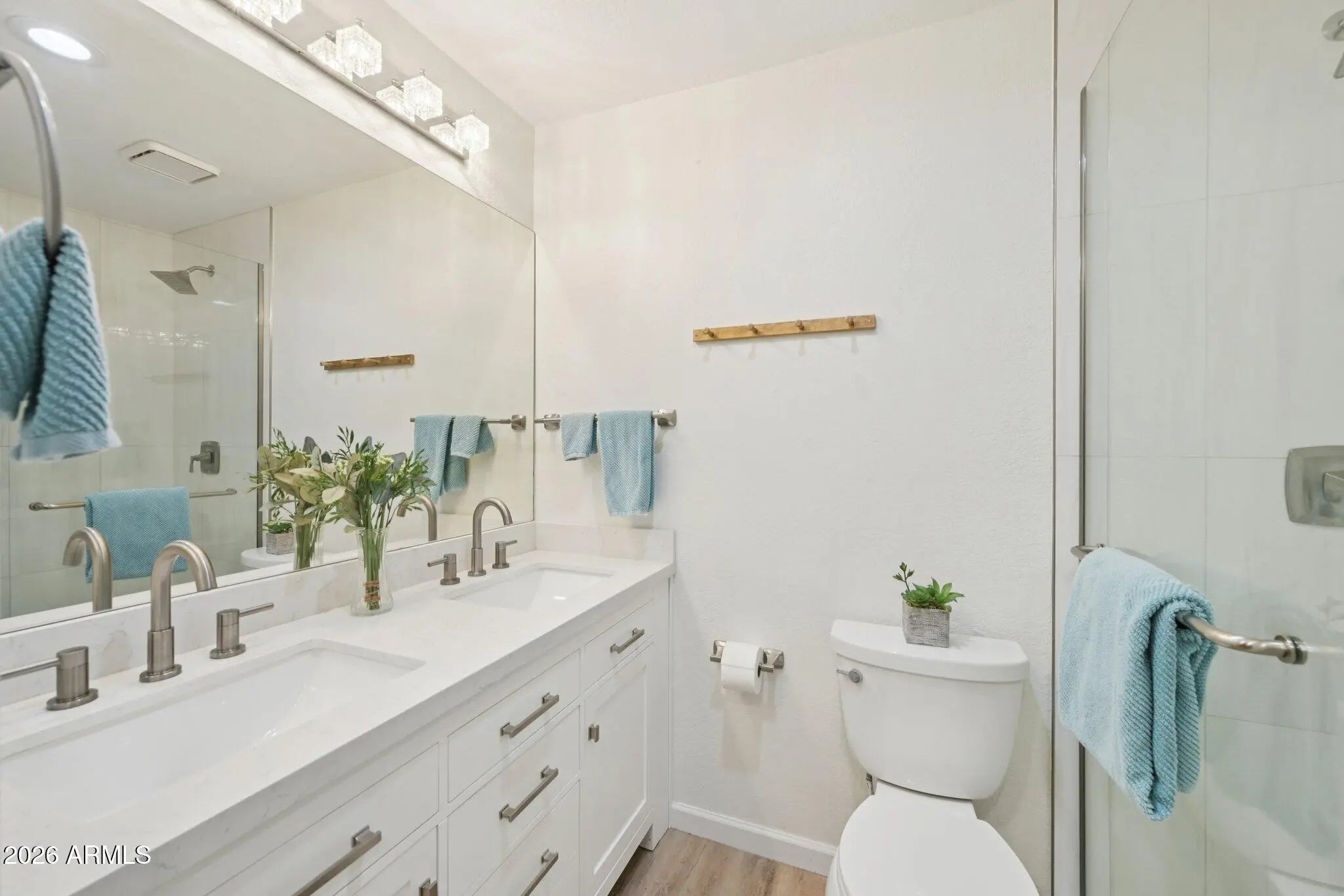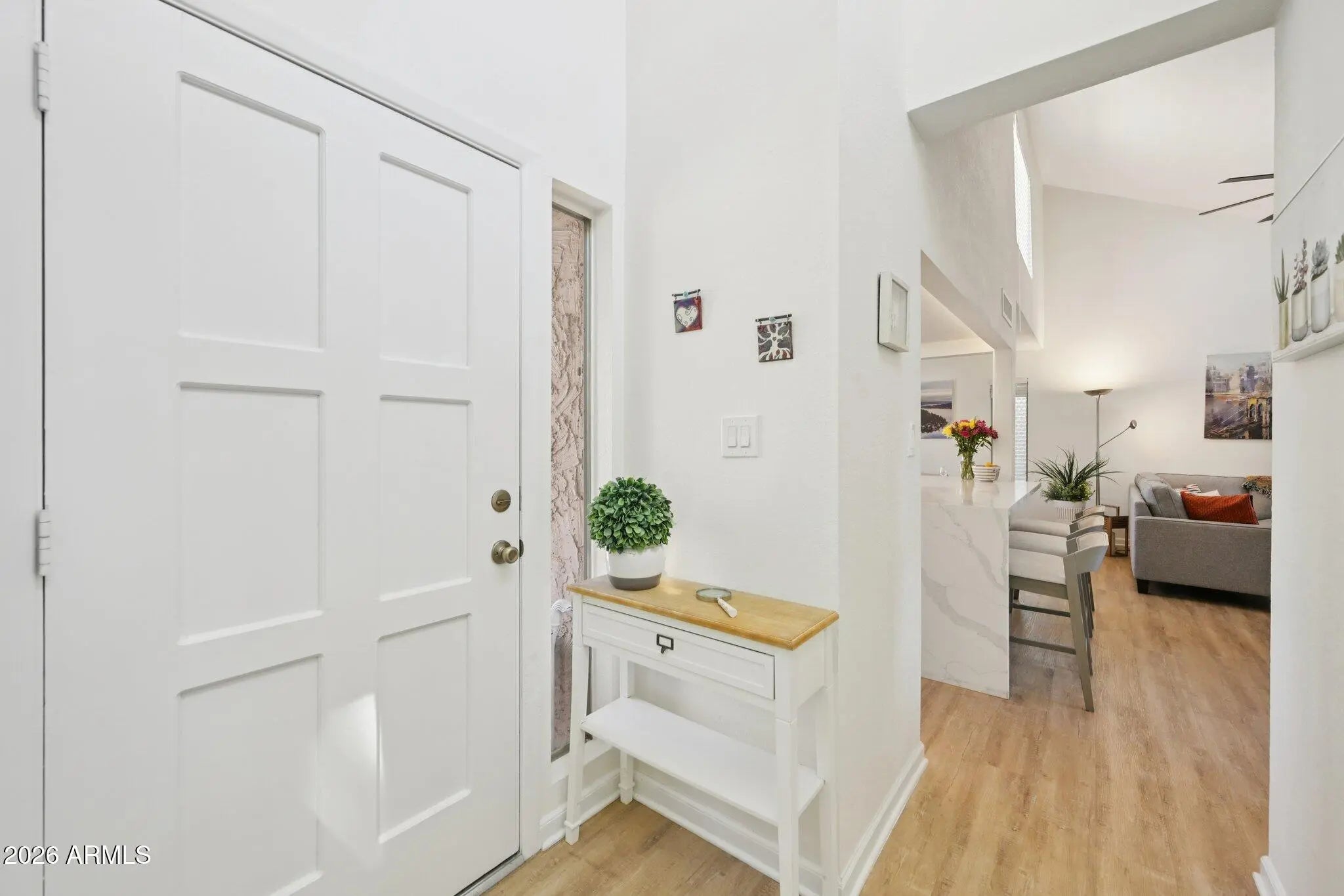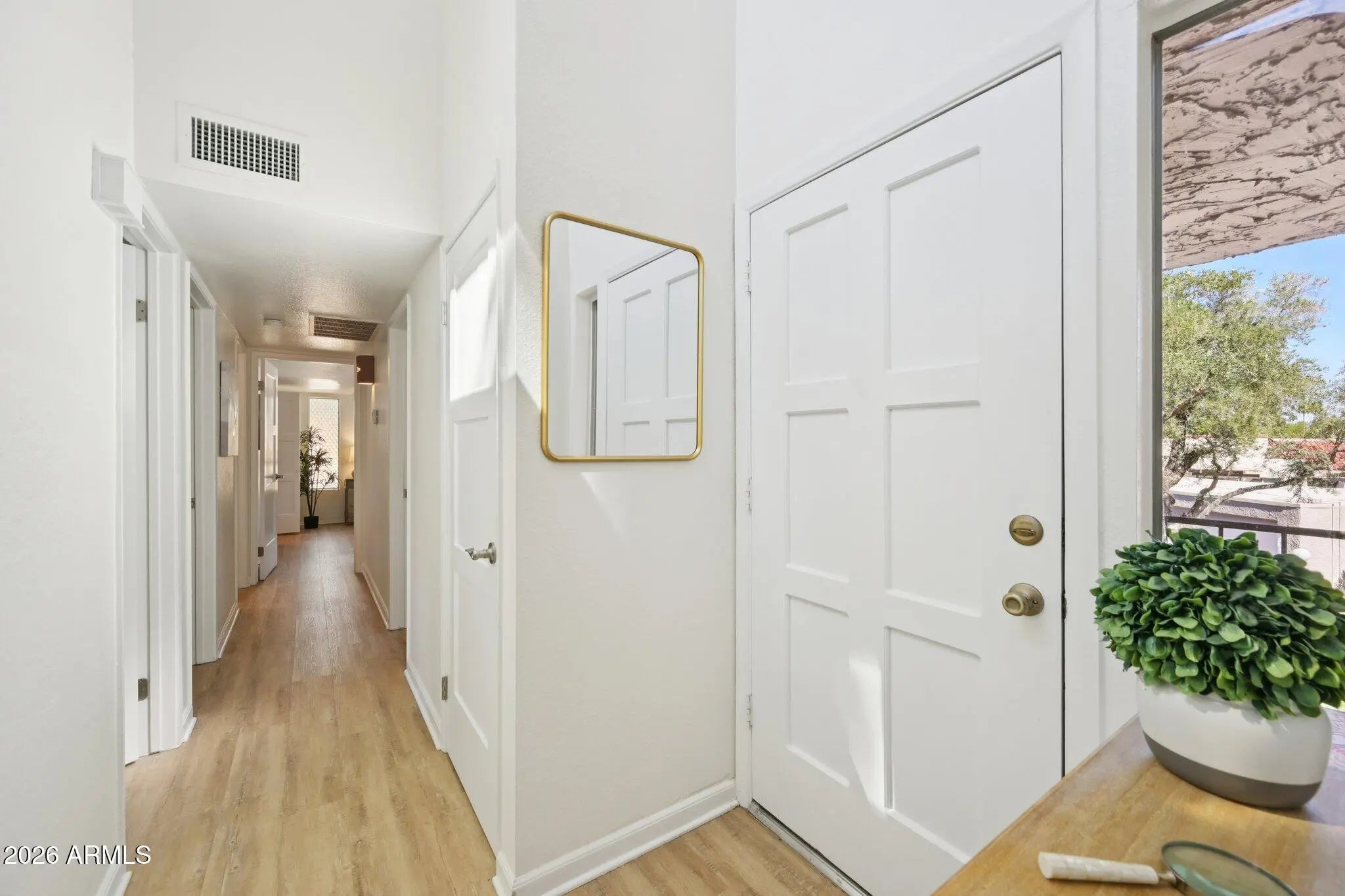 Nestled in the coveted McCormick Ranch community, this fully remodeled 3-bedroom, 2-bath home (2023) combines modern upgrades with timeless charm. The bright, airy interior features soaring ceilings and wide-plank luxury oak flooring throughout. The kitchen showcases shaker-style cabinets with organizers, quartz countertops with a waterfall edge, and brand-new appliances--perfect for everyday living and entertaining. The primary suite boasts a remodeled bathroom and an expansive custom closet, complemented by upgraded closets throughout the home. Additional enhancements include wood blinds, new interior doors, dual-pane windows, dual sliding doors to the patio, ceiling fans with remotes, updated lighting, fresh paint, and a full-size washer and dryer, making it truly move-in ready. Just steps from the community pool and near the two-car garage, residents enjoy a friendly neighborhood with many activities and resort-style amenities, including two heated pools, a spa, fitness center, and HOA-covered water. Dozens of restaurants, shops, and the best network of bike trails adjacent to Camelback Village are within walking distance, offering convenience and lifestyle appeal. This home perfectly blends style, comfort, and thoughtful upgrades in one of McCormick Ranch's most desirable communities.