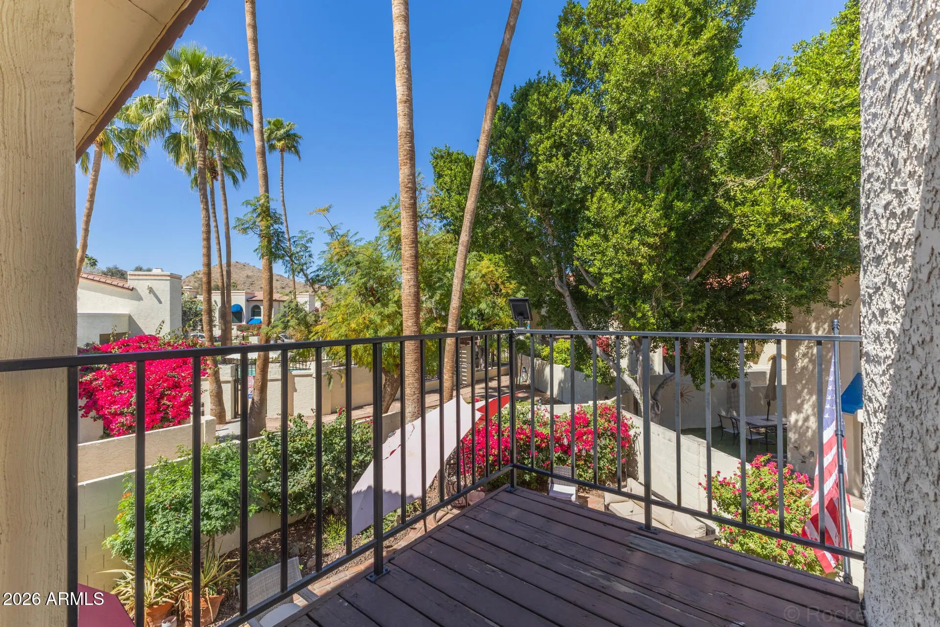 THE POOL PATIO OASIS! **AT THE SIESTA POOL** LARGE PRIVATE PATIO. NEW ROOF & SKYLIGHT. Experience the pinnacle of resort living in this rare, upgraded Pointe home where the Siesta Pool feels like your own private retreat. Unlike standard units, this Pristine Gem features two fully private bedroom suites (no open walls here!) and two full baths. Enjoy soaring ceilings opening to the large open private patio, framed by a canopy of breathtaking palms, serving as a seamless second living space just steps from the water. THE POOL PATIO OASIS LIFESTYLE This isn't just a home; it's a sanctuary. The striking design boasts wood-look flooring and a sun-drenched eat-in kitchen with a large breakfast bar and stainless steel appliances. It's a true escape. (READ MORE The Primary Suite AND second private bedroom BOTH feature clerestory windows and a private balconies... with the primary balcony overlooking your colorful private patio AND with a view of the sparkling Siesta Pool...AND also with three other beautiful community pools to choose from! SUPERIOR FEATURES & RECENT UPGRADES While most Gosnell Court Homes at The Pointe offer limited privacy and 1.5 baths, this home has been thoughtfully enhanced: " True Privacy: Both bedrooms are fully enclosed with private clerestory windows. " Modern Comfort: Brand-new roof, new HVAC, and updated skylight over the primary bath. " Indoor/Outdoor Flow: The expansive, gated patio area is one of the best in the community for entertaining under the stars. " Maintenance-Free: All exterior and roof maintenance as well as trash services are included in the HOA. THE POINTE SOUTH MOUNTAIN COMMUNITY Living here is like being on a permanent vacation. As a resident, you enjoy: " Four Private Heated Pools & Spas: Including the Siesta Pool right next door/ " Unbeatable Location: Directly adjacent to the South Mountain Preserve and the Pima Canyon Trailhead for world-class hiking and biking. " Resort Perks: Lantern-lit evenings, lush Mediterranean landscaping, and proximity to the Arizona Grand Golf Course and its spectacular fireworks. PRIME PHOENIX CONNECTIVITY An amazing and perfectly situated central location in the Ahwatukee Foothills area...You are minutes away from: " Phoenix Sky Harbor Airport & Downtown Phoenix " Major Freeways (I-10 & US-60) " Top-tier shopping and dining WHY SETTLE? for a standard unit, standard patio, standard floor plan when you can own this most private, updated, and poolside-perfect home in The Pointe? SEE IT. LOVE IT. LIVE IT. Welcome home!