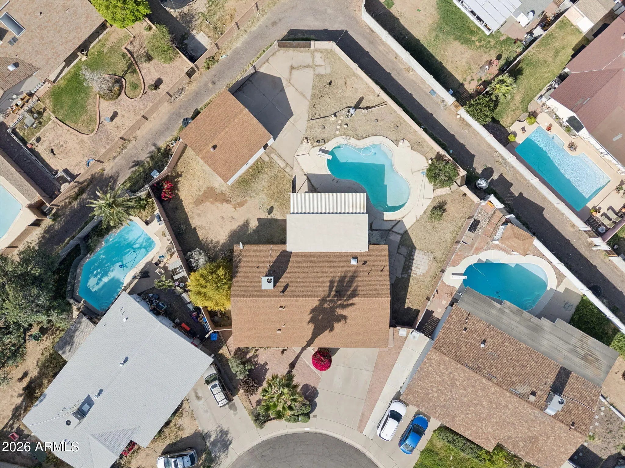 Opportunity to unlock value on this oversized ~0.27-acre cul-de-sac lot in North Phoenix. This 3-bedroom, 2-bath home offers approximately 1,716 square feet. The interior is mostly original and ready for updates, while both bathrooms were fully remodeled in 2020. The property features an attached 2-car garage plus a detached 2-car garage/workshop with power, along with alley access and an RV gate. The backyard is mostly open, providing flexibility for future improvements or expansion, and includes a diving pool. Additional features include a hidden room behind a bookshelf and no HOA. Ideal for investors or buyers looking to renovate and add value. Property is being sold as-is.