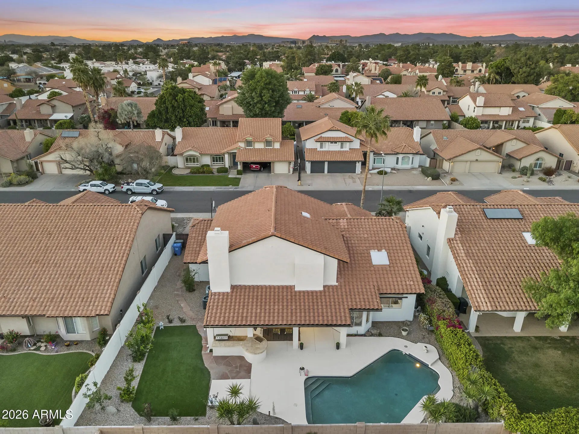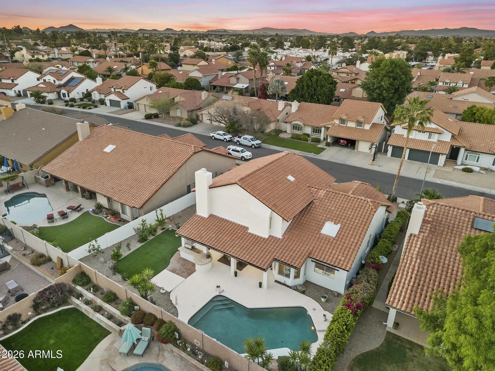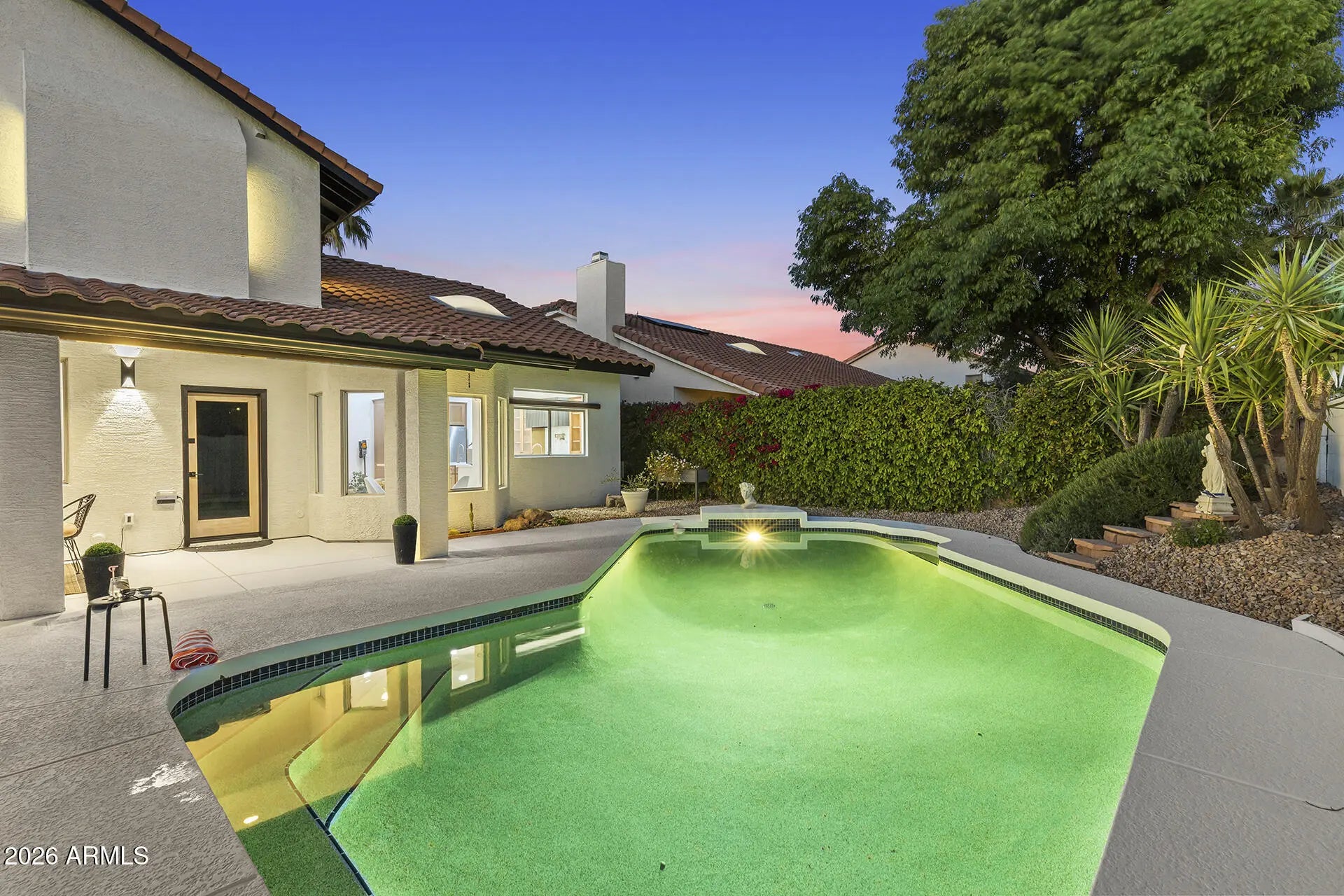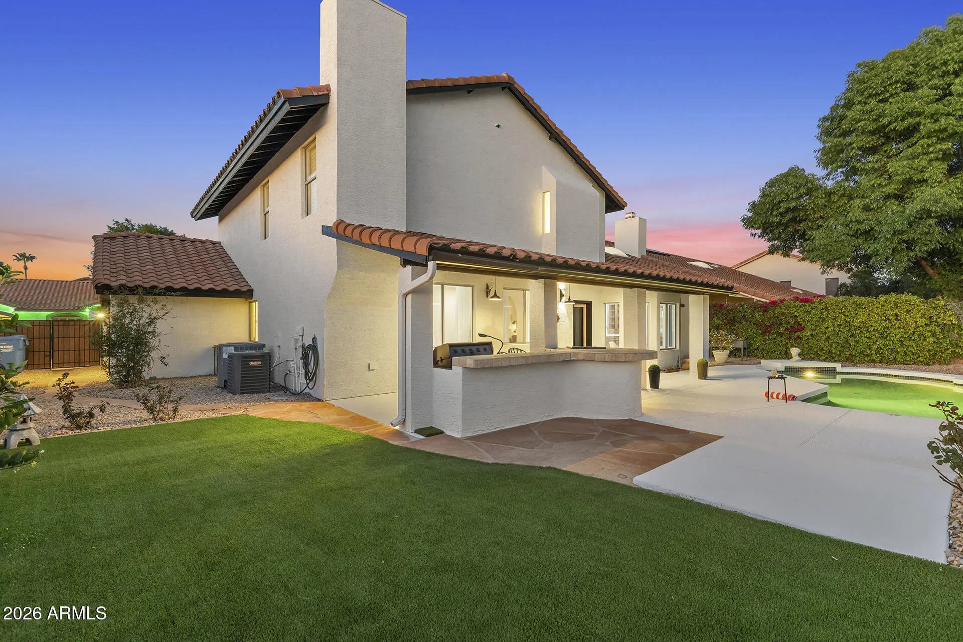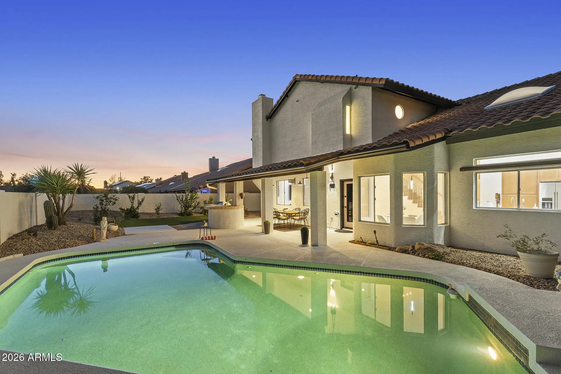 Upgraded to perfection in an unbeatable Scottsdale location! Move-in ready and beautifully renovated from top to bottom, this stunning 4 bed, 3 bath home offers elegant curb appeal and sits on a spacious lot in highly desirable location. Every detail has been thoughtfully updated, including a newer roof and A/C, new water heater and water softener, fully remodeled kitchen and bathrooms, fresh interior and exterior paint, new LVP flooring throughout as well as travertine and ceramic tile, and epoxy-coated garage flooring in the spacious 3-car garage. The outdoor space is just as impressive as the interior. Enjoy a full-length covered patio, built-in BBQ with ice chest, sparkling Pebble Tec pool, and lush mature landscaping. Ideally located close to top-rated schools, beautiful parks, and the premier shopping and dining that Scottsdale is known for, this home offers the perfect blend of luxury, comfort, and location.