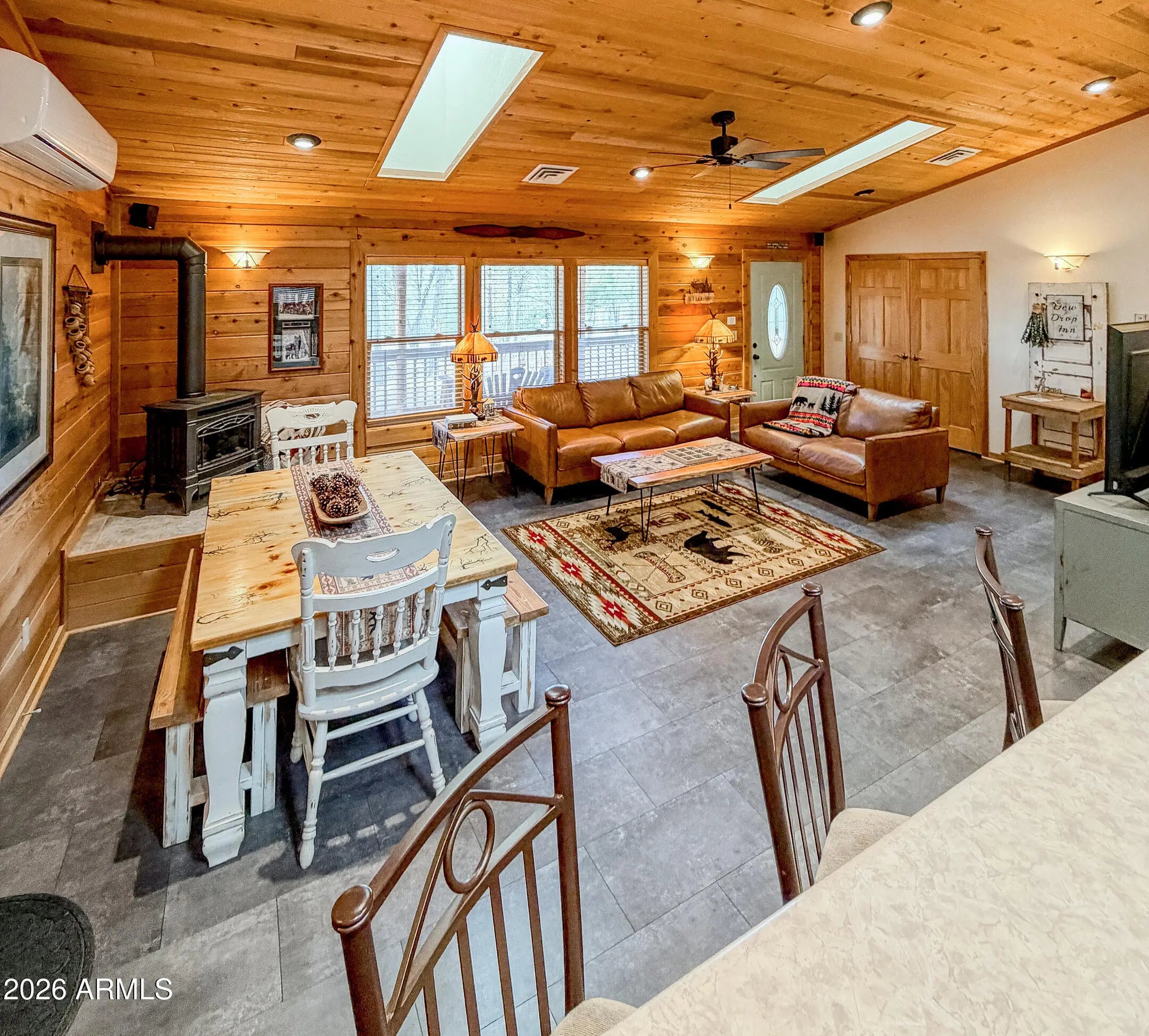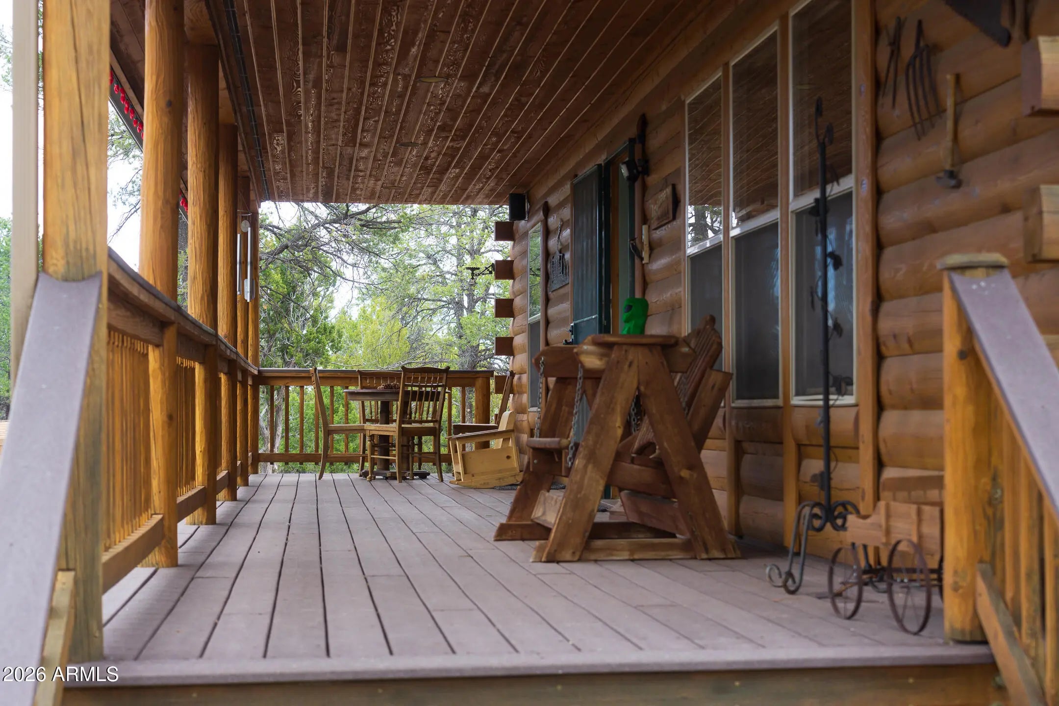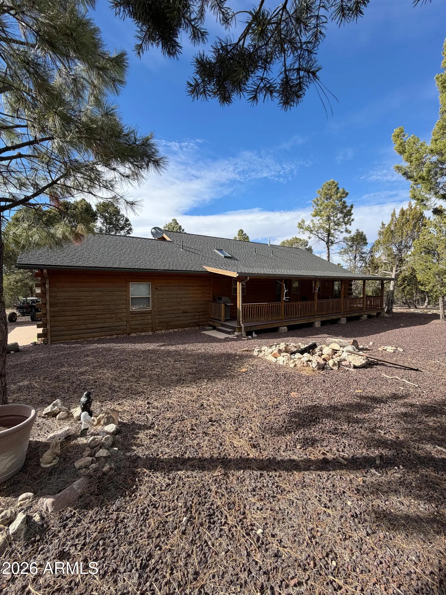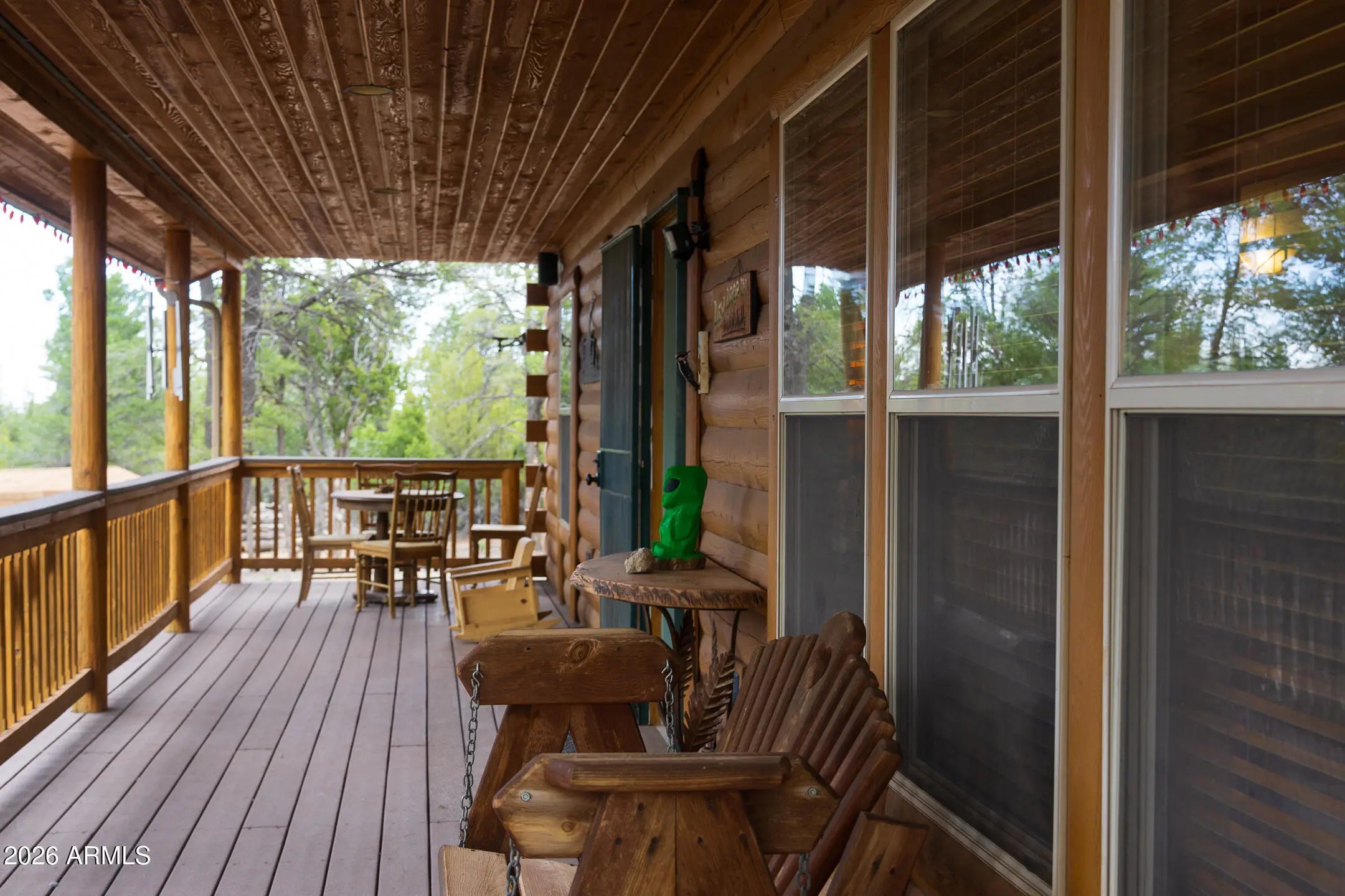 Tucked against the breathtaking backdrop of Sitgreaves National Forest, this private 2 bed, 2 bath cabin offers the perfect blend of seclusion and comfort on an expansive 64,085 sq ft lot. A private gated entry welcomes you in, setting the tone for peaceful mountain living. Enjoy quiet mornings and cool evenings from the covered porches, ideal for taking in the natural surroundings. Inside, the home is equipped for year round comfort with a propane furnace, heat pump, and a newly installed AC condenser. Whether you're looking for a full time retreat or a weekend escape, this property delivers space, privacy, and connection to nature. Offered fully furnished, this home was previously a successful part time short term rental with raving reviews making it an ideal retreat, investment or both!