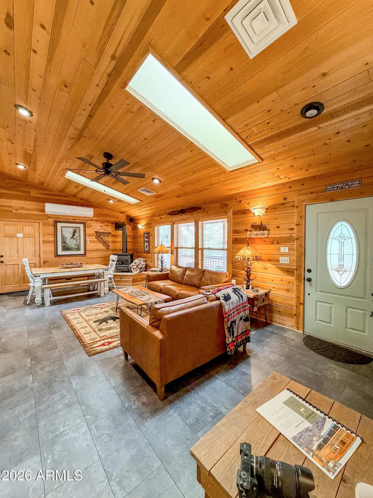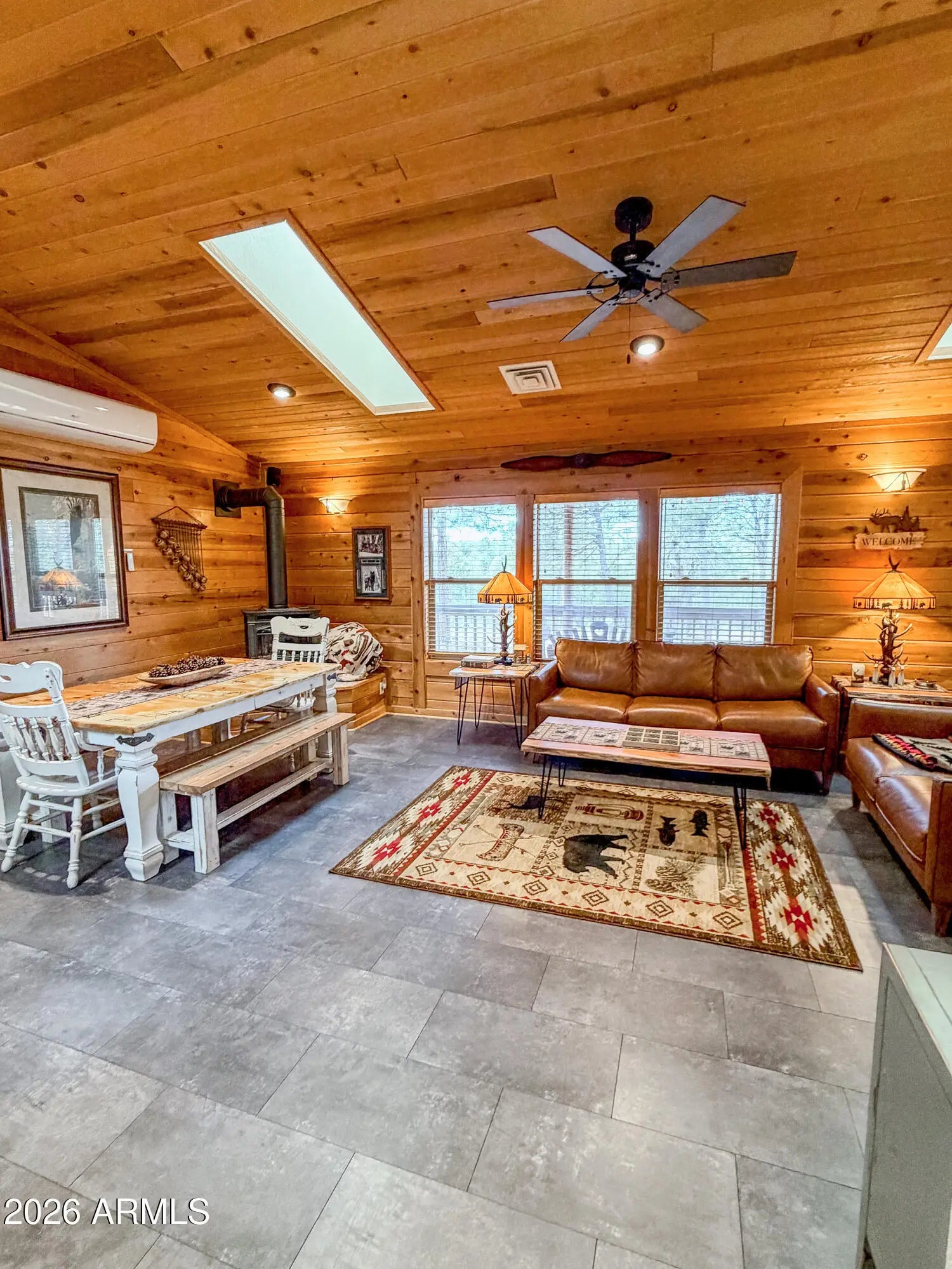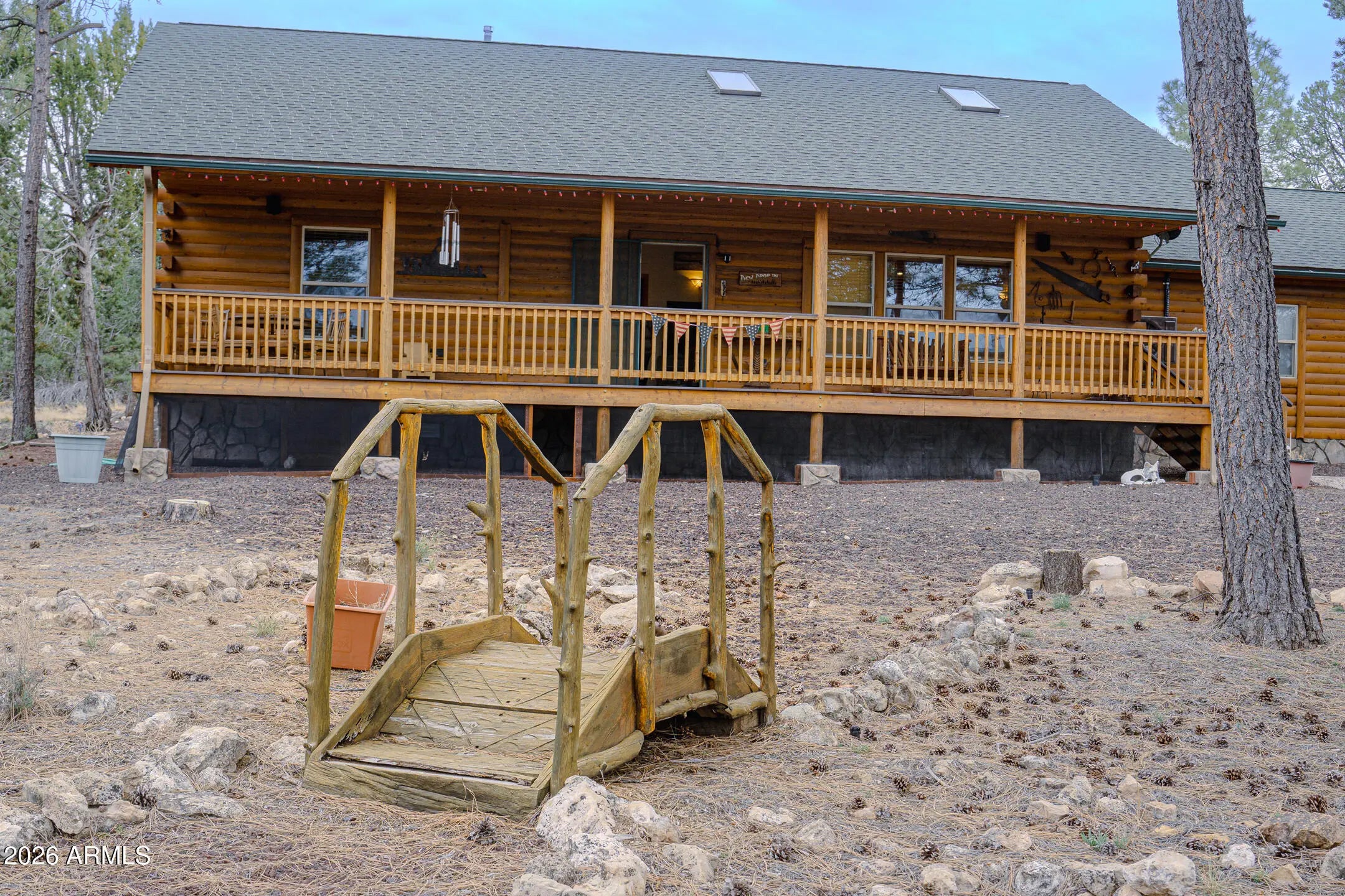 Tucked against the breathtaking backdrop of Sitgreaves National Forest, this private 2 bed, 2 bath cabin offers the perfect blend of seclusion and comfort on an expansive 64,085 sq ft lot. A private gated entry welcomes you in, setting the tone for peaceful mountain living. Enjoy quiet mornings and cool evenings from the covered porches, ideal for taking in the natural surroundings. Inside, the home is equipped for year round comfort with a propane furnace, heat pump, and a newly installed AC condenser. Whether you're looking for a full time retreat or a weekend escape, this property delivers space, privacy, and connection to nature. Offered fully furnished, this home was previously a successful part time short term rental with raving reviews making it an ideal retreat, investment or both!
