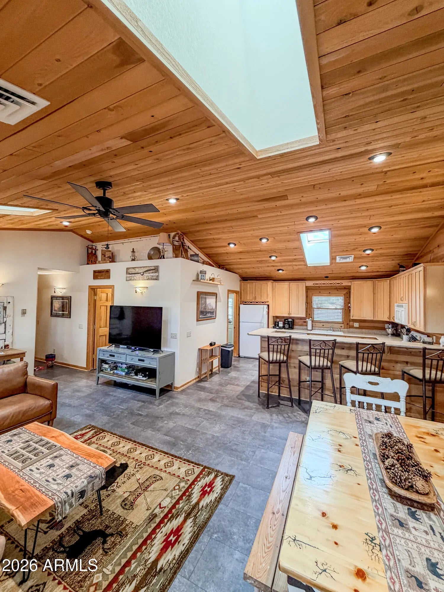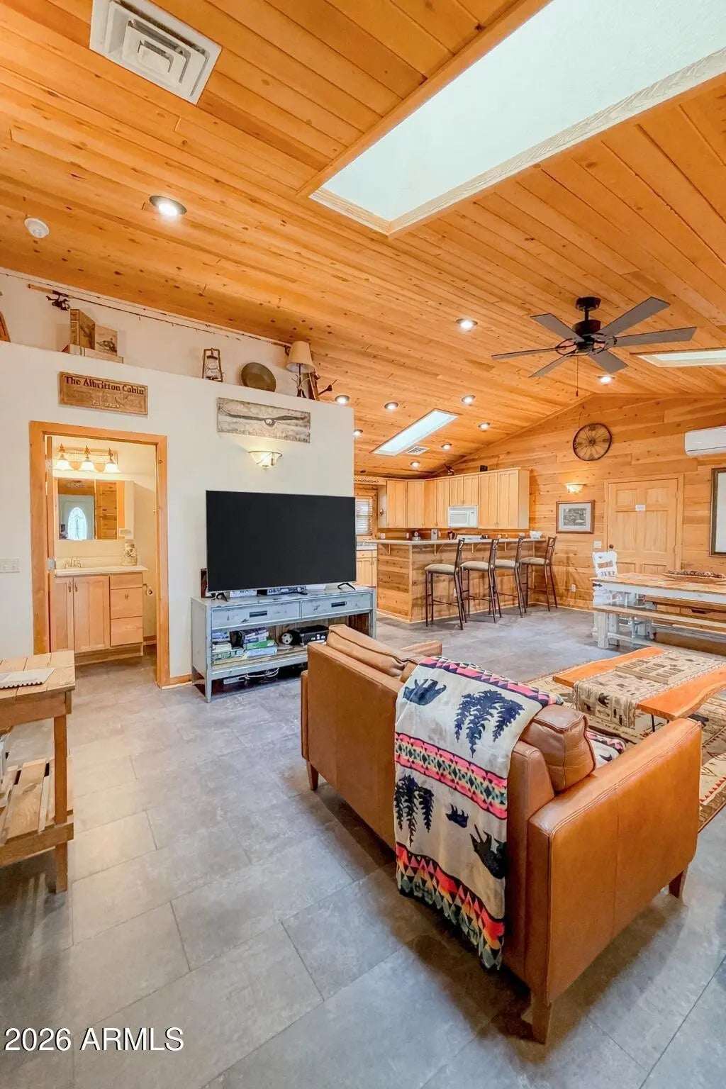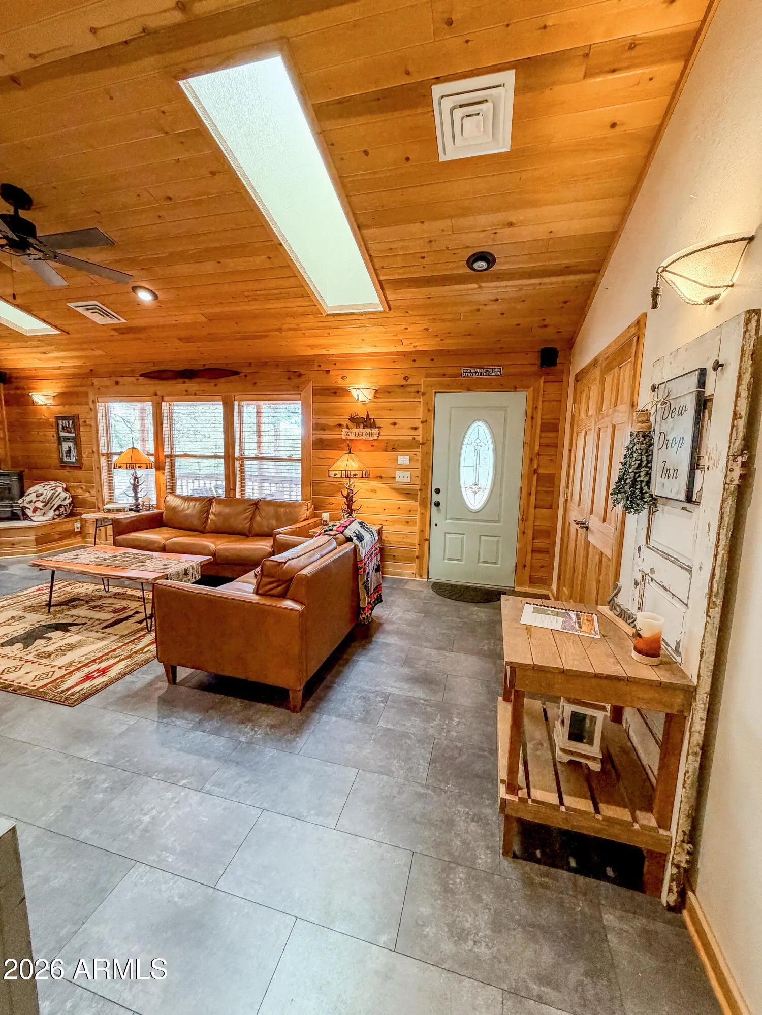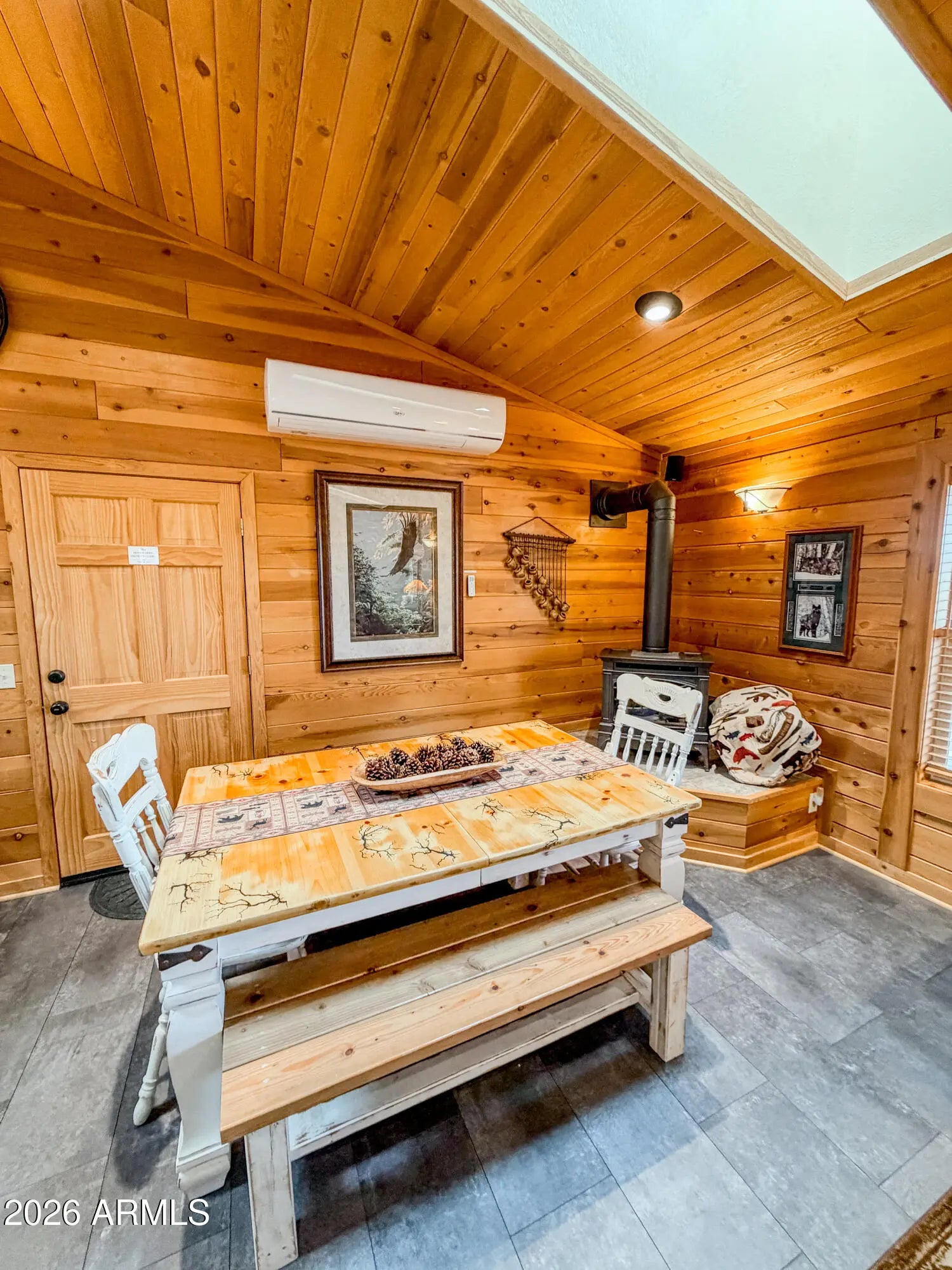 Tucked against the breathtaking backdrop of Sitgreaves National Forest, this private 2 bed, 2 bath cabin offers the perfect blend of seclusion and comfort on an expansive 64,085 sq ft lot. A private gated entry welcomes you in, setting the tone for peaceful mountain living. Enjoy quiet mornings and cool evenings from the covered porches, ideal for taking in the natural surroundings. Inside, the home is equipped for year round comfort with a propane furnace, heat pump, and a newly installed AC condenser. Whether you're looking for a full time retreat or a weekend escape, this property delivers space, privacy, and connection to nature. Offered fully furnished, this home was previously a successful part time short term rental with raving reviews making it an ideal retreat, investment or both!