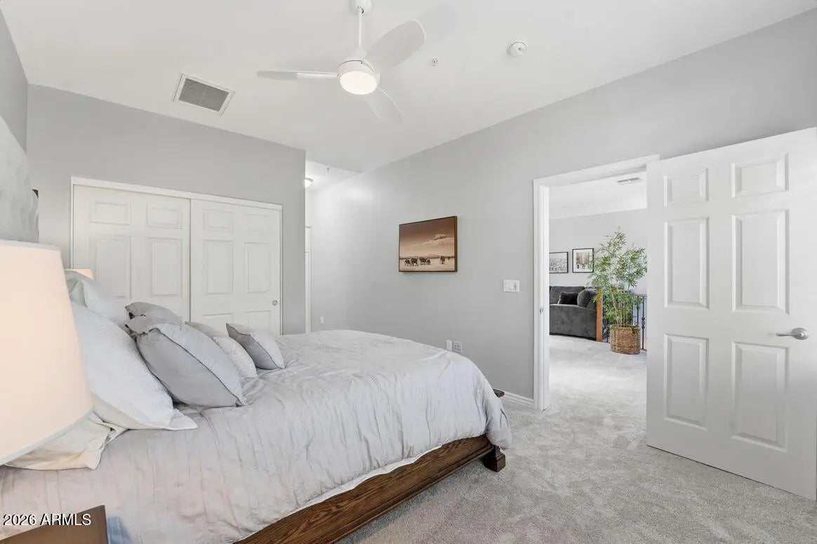 Beautiful fully furnished Golf Casita nestled privately at the back of the community, adjacent to Wildfire Golf Club. This is an incredible opportunity for resort-style living! This beautiful townhome features 3 bedrooms plus a loft and is conveniently located near Desert Ridge and across from High Street. The open-concept layout boasts custom kitchen cabinetry, high ceilings, a cozy gas fireplace, and much more! The spacious primary bedroom is conveniently located on the main level, along with the laundry room and patio. Upstairs, you'll find two generously sized bedrooms sharing a Jack & Jill bathroom, as well as a large loft complete with its own fireplace. Enjoy the north-facing balcony that offers stunning views of the golf course. The property includes 1 car garage. 6 months ending 10/31/2026 No Pets
