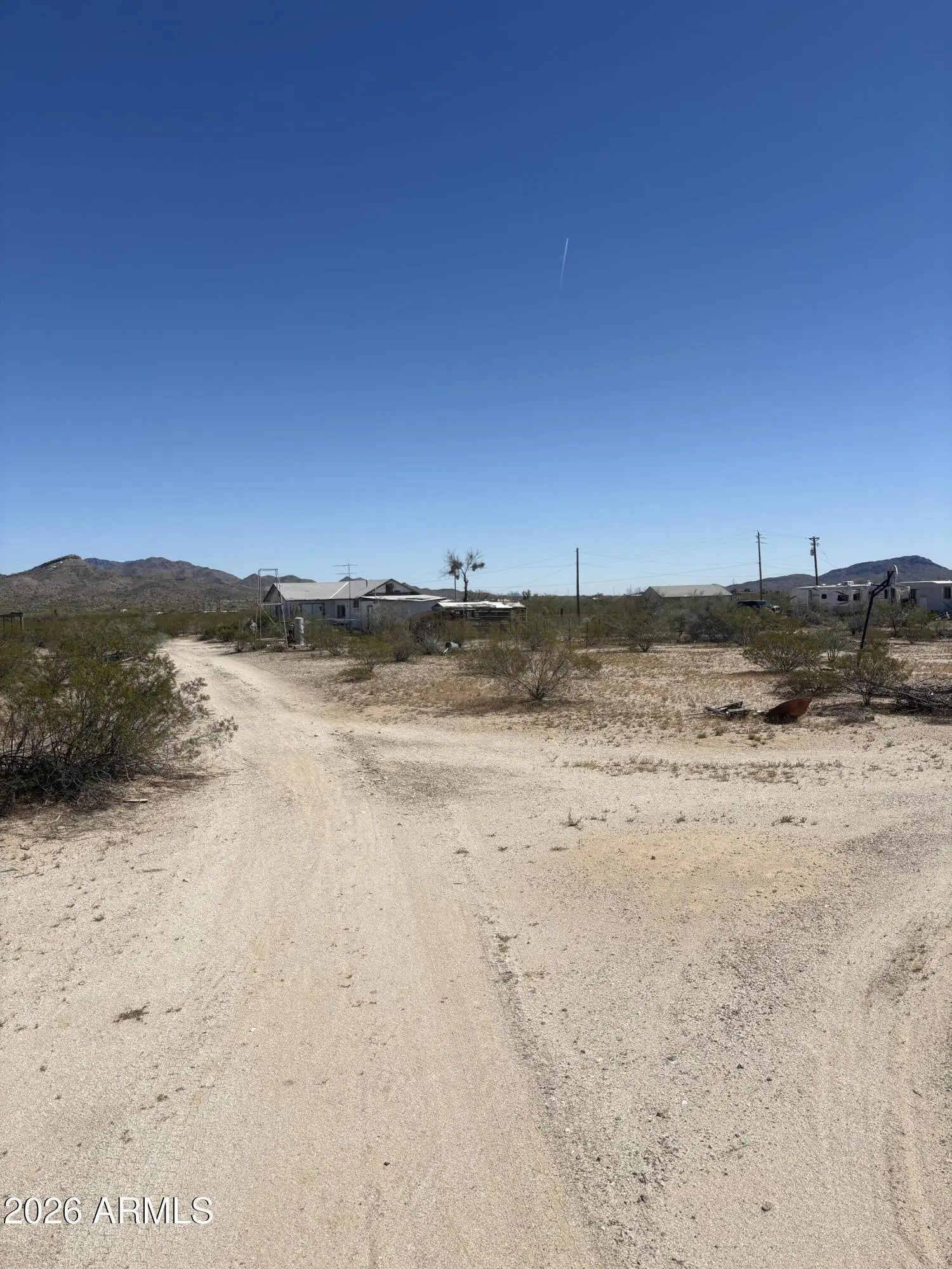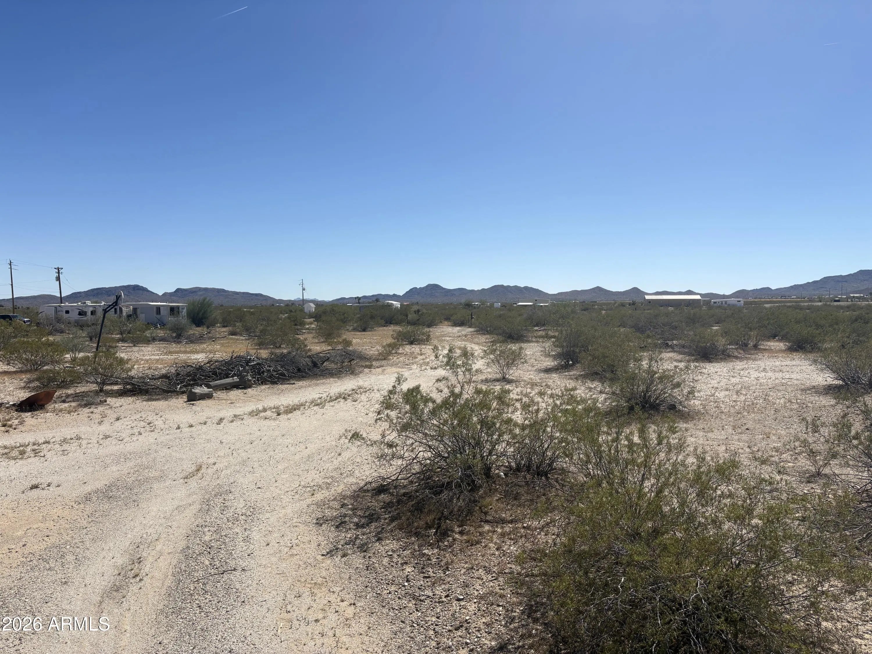 19.5 acres with stunning mountain views in Salome, AZ! Located at 66125 Simcox Rd, this property features a 1 bed, 1 bath modular home (736 sq ft, built 1964) with an additional room ideal for an office or workshop. Home is being sold as-is and needs work, offering great potential for investors or those looking to customize. Property includes a private well, two 100-amp electrical services, two septic tanks, and washer/dryer hookups. A second mobile home (not affixed) conveys with the sale. Plenty of space for horses, shops, or future development. Endless possibilities in a peaceful desert setting.