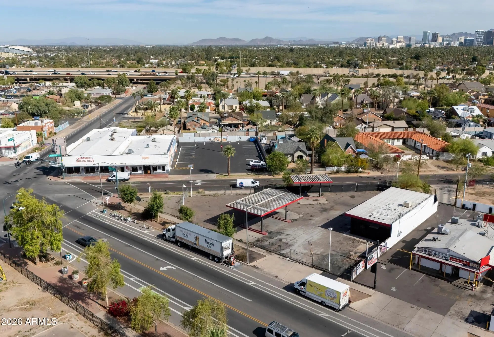 This premier corner location in the heart of the Grand Avenue Arts District offers an exceptional opportunity for an automotive dealer, repair facility, or body shop. Situated at the high-traffic intersection of 15th Avenue, West Roosevelt Street, and Grand Avenue, the property features a ±1,559 SF building with three bays and prominent visibility. The site consists of two parcels with versatile C-3 and R-5 zoning, providing the flexibility required for intensive automotive uses. With convenient ingress and egress on both Roosevelt and Grand, and immediate proximity to major freeways and Downtown Phoenix, this location ensures seamless access for customers.