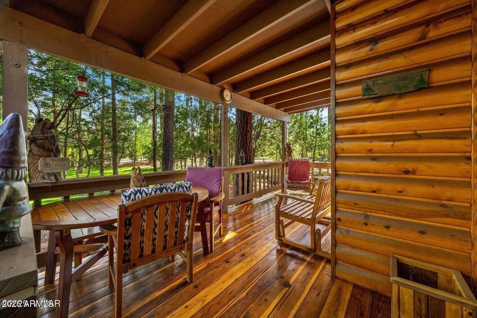 An inviting front porch welcomes you home, while the large covered back deck overlooks a beautifully landscaped yard with a serene mix of mature trees providing summer shade and natural privacy. Tucked away in the tall pines of Pineridge, this beautifully maintained 3 bedroom, 2 bath, 1,479 sq ft log-sided home sits on two tax lots totaling 0.51 acres, offering space, privacy, and a true mountain feel. Inside, enjoy flowing hardwood floors, tongue-and-groove ceilings, and a cozy fireplace that opens seamlessly to the dining area and kitchen. The kitchen features custom cabinetry, granite countertops, and abundant storage. The primary suite includes a walk-in shower with safety bars and a large sliding glass door for easy access, while guest bedrooms share a spacious bathroom. Located in a peaceful community ideal for enjoying the mountain lifestyle, this oversized double lot offers a rare blend of comfort, charm, and outdoor living. The Pineridge community in Pinetop-Lakeside, AZ is a well-established, primarily residential subdivision nestled in the cool, forested White Mountains, known for its tall ponderosa pines, peaceful mountain setting and privacy. It's a gated neighborhood with an active community association, modest annual dues, and privately maintained roads that help preserve a quiet, wooded atmosphere while still being convenient to the amenities and outdoor recreation that make Pinetop-Lakeside desirable. Homes in Pineridge are often surrounded by mature trees and spacious lots, offering a sense of seclusion yet easy access to hiking, fishing, golf and the year-round seasonal activities the area is known for. The community is served by the Blue Ridge Unified School District and reflects the broader mountain lifestyle -- comfortable, relaxed, and deeply connected to the natural surroundings of northern Arizona.