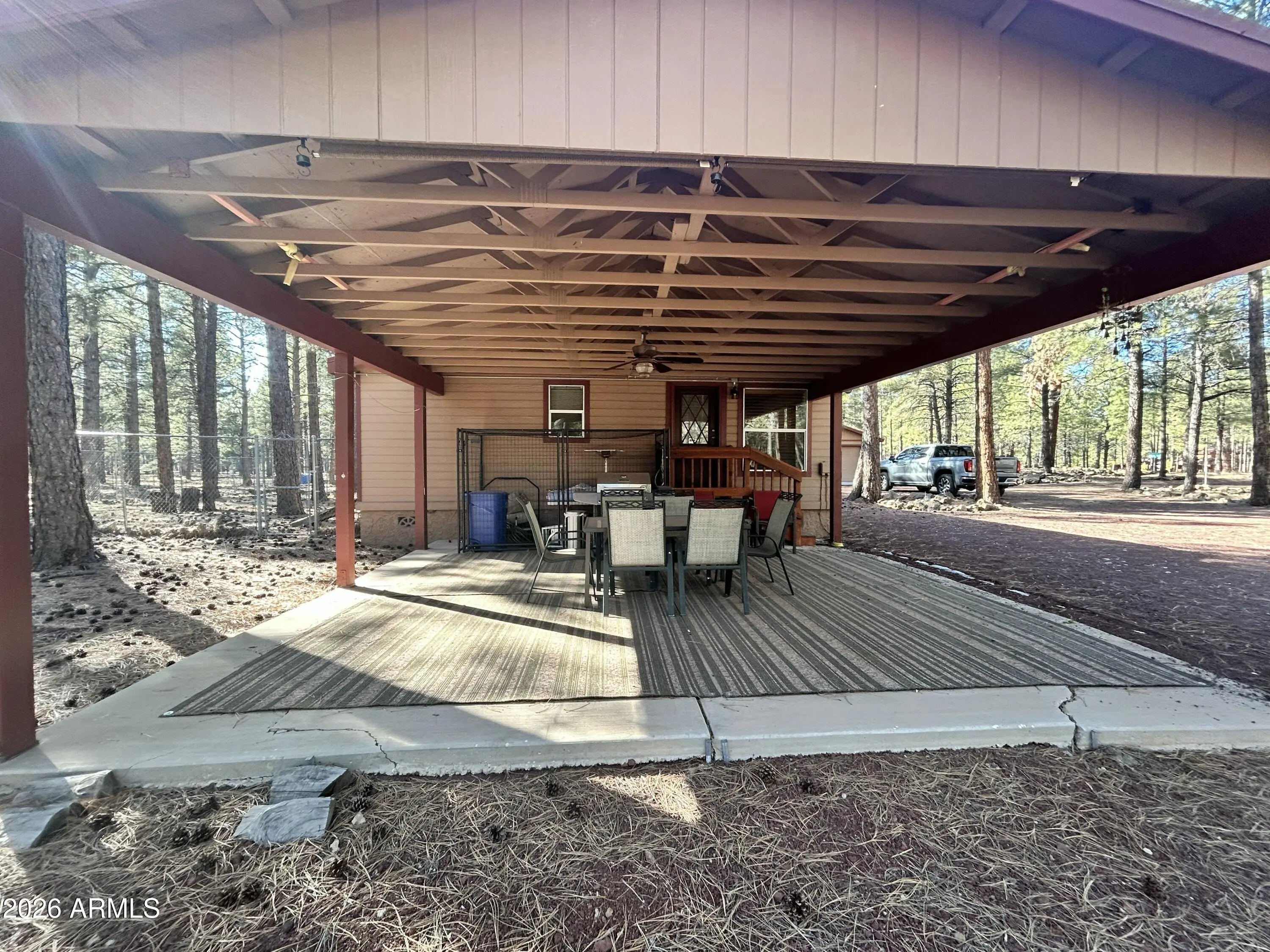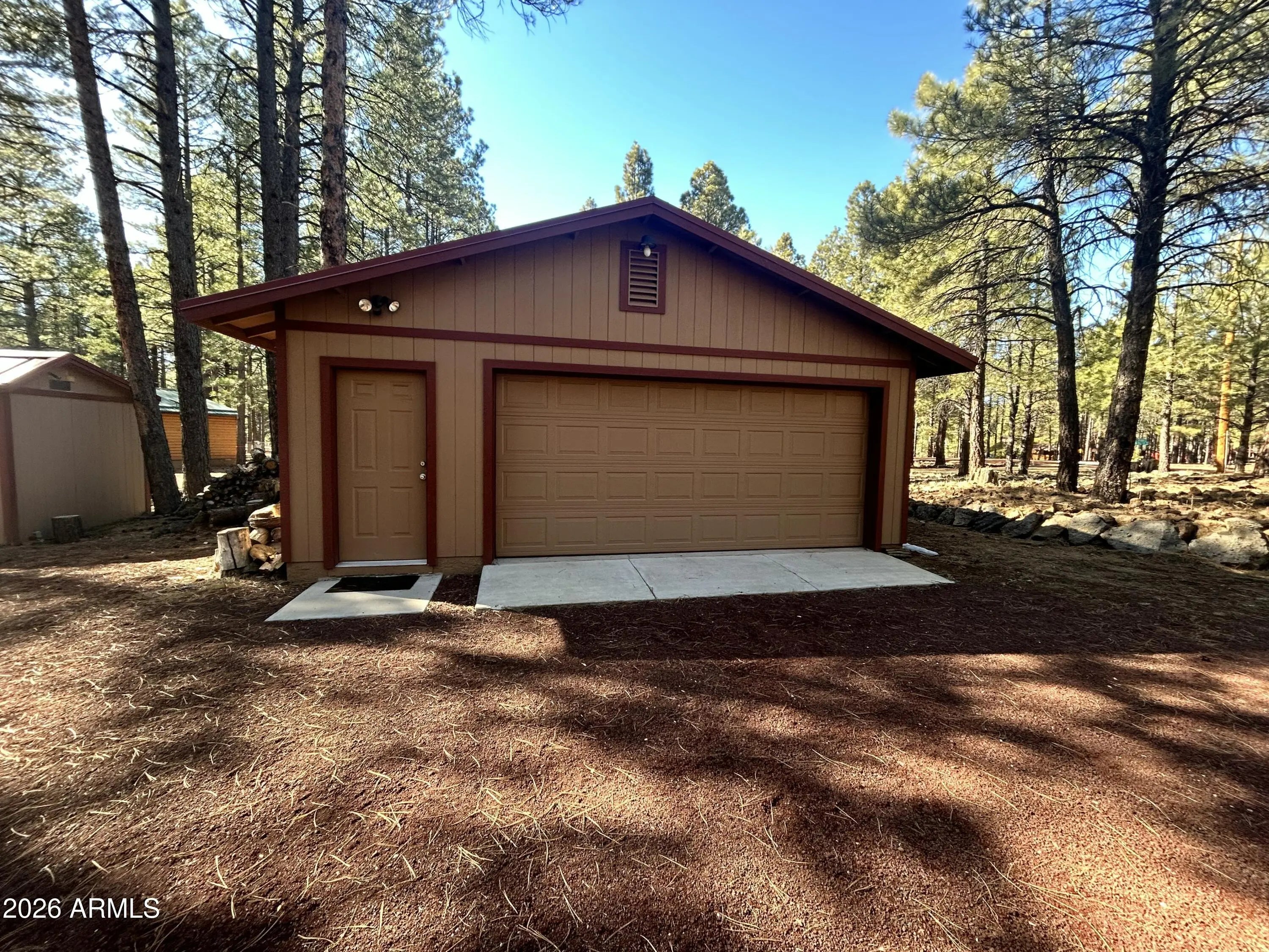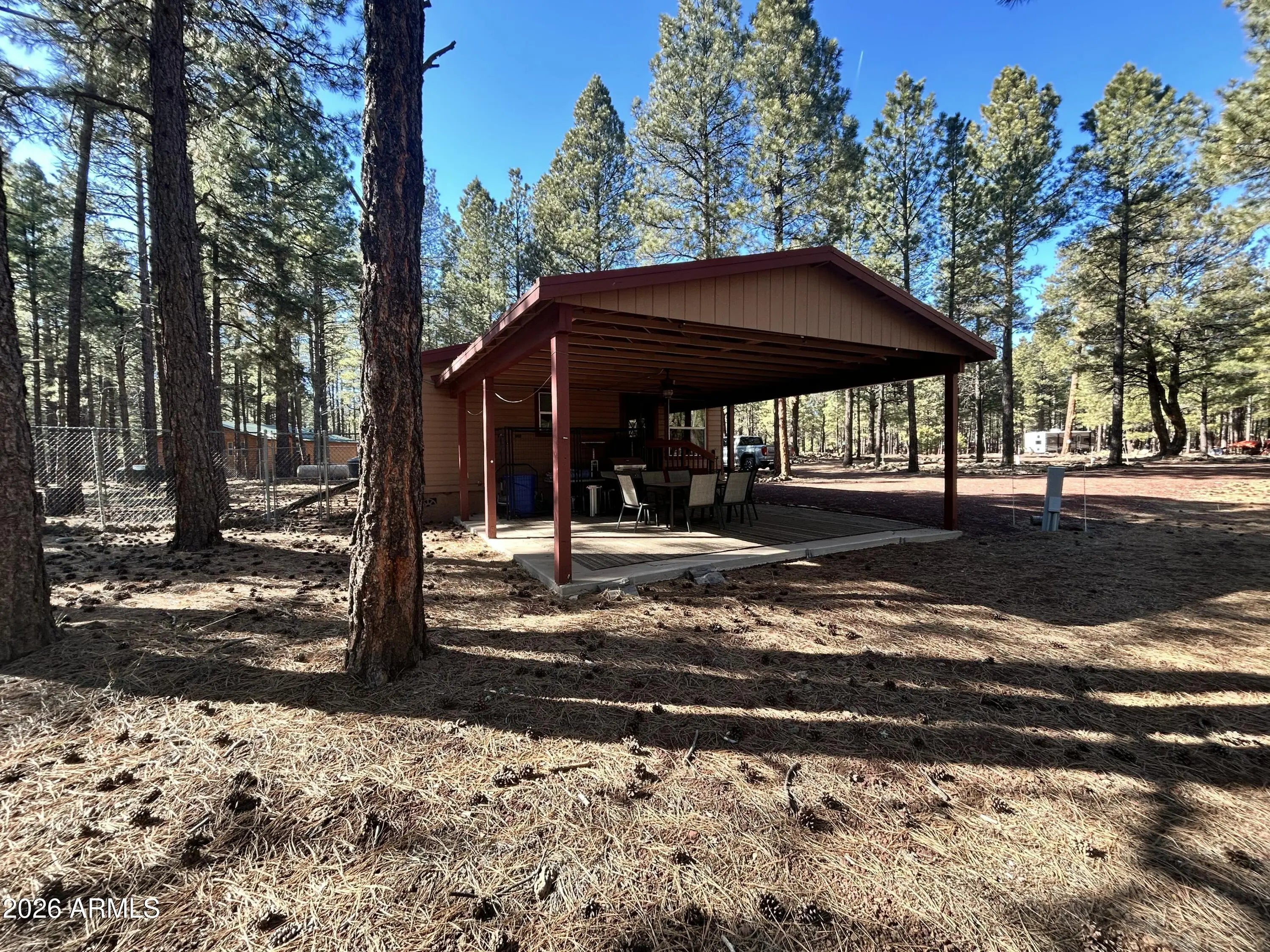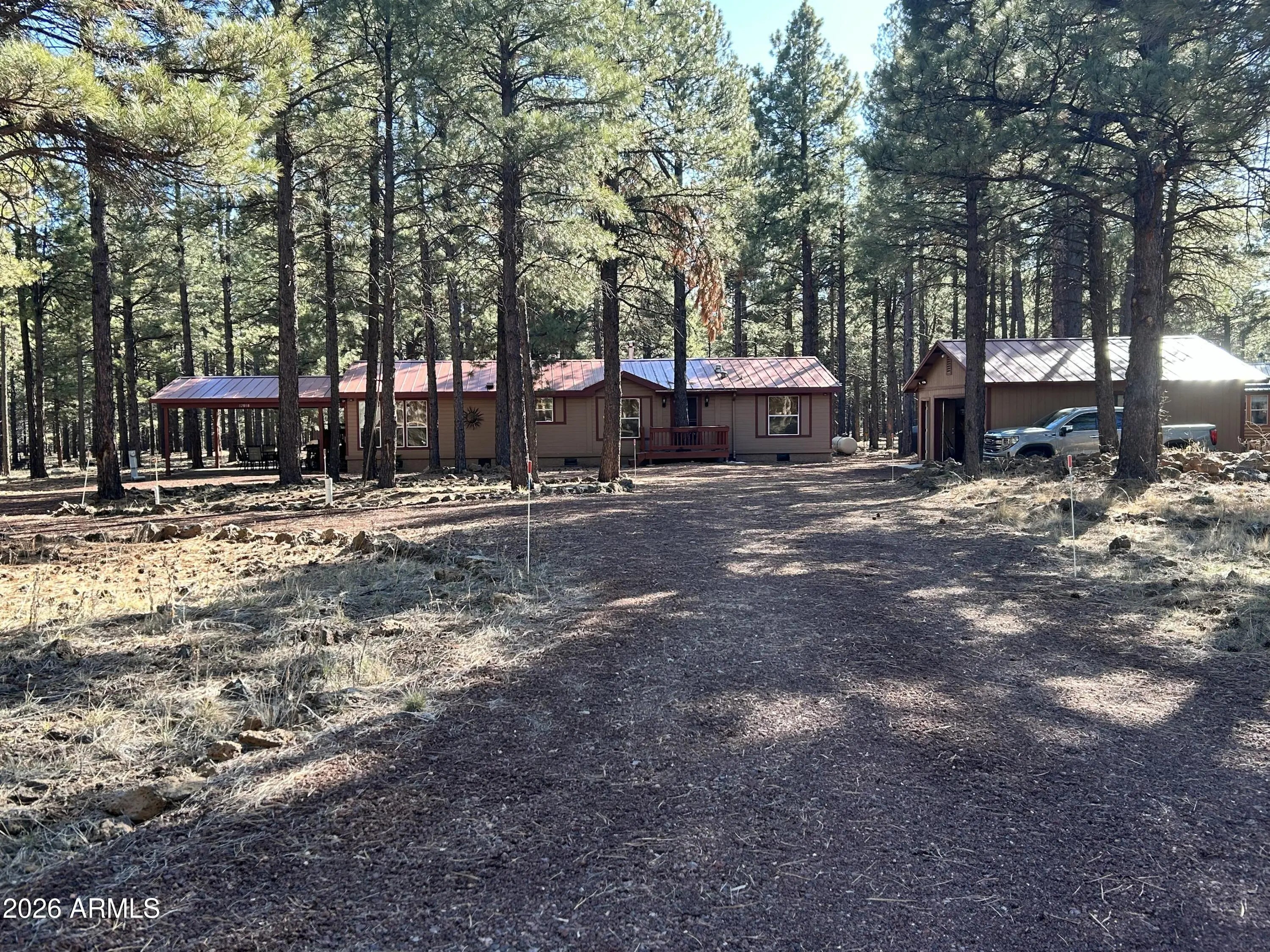 Beautiful 3 bedroom, 2 bath split floorplan, fully furnished home, on a 1.15 acre lot backing to the breath taking national forest! All you need is a tooth brush! Open floor plan features a family room with wood burning stove and gorgeous views of the forest out back. Spacious kitchen with huge walk pantry and breakfast bar. Inside laundry room with new washer/dryer & extra storage. Master bedroom also boasts views of the forest with a separate tub/shower and multiple closets. Secondary bedrooms are oversized with walk in closets. The exterior has a oversized 2 car detached garage! 2 pump houses for you 9500 gallon water storage tanks! Newly put in circular driveway accommodates plenty of room for all the vehicles including rv's & SxS! This is the perfect get away home!