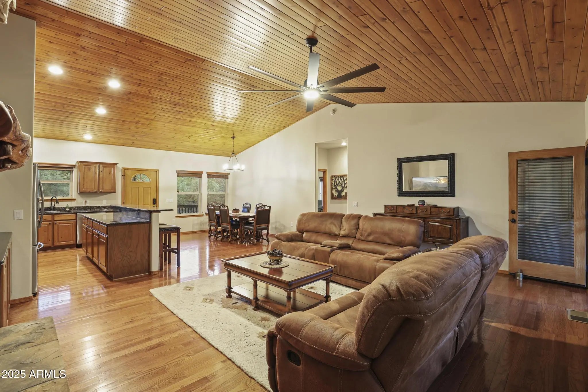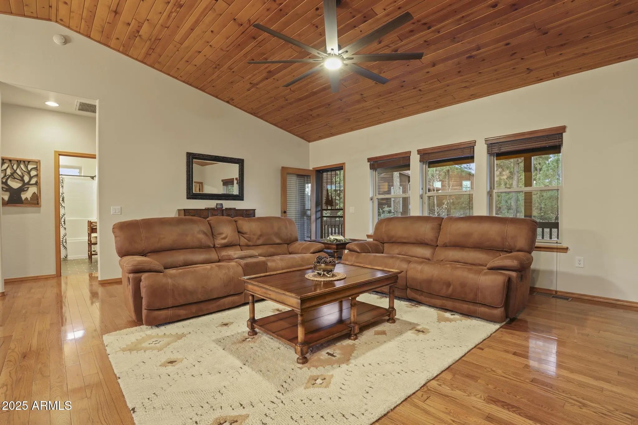 Nestled in the tall pines of the White Mountains, this 3-bedroom, 2-bath home combines comfort, privacy, and timeless craftsmanship on a .40-acre corner lot. Built above street level by the original owner and community developer, it offers quality at every turn. Enjoy a bright living space with a double-sided fireplace shared by the living room and master suite, a relaxing jacuzzi tub, smart features like Ecobee and Ring, plus a 2-car garage and extra parking. Sold fully furnished (minus personal items), this move-in-ready retreat is ideal as a full-time home, vacation getaway, or investment in beautiful Show Low.