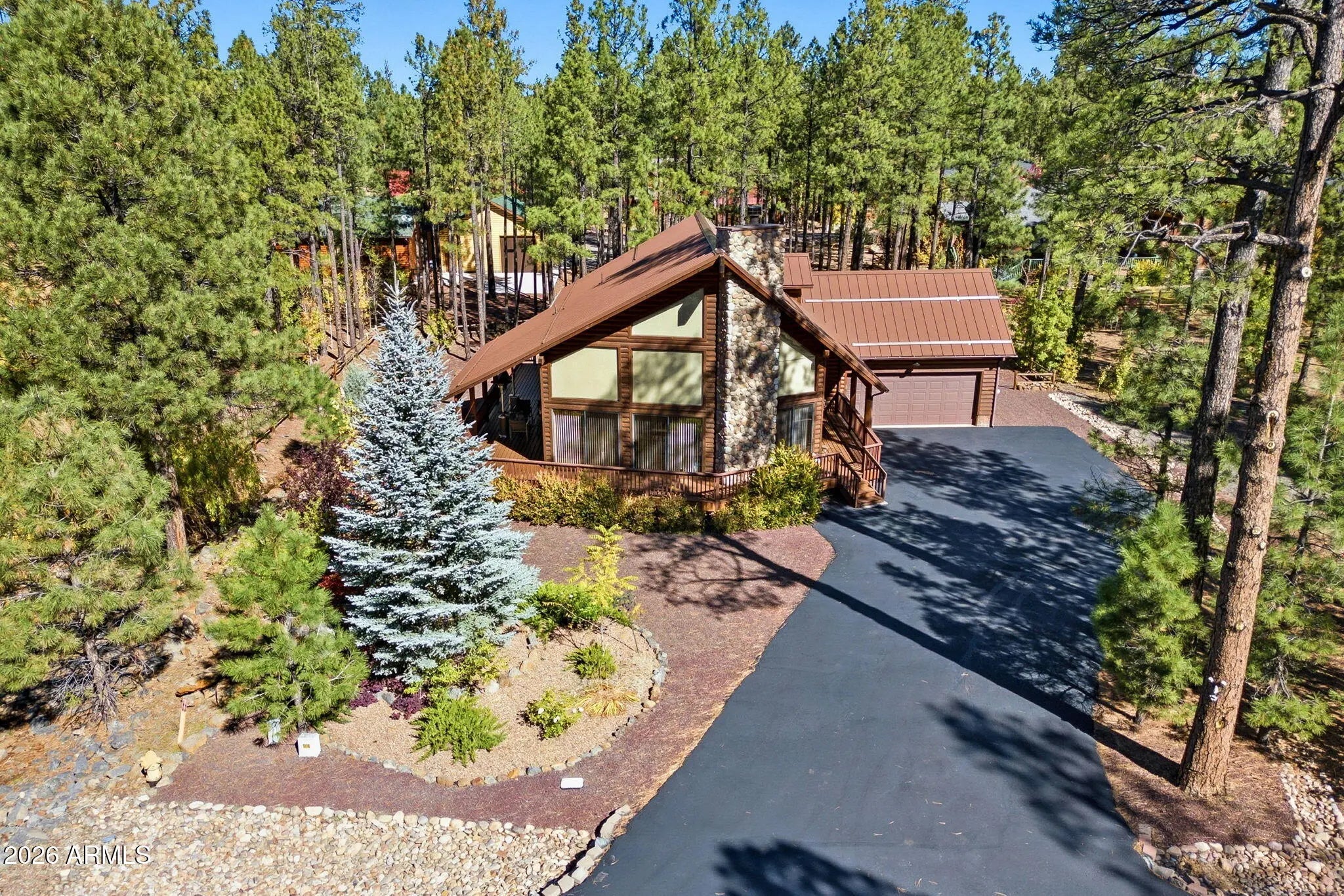 Tucked away in the highly desirable gated Starwood Estates within Pinetop Country Club, this stunning 3 bedroom, 3 bath mountain retreat offers the perfect blend of rustic charm and comfort among the tall pines. The great room welcomes you with soaring wood-plank ceilings, dramatic floor-to-ceiling stone fireplace, and expansive windows that flood the home with natural light and forest views. The open-concept kitchen features granite countertops, ample cabinetry, and a generous breakfast bar--ideal for gathering after a day in the mountains. The spacious downstairs suite provides a peaceful escape with deck access and an ensuite bath, while additional bedrooms and baths offer ensuites for guests. A versatile loft room adds extra living space. Enjoy outdoor living on the wraparound deck overlooking beautifully landscaped grounds and towering pines. With an attached garage, quality finishes throughout, and a prime location near golf, dining, and year-round recreation. Walking distance to national forest trails. This exceptional home is ideal as a full-time residence or mountain getaway. Living in **Pinetop Country Club** means enjoying a true mountain lifestyle wrapped in a welcoming, close-knit community. Surrounded by towering pines and crisp alpine air, residents love the peaceful setting paired with an active, social atmosphere. The community is anchored by championship golf, scenic walking paths, and easy access to hiking, biking, fishing, and winter recreation. Neighbors often gather for casual rounds of golf, clubhouse dining, and seasonal events, creating a friendly, small-town feel while still being close to dining, shopping, and local amenities. Whether you're seeking full-time mountain living or a relaxing second home, Pinetop Country Club offers a refined yet laid-back lifestyle that keeps people coming back year after year.