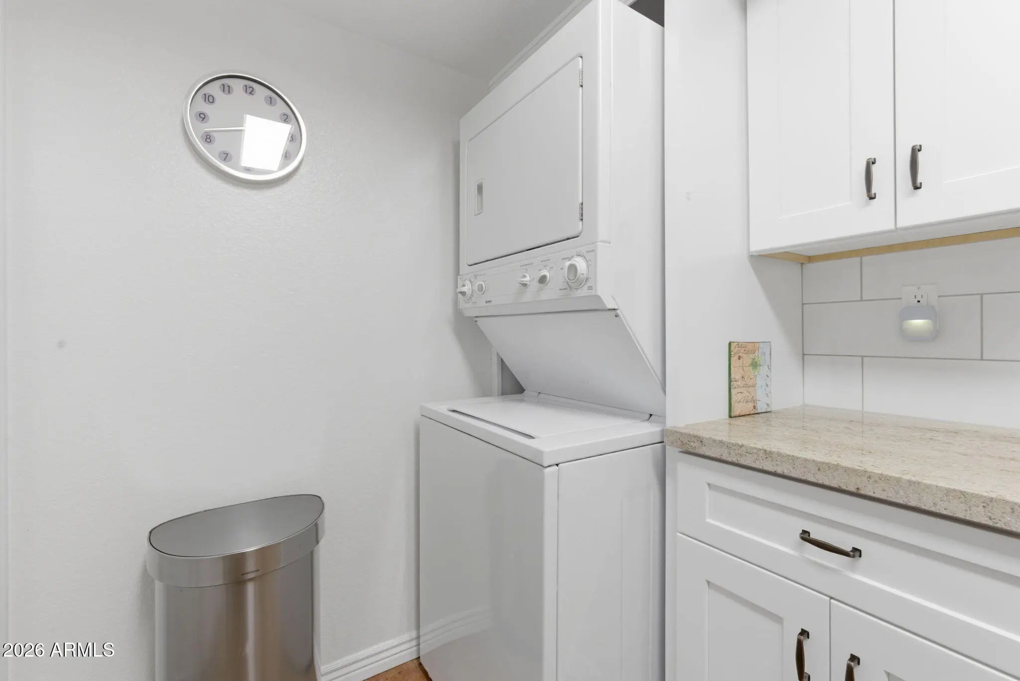 Stacked Washer/Dryer, Dryer, Washer, Refrigerator, Dishwasher, Disposal, Electric Range