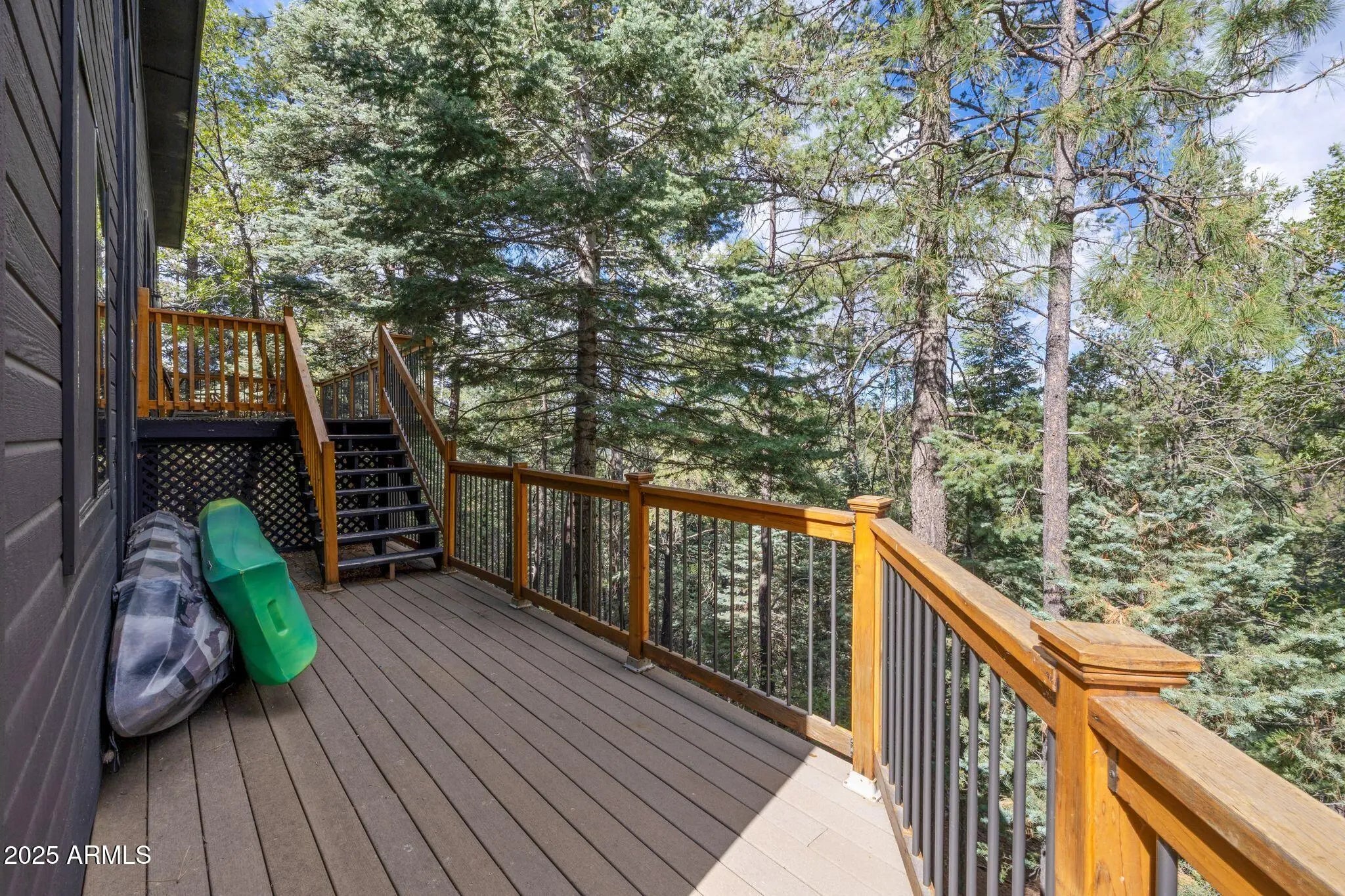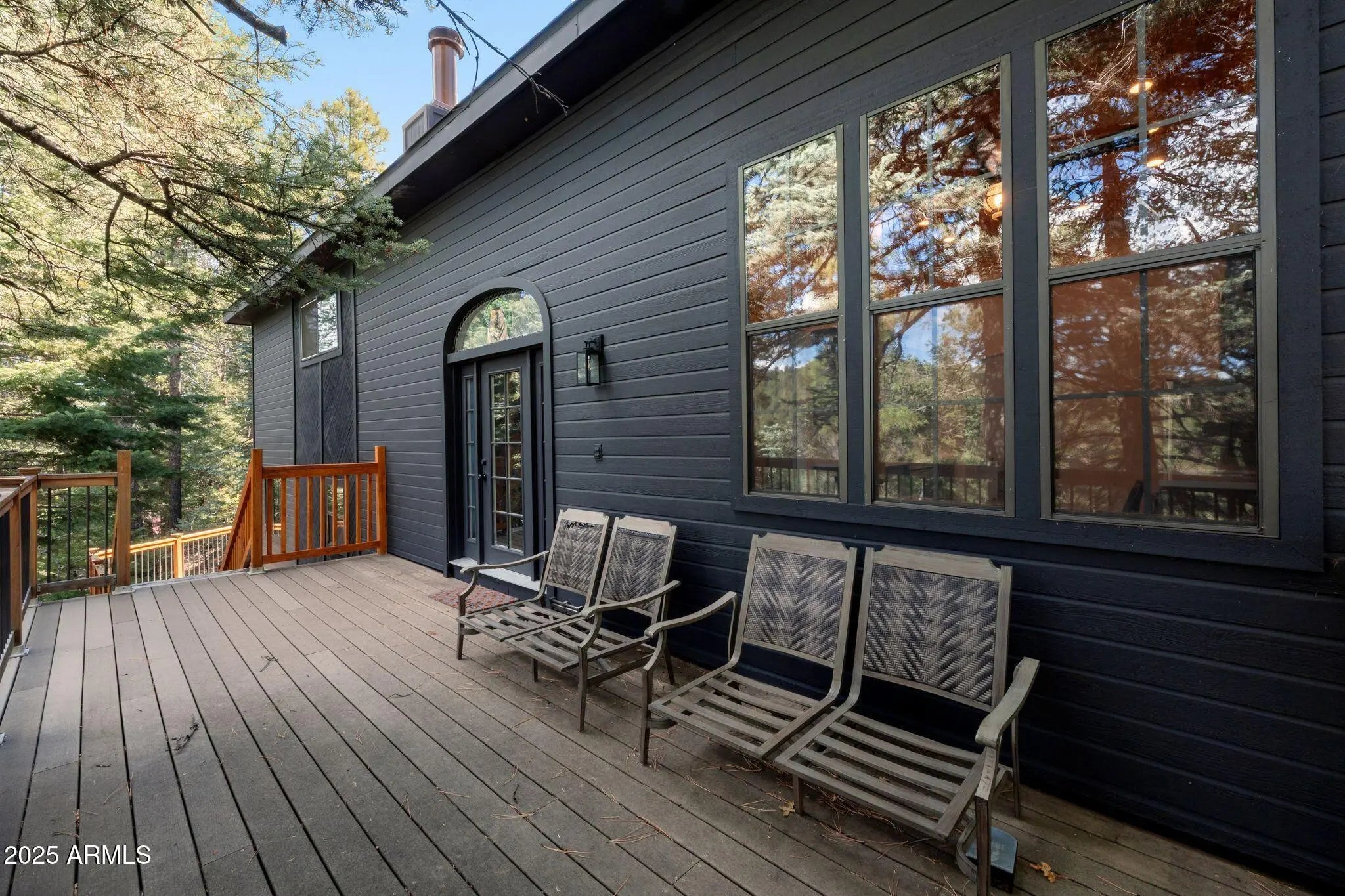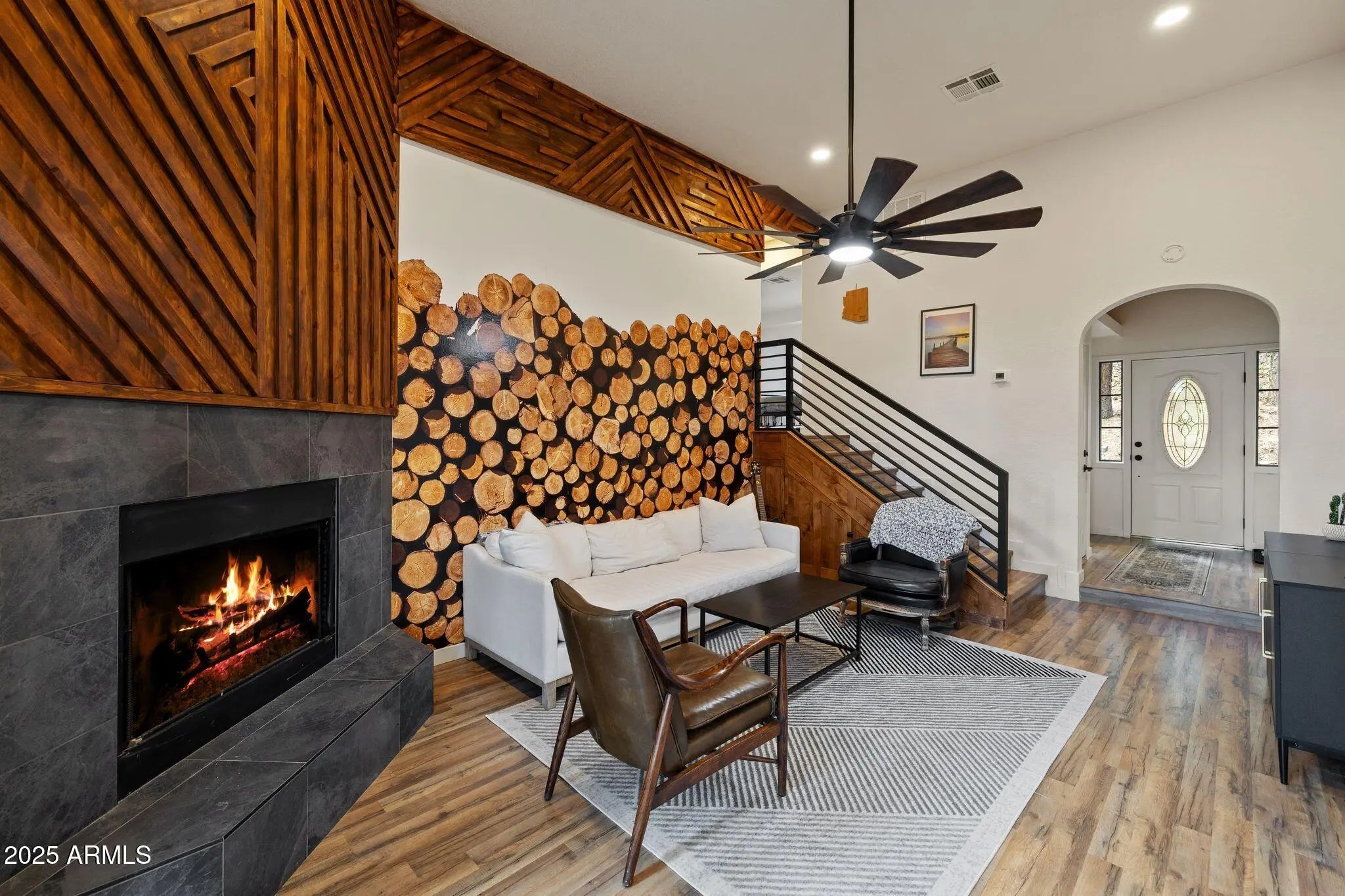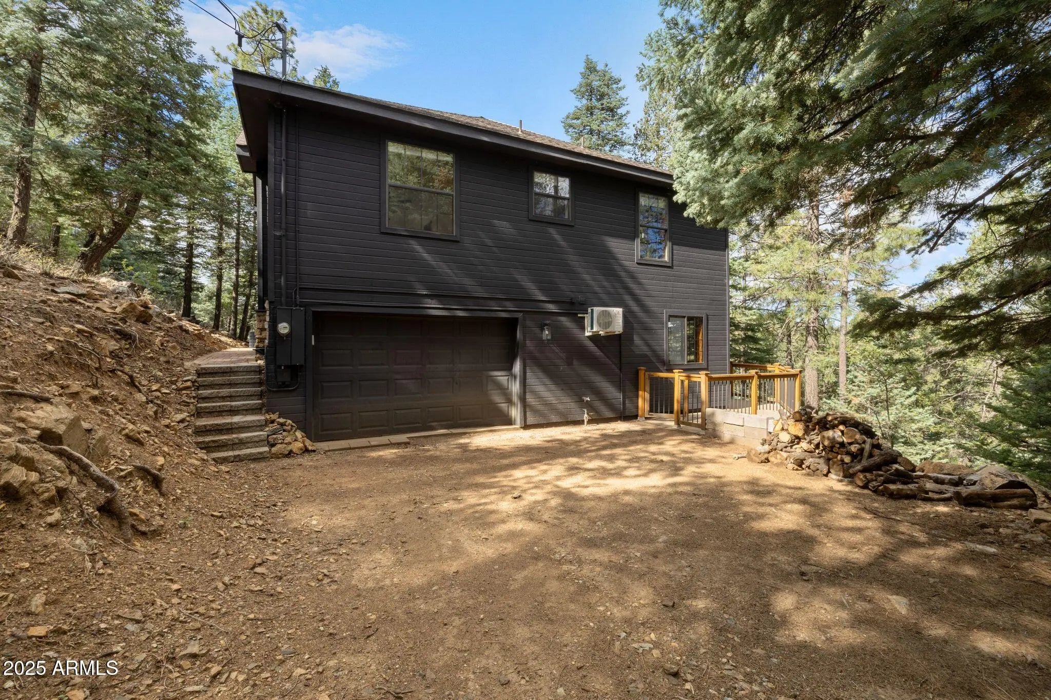 Check out this stunning, fully furnished and updated cabin tucked away in the majestic Prescott pines! This one-of-a-kind home combines modern designer finishes with cozy mountain charm, offering the perfect retreat. Inside, you'll find two oversized upstairs bedrooms connected by a beautifully remodeled bathroom, creating a private and functional layout. Just off the garage, a separate studio with its own bathroom and kitchenette makes the perfect mother-in-law suite, guest quarters, or rental opportunity. The home has been thoughtfully upgraded with new AC, furnace, water storage tank, and fresh interior/exterior paint. Designer details shine throughout with wood paneled ceilings and beams, a stunning accent wall, custom fireplace, iron staircase, modern lighting, and