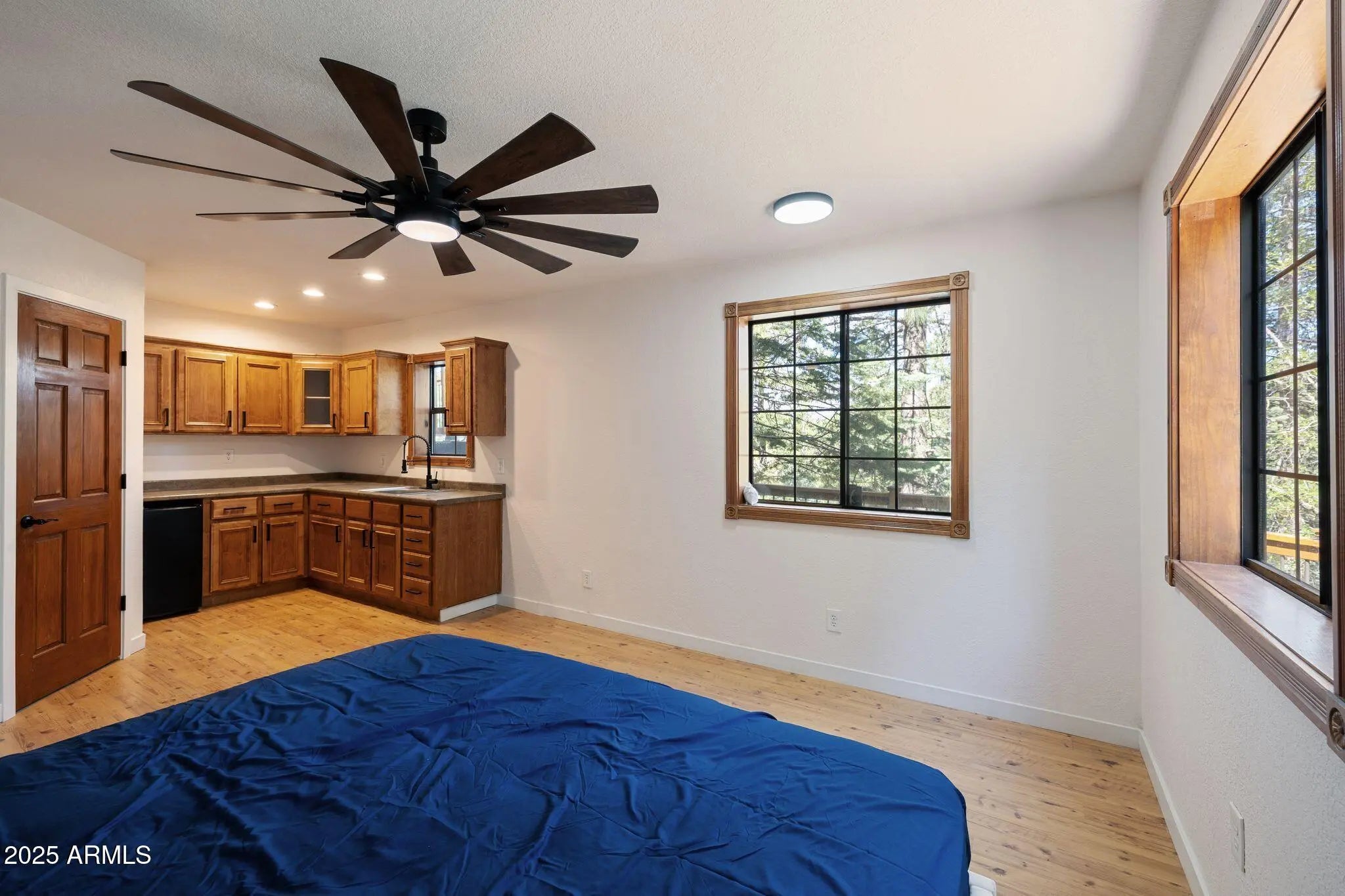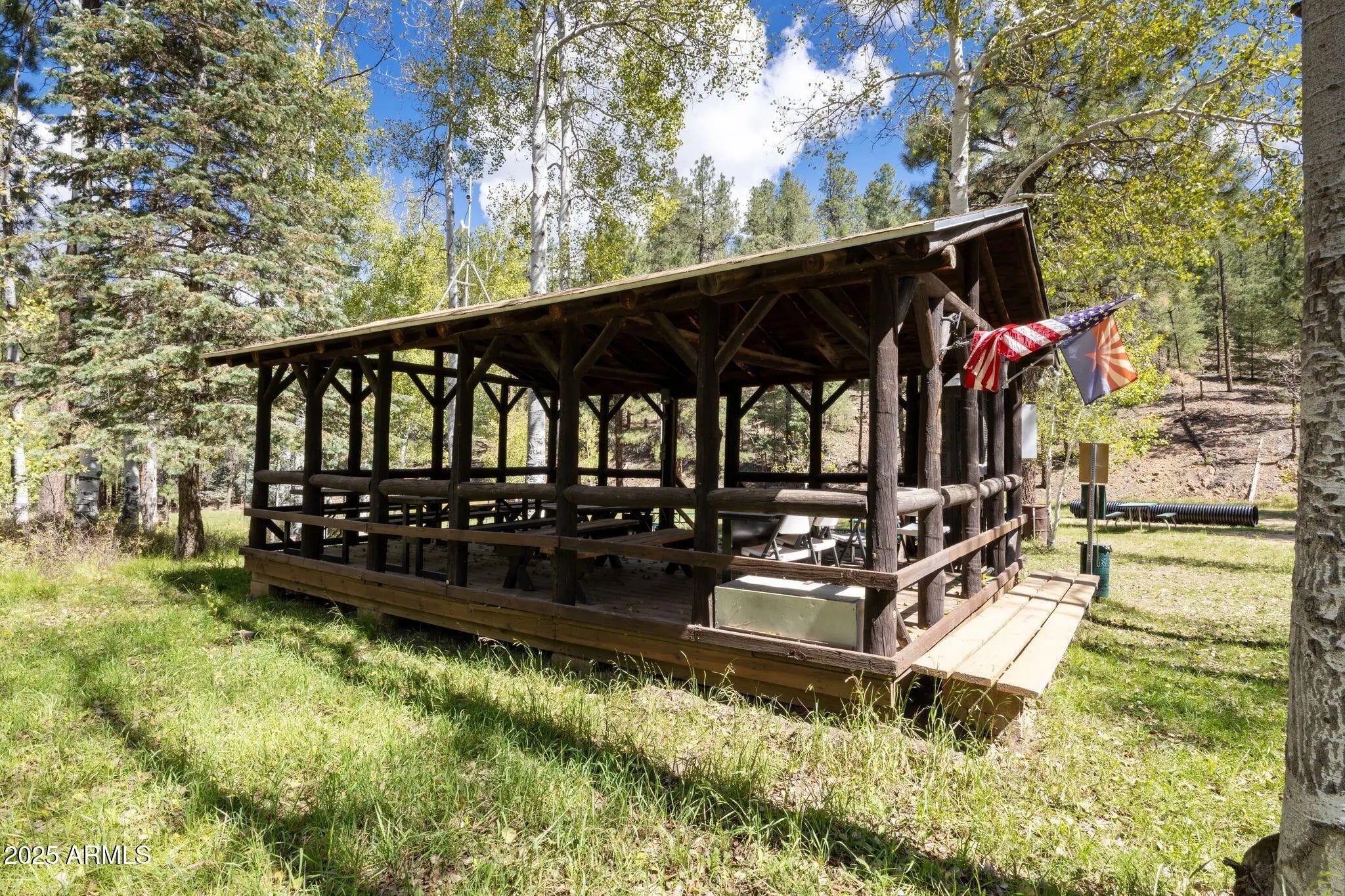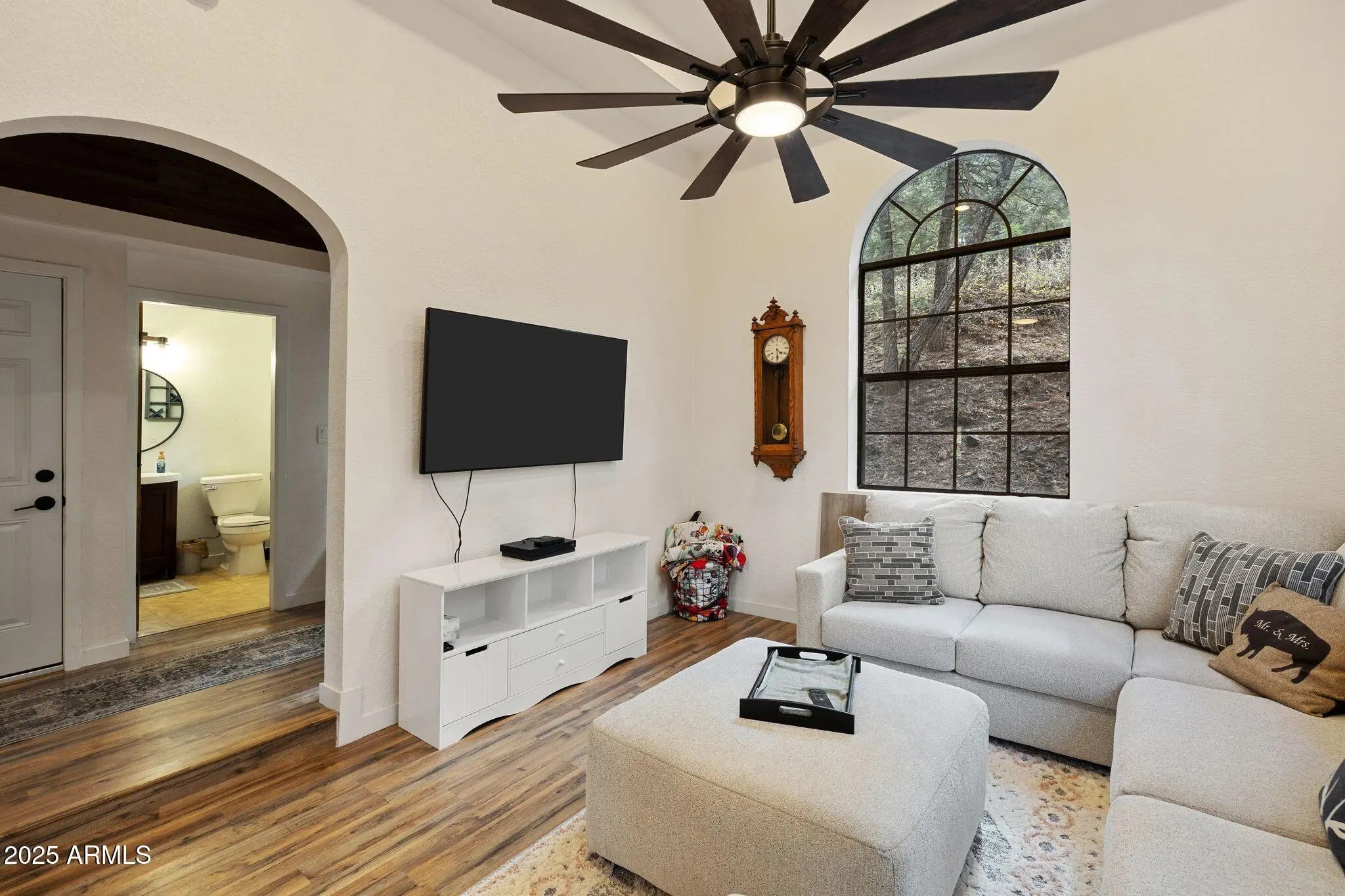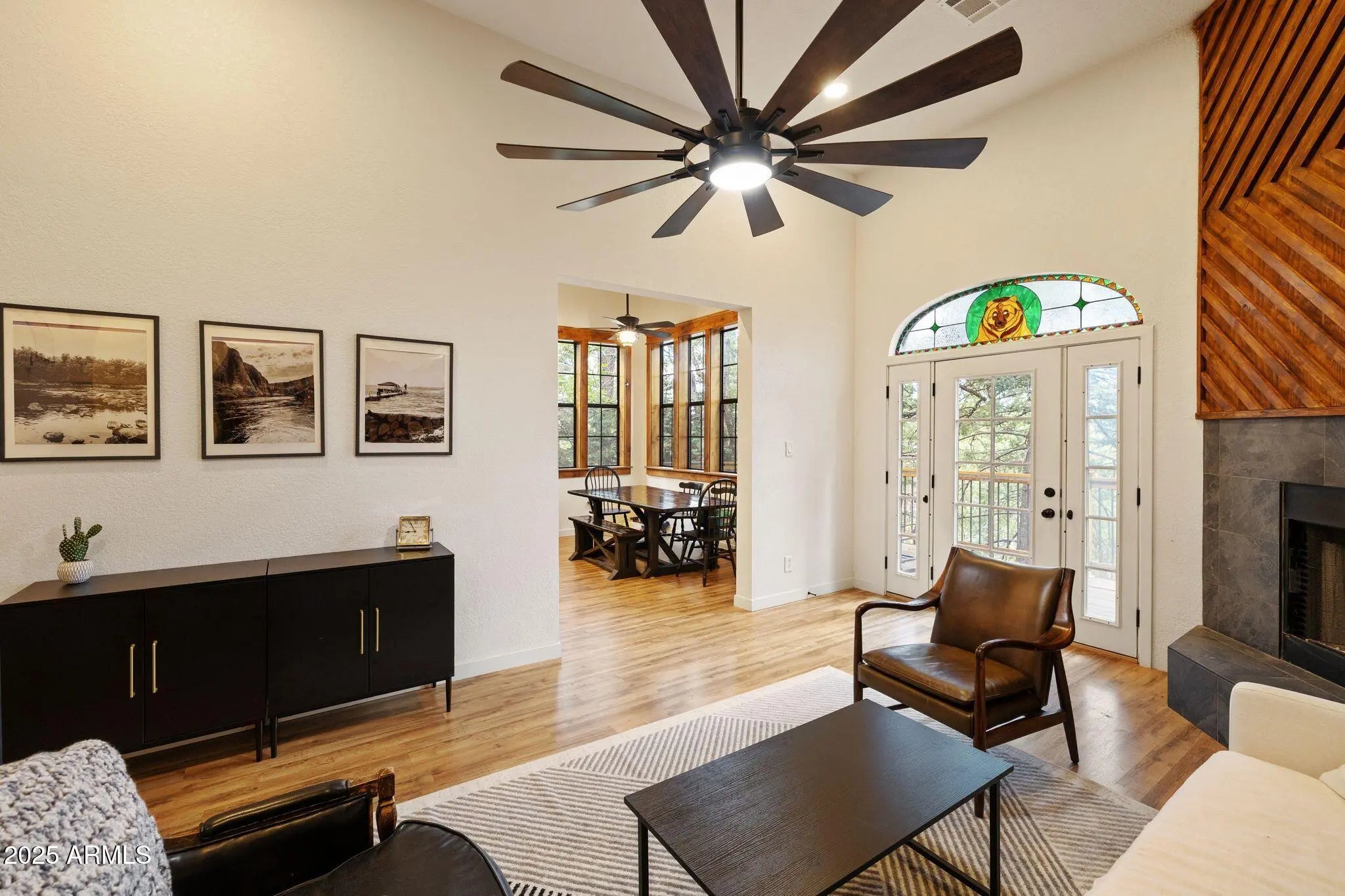 Check out this stunning, fully furnished and updated cabin tucked away in the majestic Prescott pines! This one-of-a-kind home combines modern designer finishes with cozy mountain charm, offering the perfect retreat. Inside, you'll find two oversized upstairs bedrooms connected by a beautifully remodeled bathroom, creating a private and functional layout. Just off the garage, a separate studio with its own bathroom and kitchenette makes the perfect mother-in-law suite, guest quarters, or rental opportunity. The home has been thoughtfully upgraded with new AC, furnace, water storage tank, and fresh interior/exterior paint. Designer details shine throughout with wood paneled ceilings and beams, a stunning accent wall, custom fireplace, iron staircase, modern lighting, and