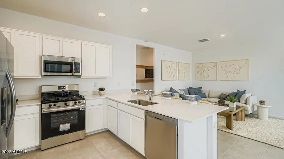 Seller will provide a credit towards a rate buydown and closing costs with preferred lender. Ask us how to save thousands over the life of your loan. Premier Collection offers single-family homes for sale in Montecito at Estrella, a new neighborhood in Goodyear, AZ. Residents enjoy 65+ miles of trails, 50+ parks, 72 acres of lakes, Yacht Club, and championship golf at the Golf Club of Estrella. They also have access to residents clubs--featuring heated pools, fitness centers, restaurants, event spaces, and StarSplash WaterPark.This home comes fully equipped with all brand-new stainless steel kitchen appliances and is complete with 18x18 tile flooring, stunning quartz countertops, and stylish maple almond cabinetry, designed for both comfort and function. Photos are of model home.