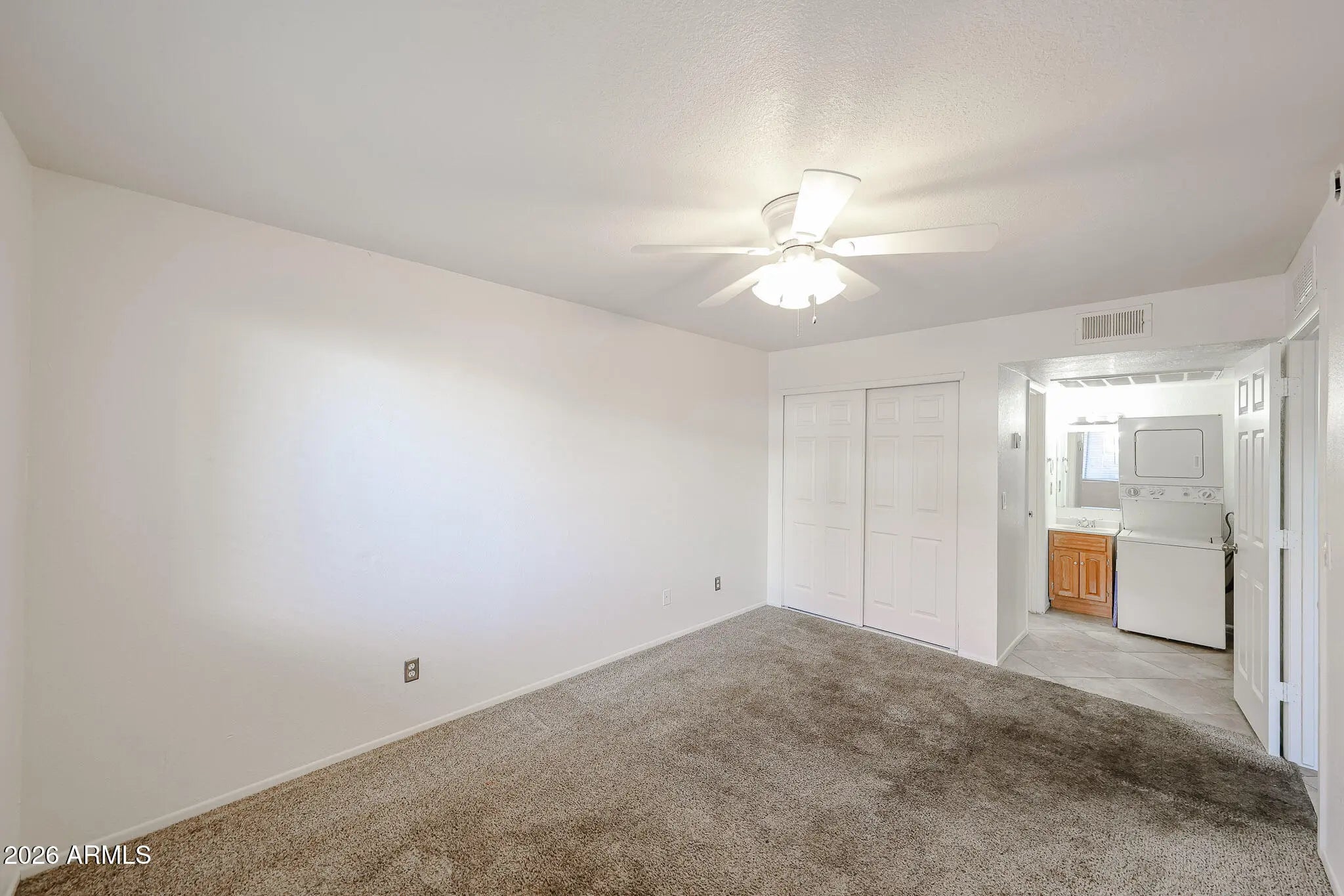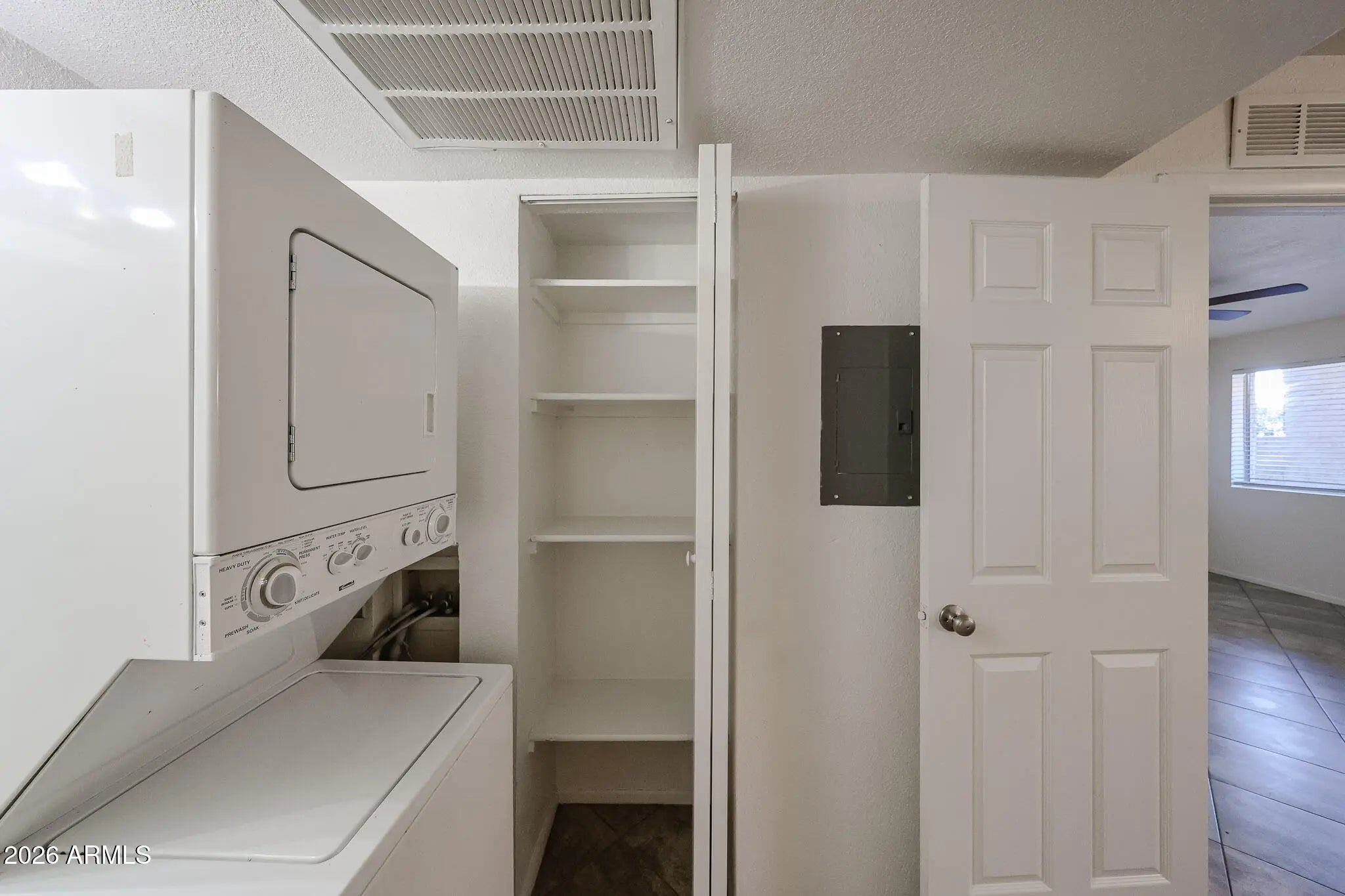 Stacked Washer/Dryer, Dryer, Washer, Refrigerator, Built-in Microwave, Dishwasher, Disposal, Electric Range, Electric Oven