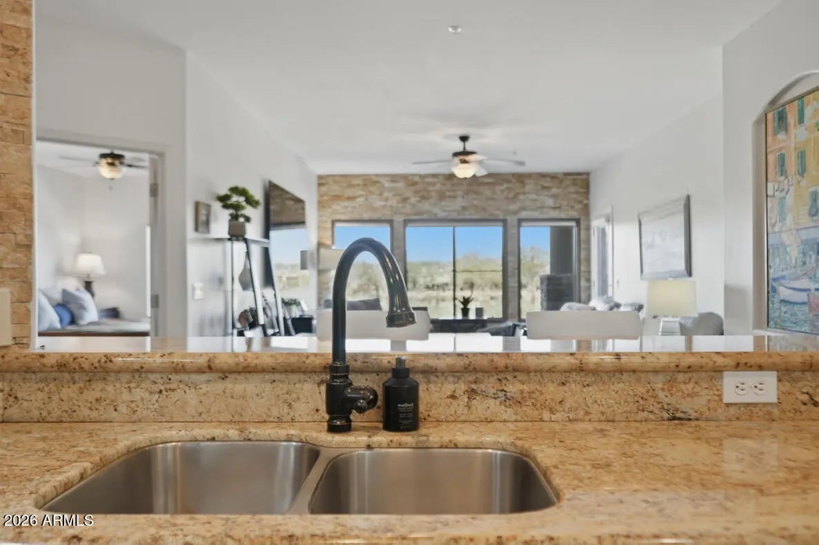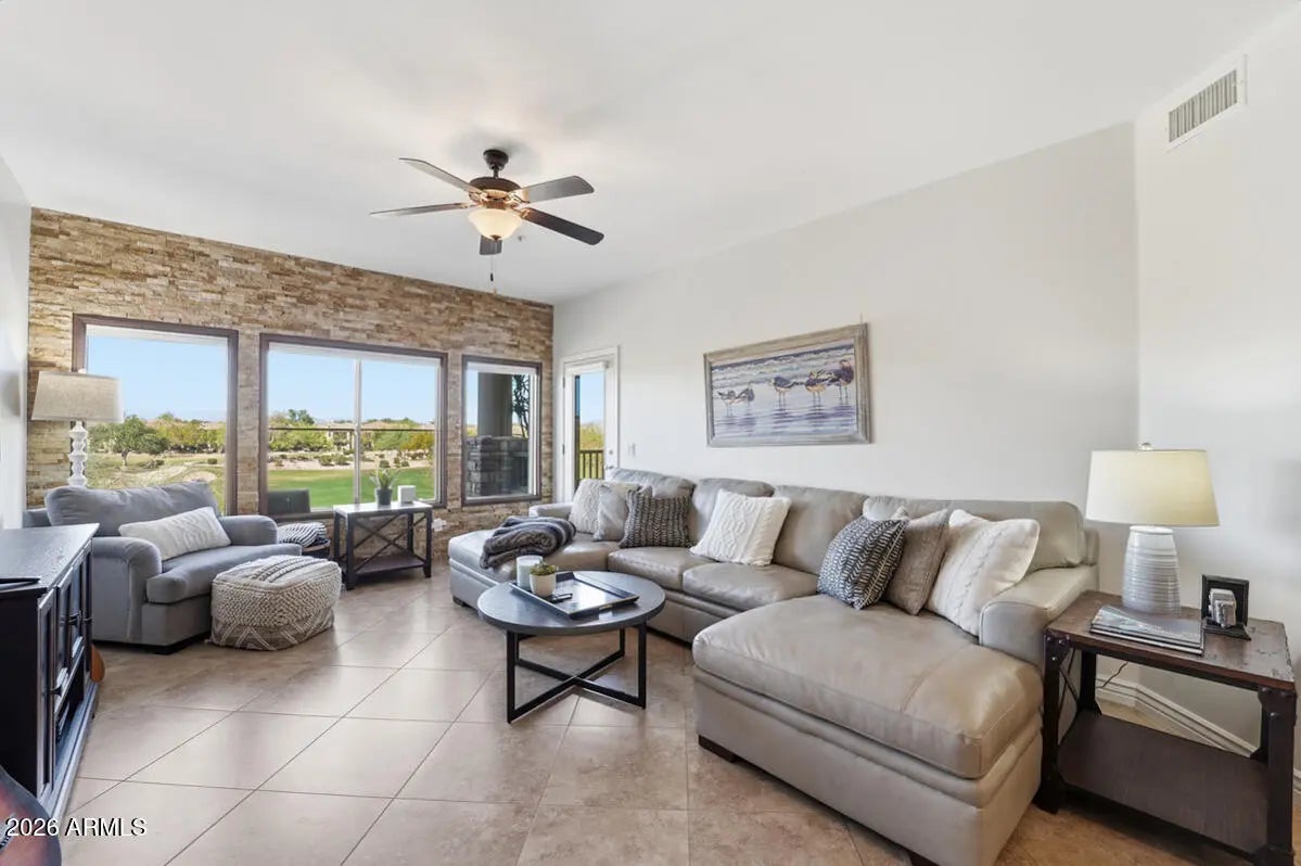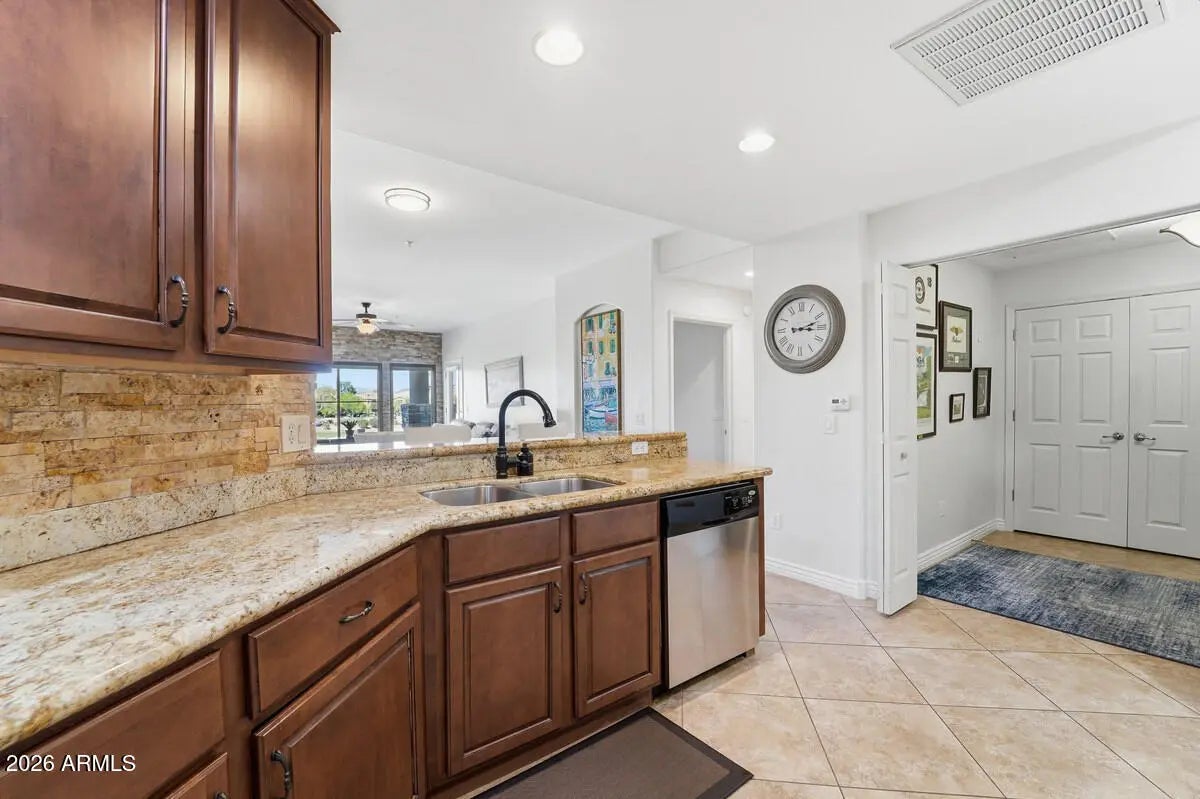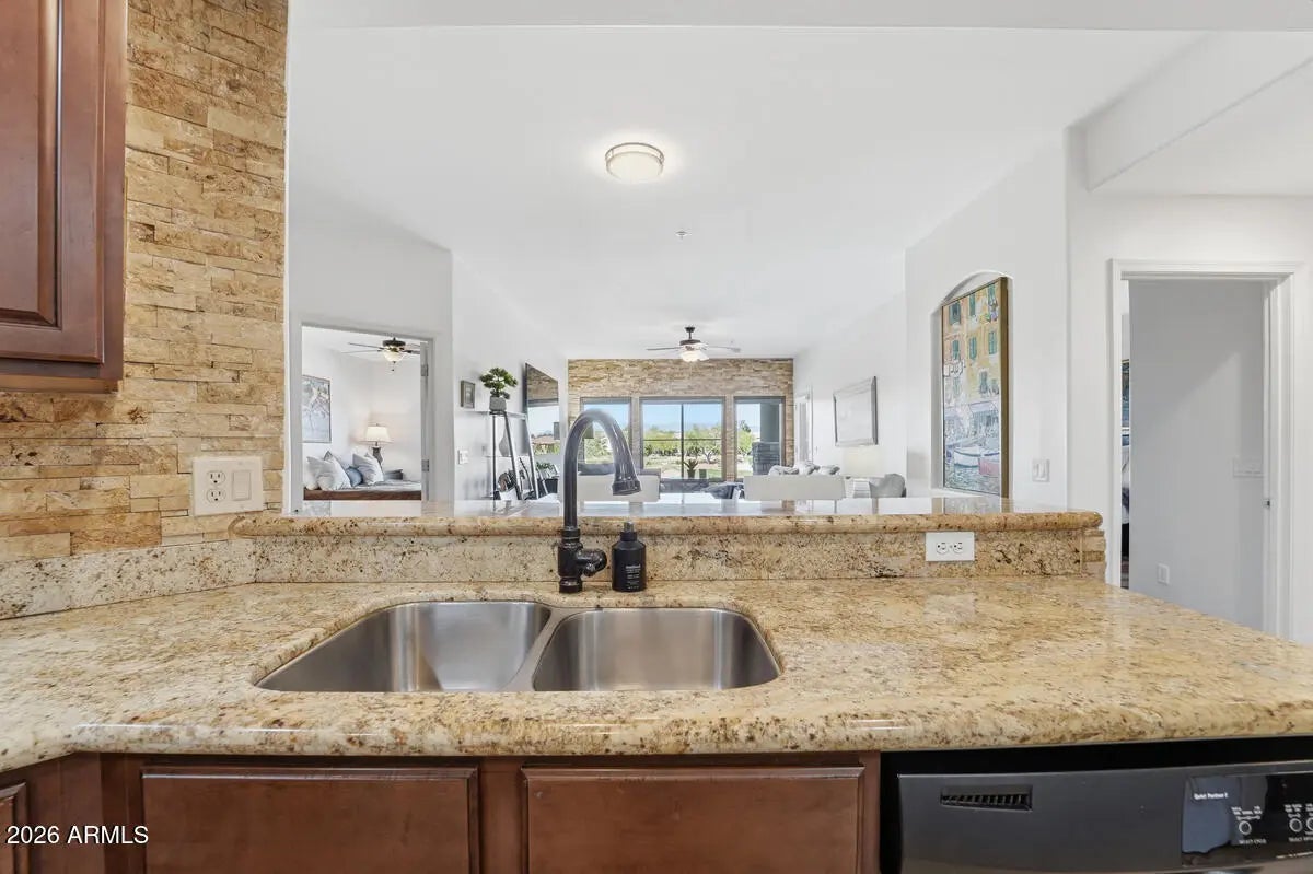 This spacious 2 bedroom, 2 bathroom condo is beautifully upgraded and has a fantastic location and view. Toscana is an amenity rich community in the heart of Desert Ridge. The condo has 2 separate parking spaces in the cool underground parking garage. Spaces 705 and 708. This one is a must see! Welcome Home!