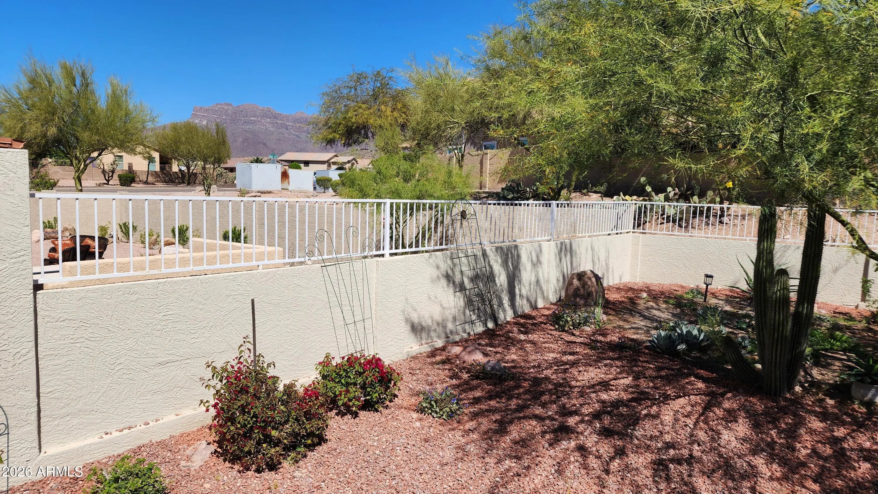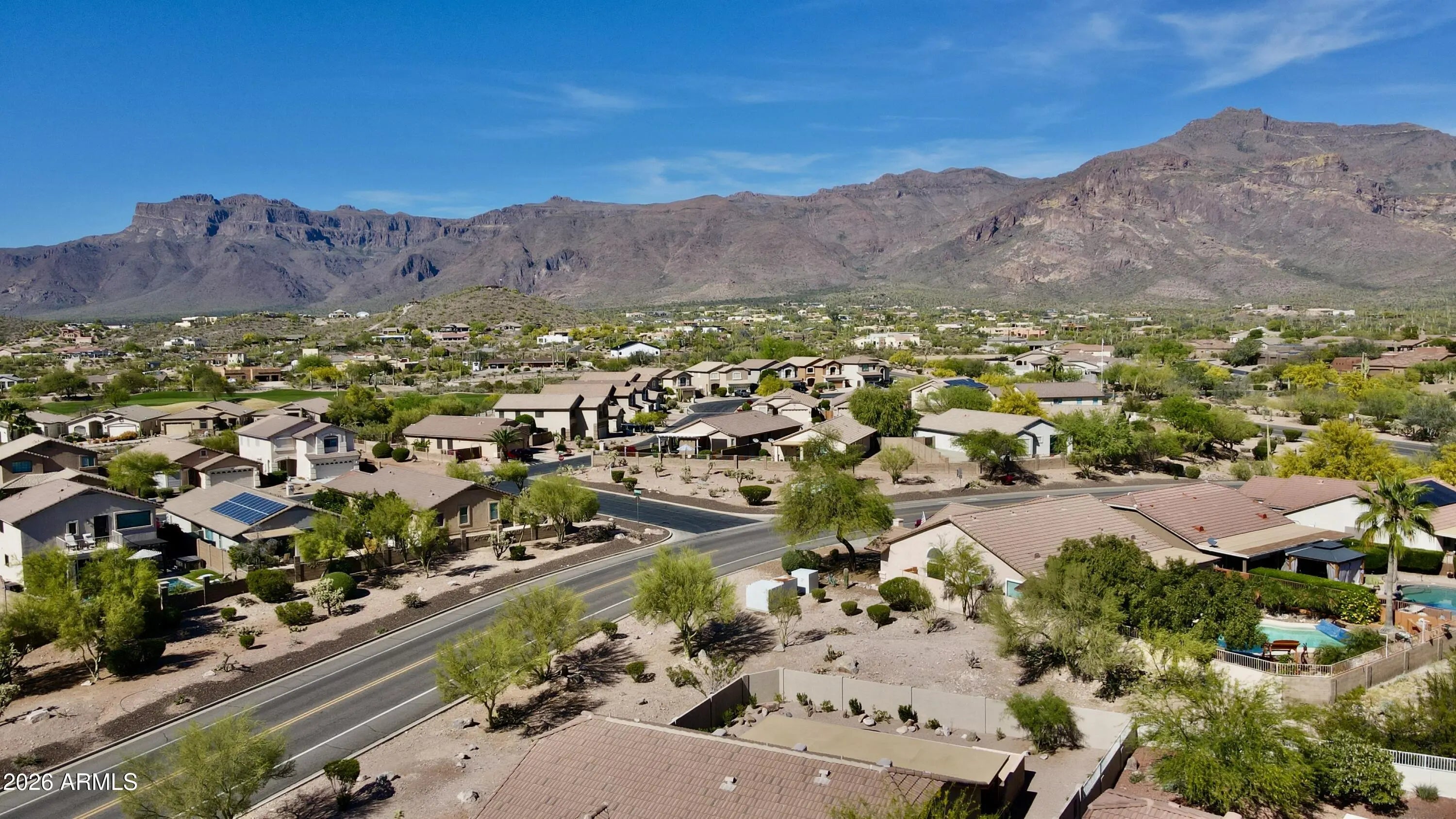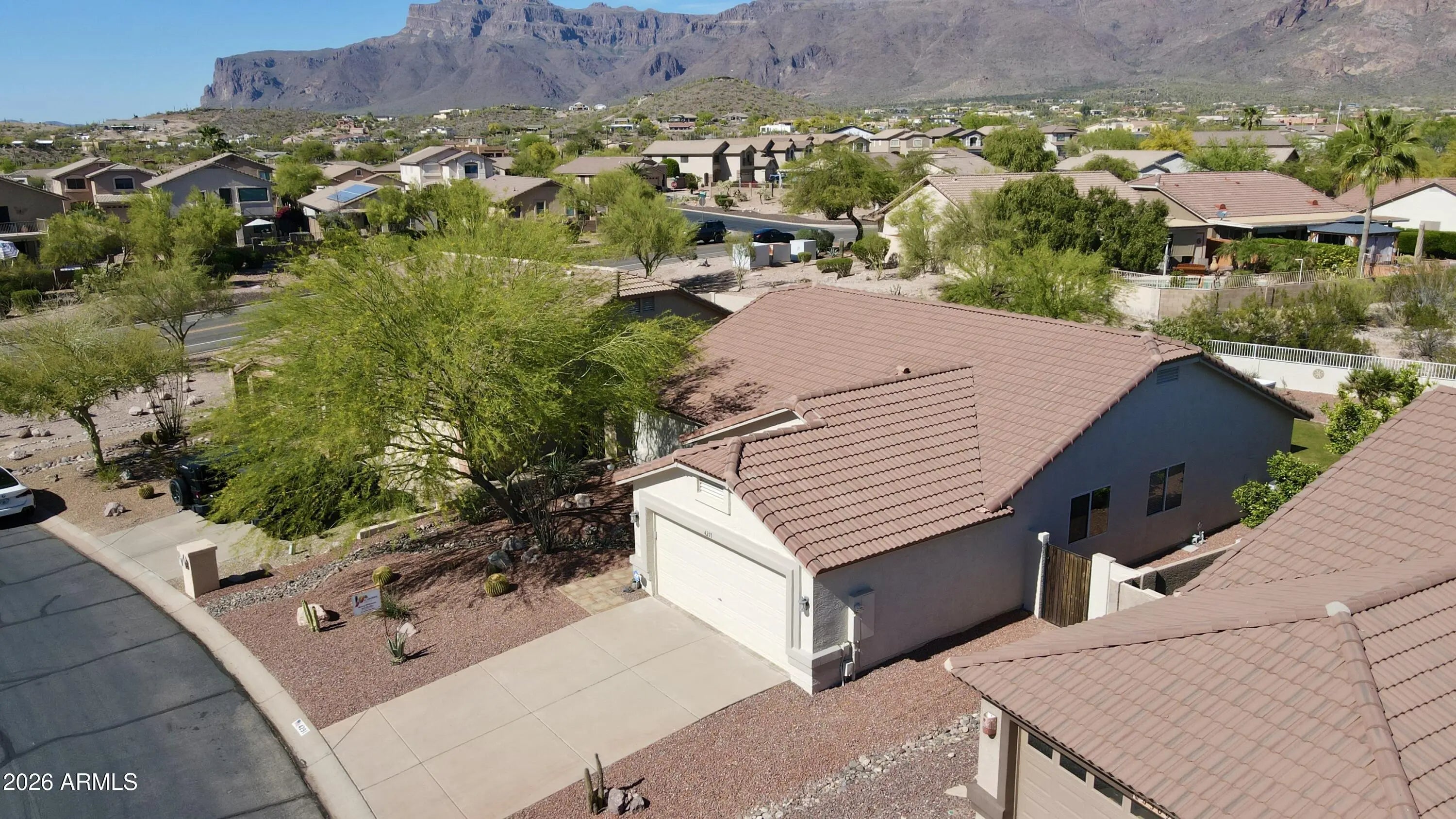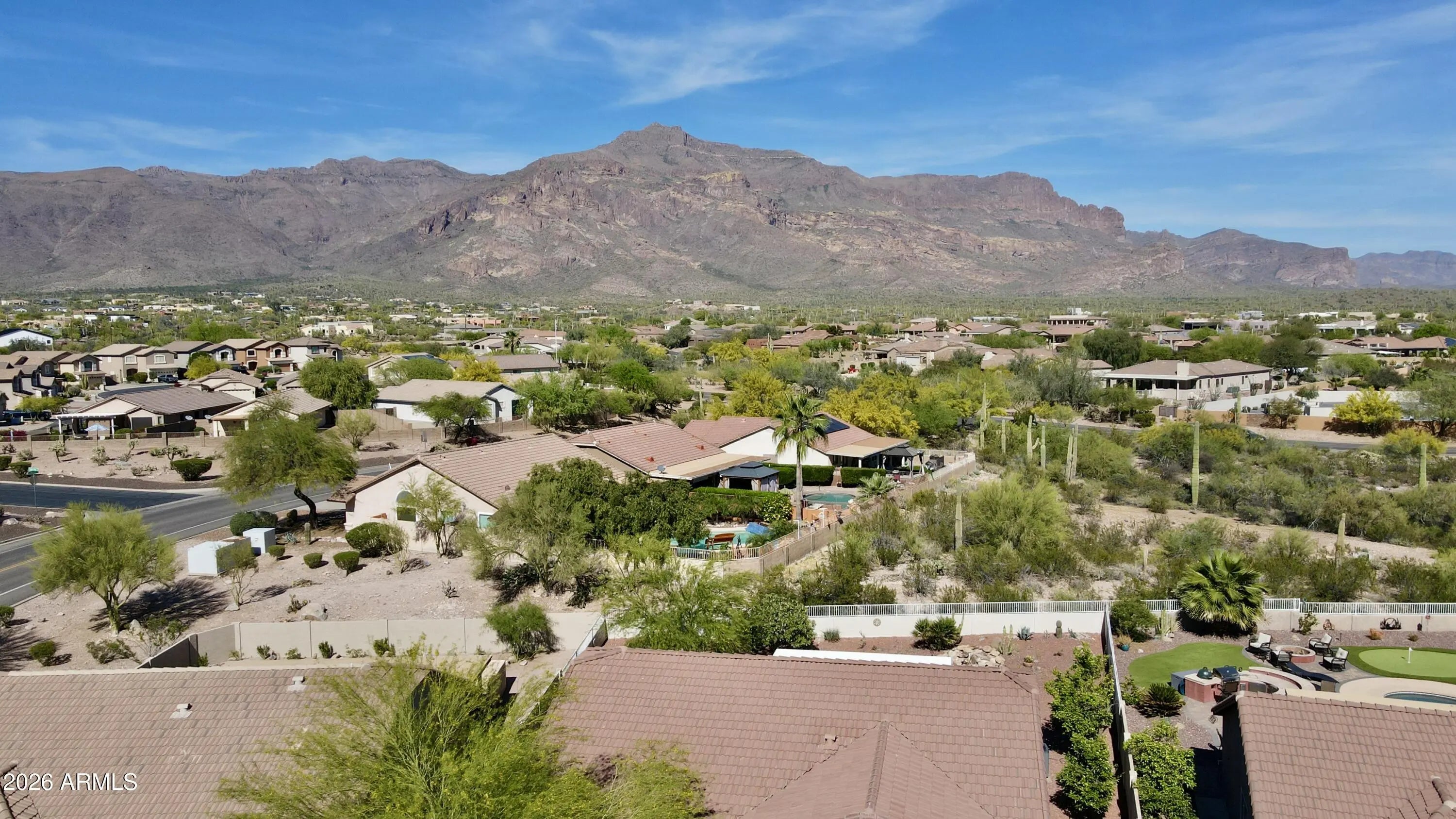 New Roof, New HVAC & Fresh Interior/Exterior Paint (2026)! Come see this Beautiful 3 bed, 2 bath home in Equestrian Trail, Gold Canyon, with stunning Superstition Mountain views. Open floor plan with vaulted ceilings. Kitchen features stainless steel appliances, painted cabinets with updated hardware, granite countertops, tile backsplash & pantry. Spacious primary suite with bay windows, walk-in closet, dual vanities, soaking tub, walk-in shower & private toilet room. Wood flooring & carpet, 2-car garage with storage cabinets, water softener & security door. Backyard offers covered tiled patio, low-maintenance desert landscaping, mature saguaro & backs to preserve for added privacy. *Furniture INCLUDED/available via separate bill of sale.**