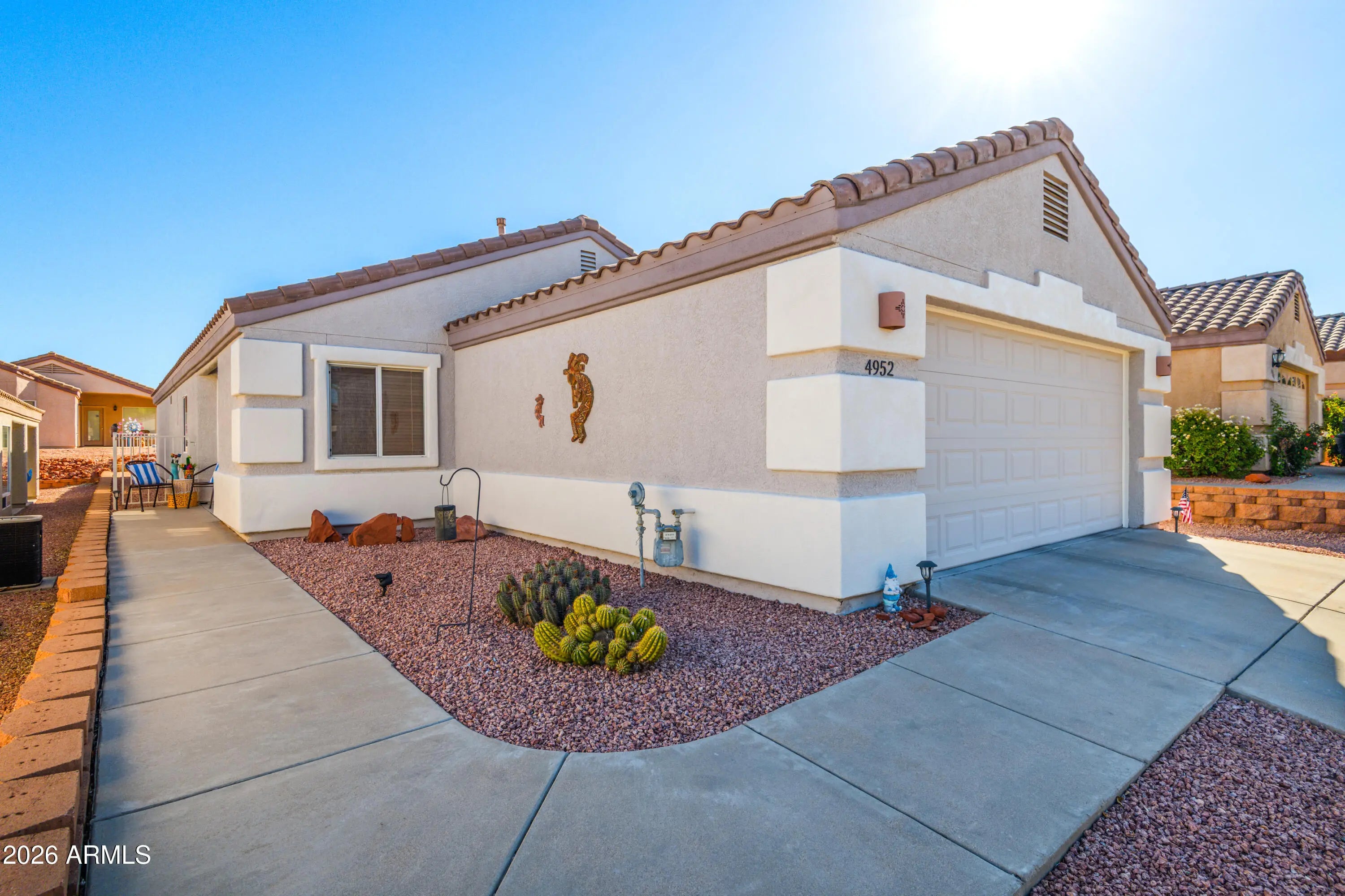 Located on a quiet cul-de-sac in the desirable Amante gated community of Verde Santa Fe, this beautifully maintained home offers 2 bedrooms plus a den/study and a spacious, open floor plan. Den could easily be converted to 3rd bedroom. Home needs nothing and is very well kept with numerous recent upgrades. Interior Features: • Split floor plan for added privacy • Newer flooring throughout • Granite countertops & stainless steel appliances • Laundry room with washer & dryer included • Updated walk in shower (2019) • New 50 gallon water heater & Nuvo water filtration system Exterior & Mechanical Upgrades: • New 5 ton Lennox AC Unit (2024) • New insulated garage door (2024) • Full home PEX re-p Exterior & Mechanical Upgrades: '' New 5 ton Lennox AC Unit (2024) '' New insulated garage door (2024) " Full home PEX re-p Exterior & Mechanical Upgrades: " New 5 ton Lennox AC Unit (2024) " New insulated garage door (2024) " Full home PEX re-pipe (2023) " Epoxy garage floor " New exterior paint (2020) " Wrought iron fencing & retaining wall (2017) " Covered back patio for outdoor enjoyment Community Amenities: " Golf Course " Clubhouse/Rec Center " Pool " Walking trails This home is truly move in ready and ideal for full time living or seasonal use. A must see in Verde Santa Fe! Don't miss your opportunity to live in this immaculately kept home.