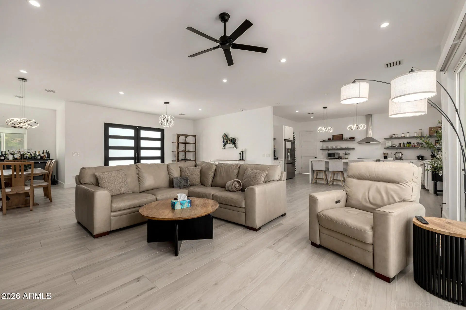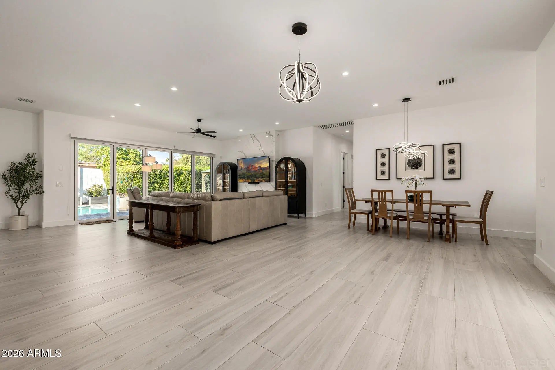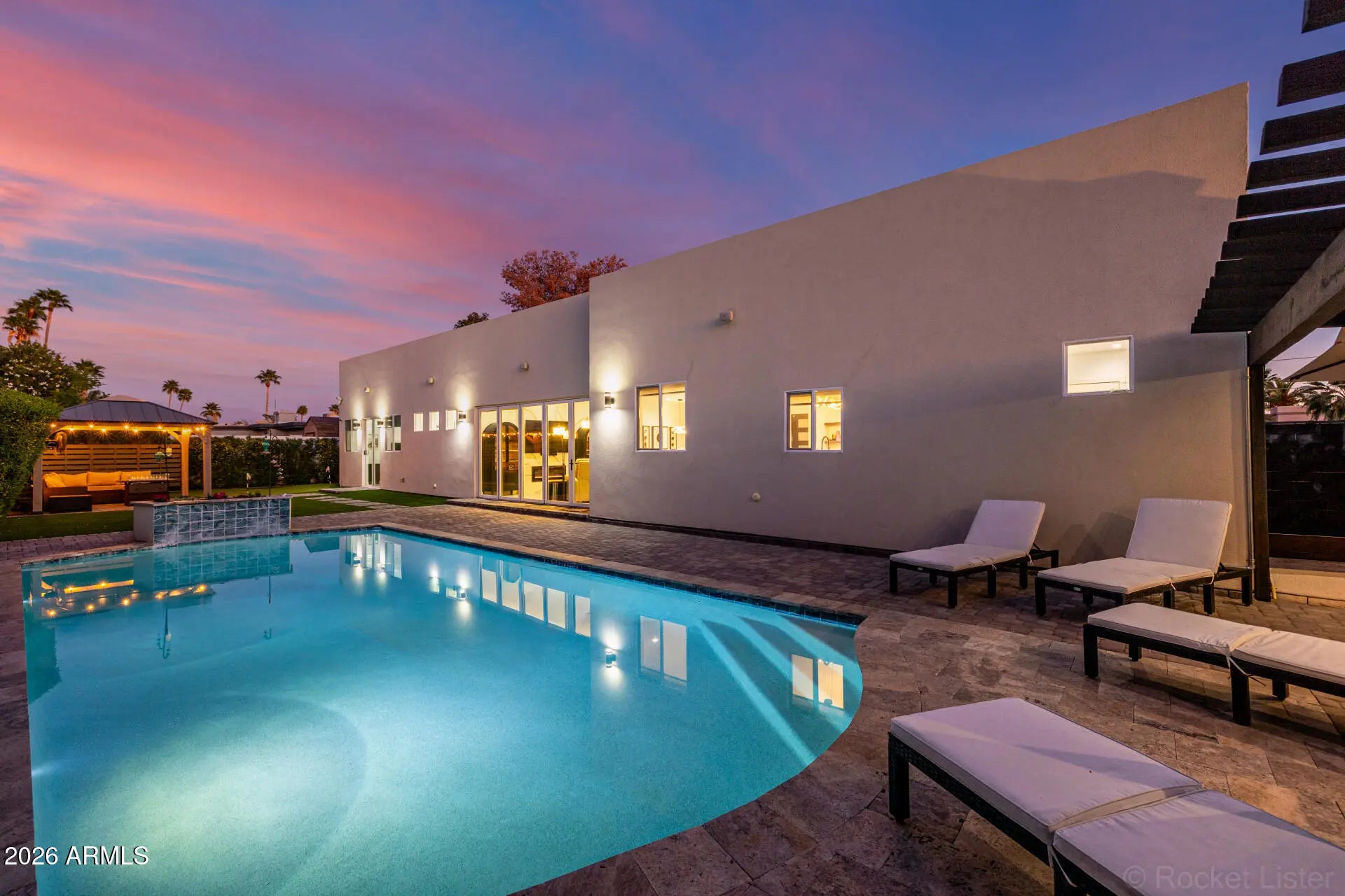 All furniture & furnishings (TVs, kitchenware, artwork, etc.) included with the sale price. Stunning move-in-ready contemporary home in the highly desirable 85254 area. This property features soaring ceilings and a bright, open-concept floor plan centered around a chef's kitchen and a sun-filled great room. Expansive sliding glass doors create seamless indoor-outdoor living, opening to an entertainer's backyard complete with a beautiful pool. Quality craftsmanship is evident throughout, with porcelain and wood flooring, beautifully designed bathrooms, smart-home wiring inside and out, and thoughtfully designed landscaping with elegant exterior lighting. This would make a great turnkey short term rental. All furnishings are included in the sale price.