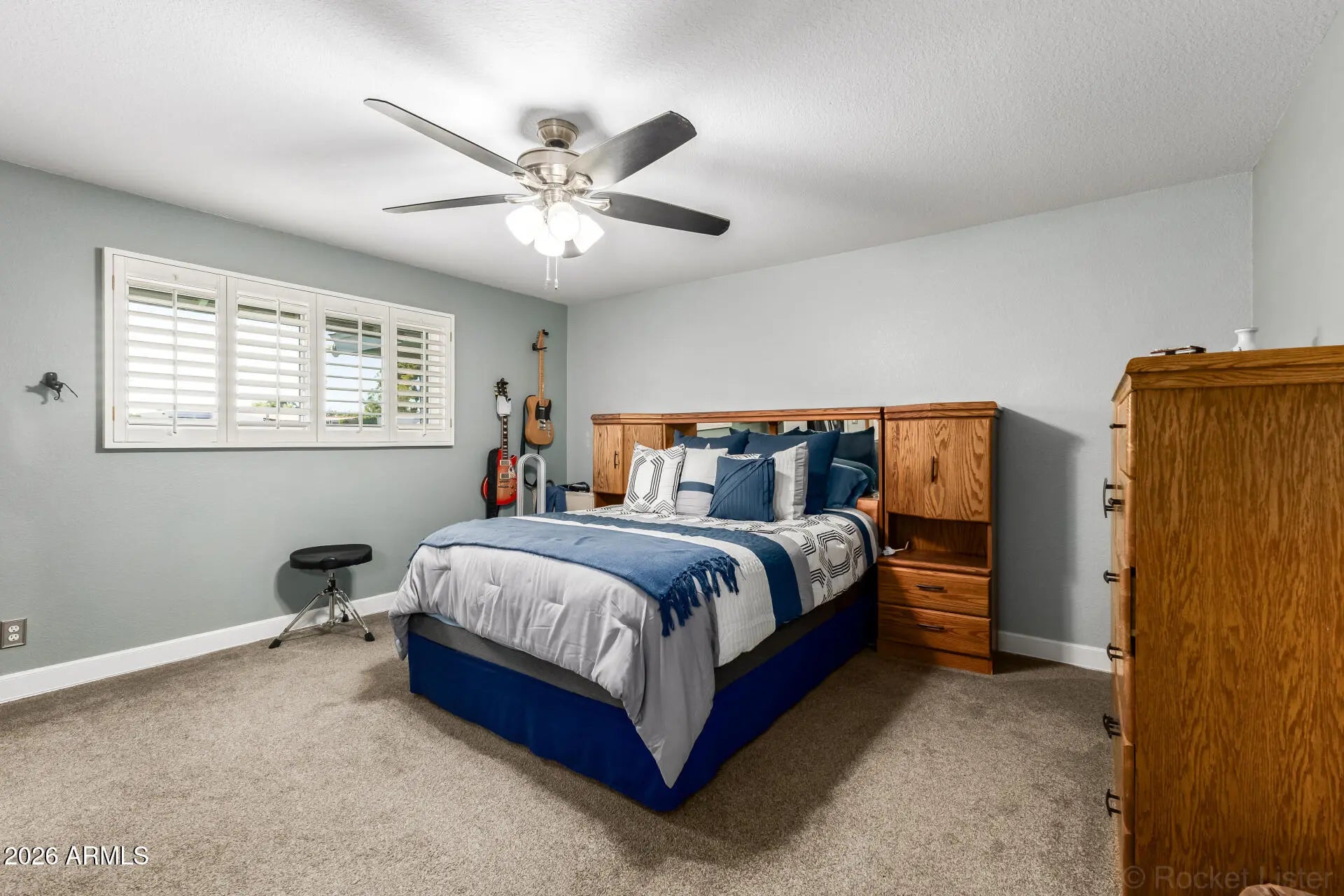 Immaculate and beautifully upgraded, this spacious home sits on an expansive 1/3-acre lot in a desirable neighborhood with no HOA. Designed for both everyday living and entertaining, the floor plan features formal living and dining rooms plus an open kitchen and family room anchored by a charming brick fireplace. The light-filled kitchen offers quartz countertops, designer backsplash, upgraded stainless steel appliances, and a premium Dacor range, while the home showcases new wood-look tile flooring, newer carpet with upgraded pad, updated tile showers and baths, and classic California shutters throughout. Major improvements include solar, new windows with lifetime warranty, 2021 roof, sealed ductwork, enhanced insulation including the garage, and all sewer plumbing replaced including Major improvements include solar, new windows with lifetime warranty, 2021 roof, sealed ductwork, enhanced insulation including the garage, and all sewer plumbing replaced including city side. Additional upgrades include new exterior doors, insulated garage door with upgraded opener, epoxy garage flooring, mini-split in the garage, and abundant storage throughout the home and oversized laundry room. The backyard is a private retreat feturing a Pebble Tec diving pool and spa (refinished in 2021), large covered patio, artificial turf, and a natural gas BBQ stub. With a custom RV gate, concrete RV/boat parking pad, and storage shed with power, there's plenty of space for all your toys. Extensively upgraded, move-in ready, and rarely available with this much space and flexibility in convienent Mesas location. See the full upgrade list in the MLS.