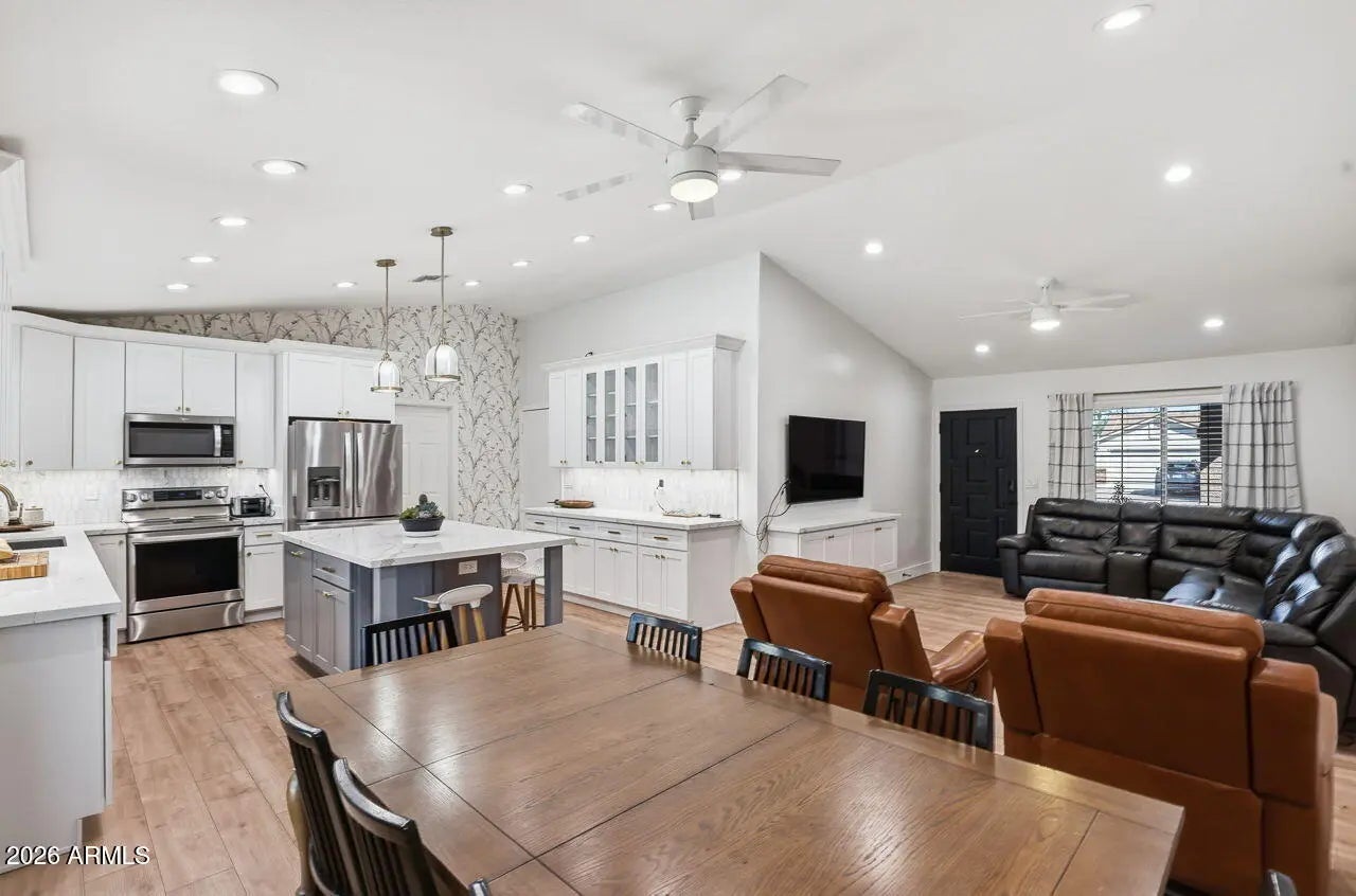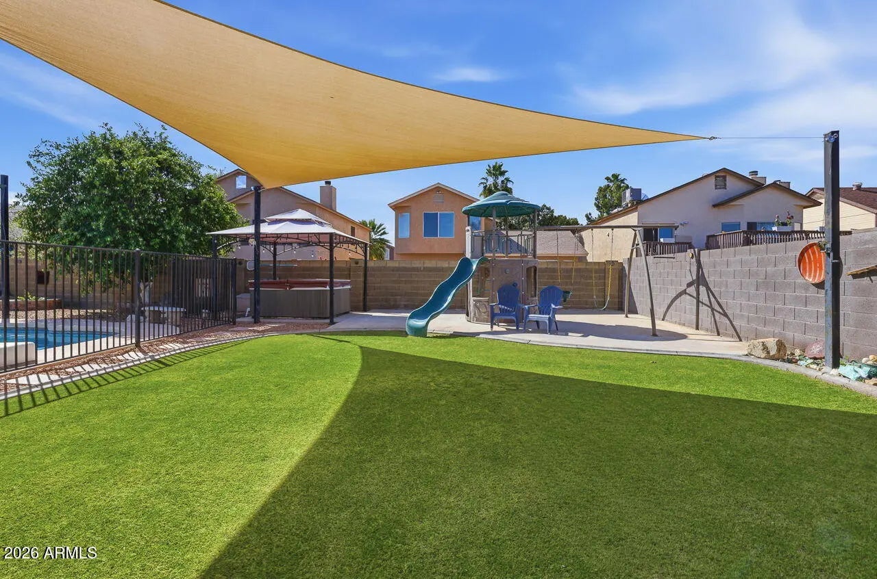 Welcome to this beautifully maintained, single-owner home that reflects true pride of ownership for the past 37 years. This 4-bedroom, 2-bath residence has been meticulously cared for and thoughtfully updated, offering a move-in ready opportunity for its next owner. A complete remodel in 2018 brought modern finishes throughout, including a stunning kitchen featuring shaker-style cabinetry, brand-new quartz countertops, and newer flooring that flows seamlessly through the home. Both bathrooms have been tastefully upgraded with new tile, vanities, and fixtures, creating a fresh and contemporary feel. Major systems have been well maintained, including an AC unit approximately 8 years old, a roof replaced 10 years ago, and a brand-new water heater--providing peace of mind for years to come. Step outside to enjoy a spacious backyard designed for both relaxation and fun. The diving pool, resurfaced with PebbleTec just four years ago, is perfect for Arizona summers, while the yard also features ample space and playground equipment for family enjoyment. This is a rare opportunity to own a truly cared-for home in excellent condition, with quality updates already completed.