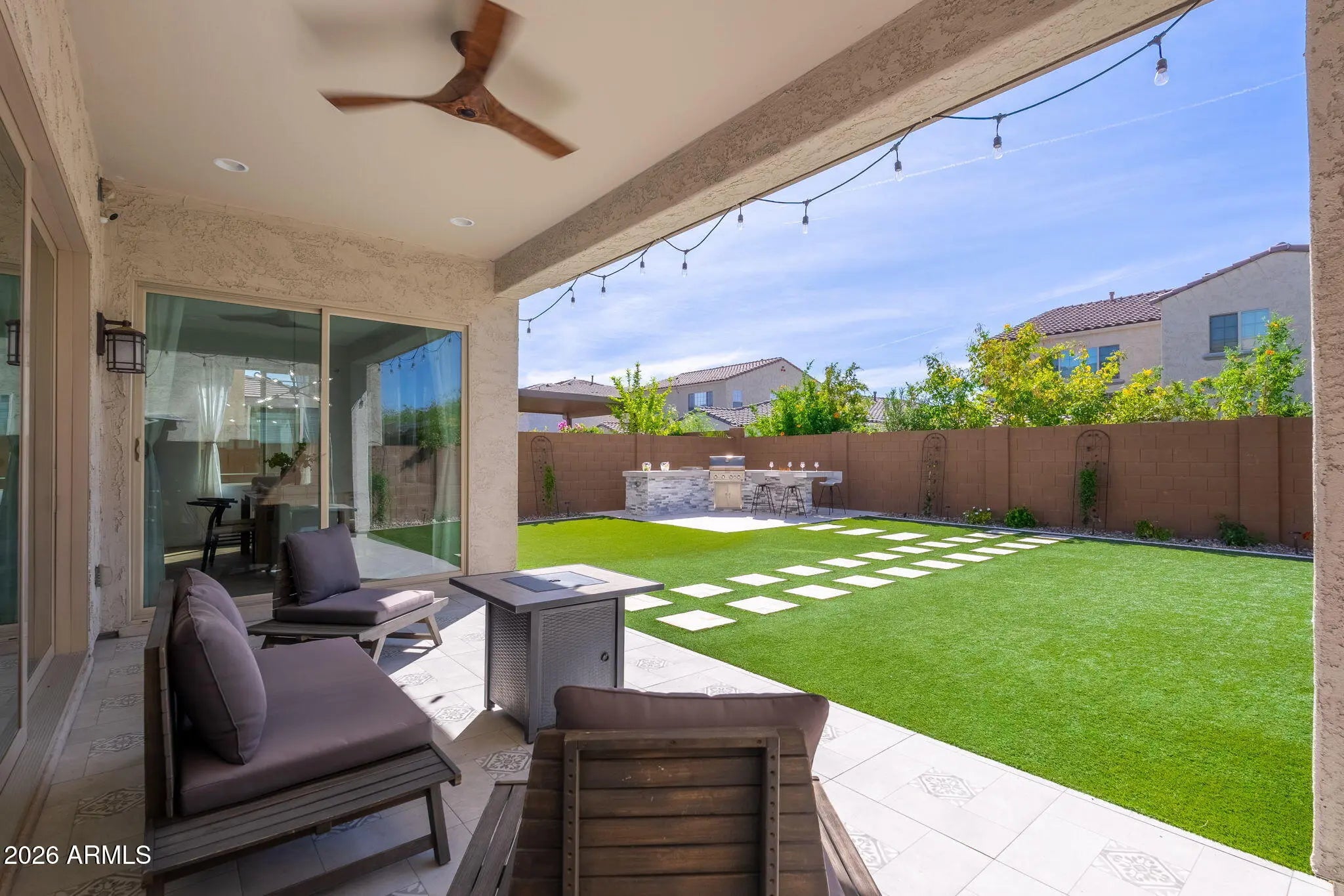 ABSOLUTELY STUNNING! UPGRADES galore! Seller offering $10,000 rate BUYDOWN incentive. (Before you step in, ask for the 3D tour and home tour video) Welcome to the modern home in the highly sought-after Sky Crossing community. Premium Lot with N/S exposure with park across. This home offers open-concept layout with exceptional curb appeal. Wood-look tile flooring, designer finishes, abundant light, and a striking 20-ft accent wall. Gourmet kitchen features designer tile wrapped island, stylish backsplash, stainless steel appliances, and walk-in pantry. Great room showcases multi slide doors for indoor-outdoor living, 5.1 surround sound, and custom wood accents. Spacious owner's suite with Jacuzzi tub, walk-in shower, dual vanities, and walk-in closet. Backyard oasis with built-in BBQ, custom bar with Synthetic turf. Garage Epoxy, cabinets, EV ready 220v outlet, water softener, RO, and tankless water heater. PRIME LOCATION near Desert Ridge Marketplace, parks, 101 & 51 freeways, and top PV schools. Ring Security + Nest cameras included! Enjoy resort-style living with access to the Community Center with the sparkling pool, state-of-the-art fitness center, conference facilities, and event lawn. This is the one you've been waiting for.