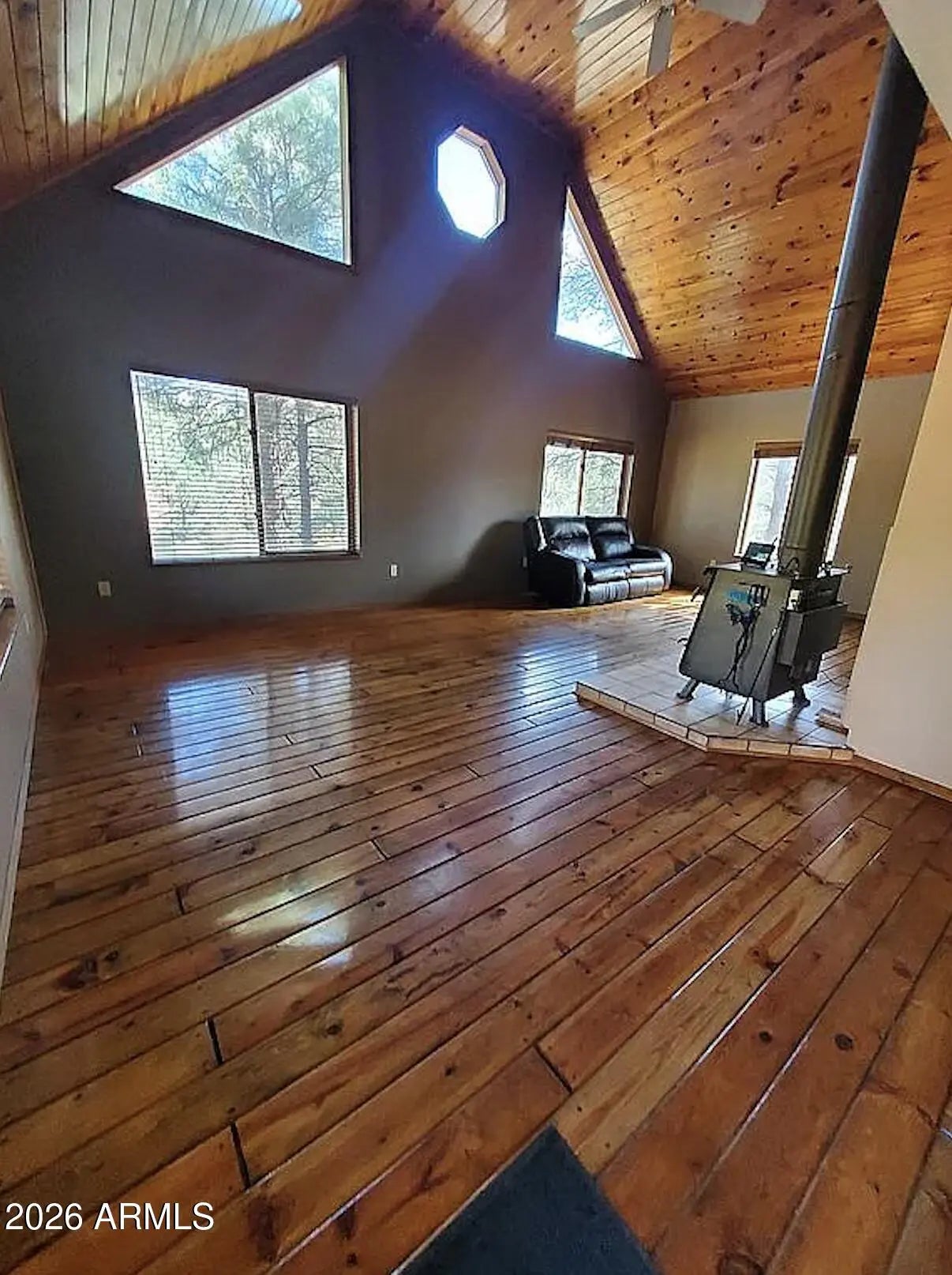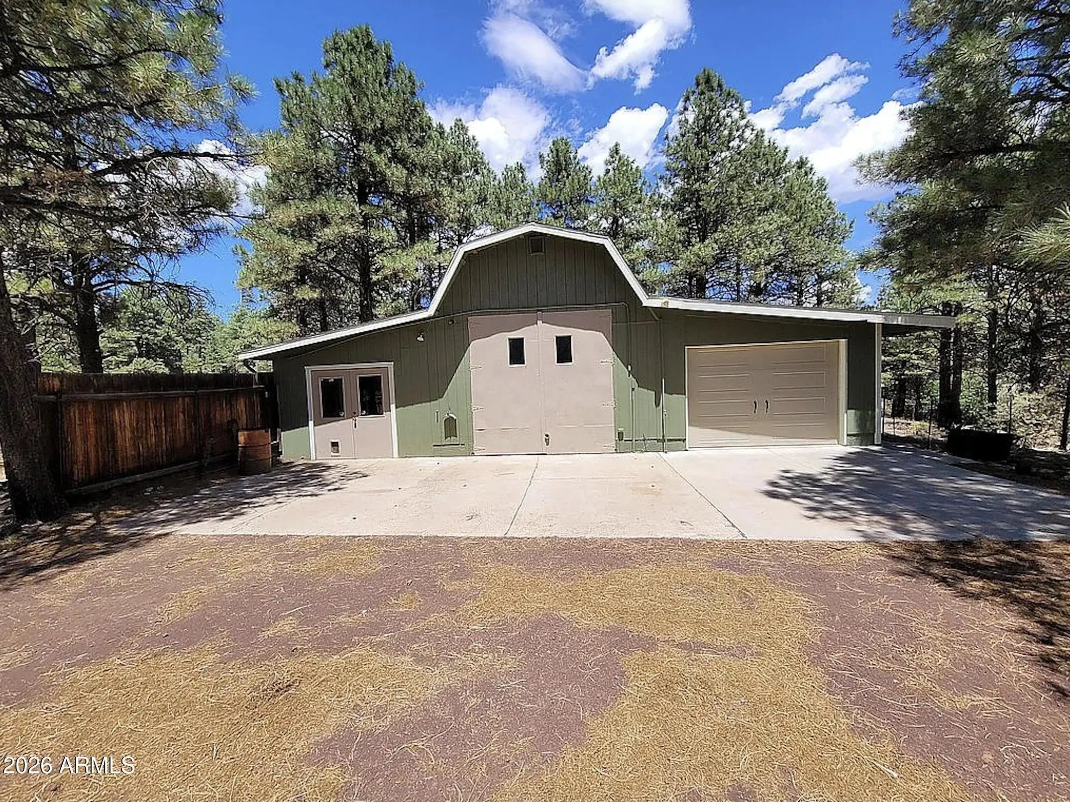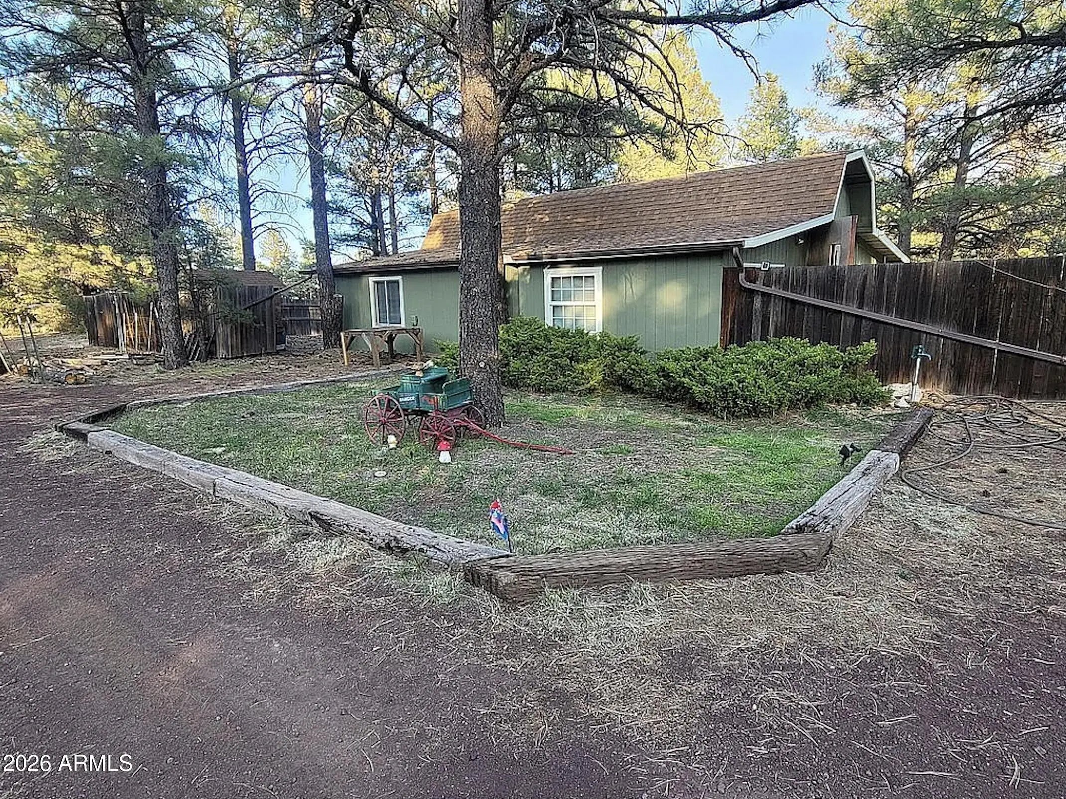 Escape to your mountain retreat in the pines. Rustic cabin on a 5-acre parcel with a 1,600 sq ft workshop/garage and room for toys, animals, and outdoor living. The home features a large upstairs master suite with spacious loft for flexible living space. Enjoy cooler summers, peaceful winters, and a seasonal creek running through the property. Over 200 pine trees provide shade and privacy. Property includes RV parking with RV dump, large storage shed, and animal shelter. Farm animals welcome with room to add corrals. Fenced yard for kids and pets, plus plenty of space to explore and enjoy the outdoors.