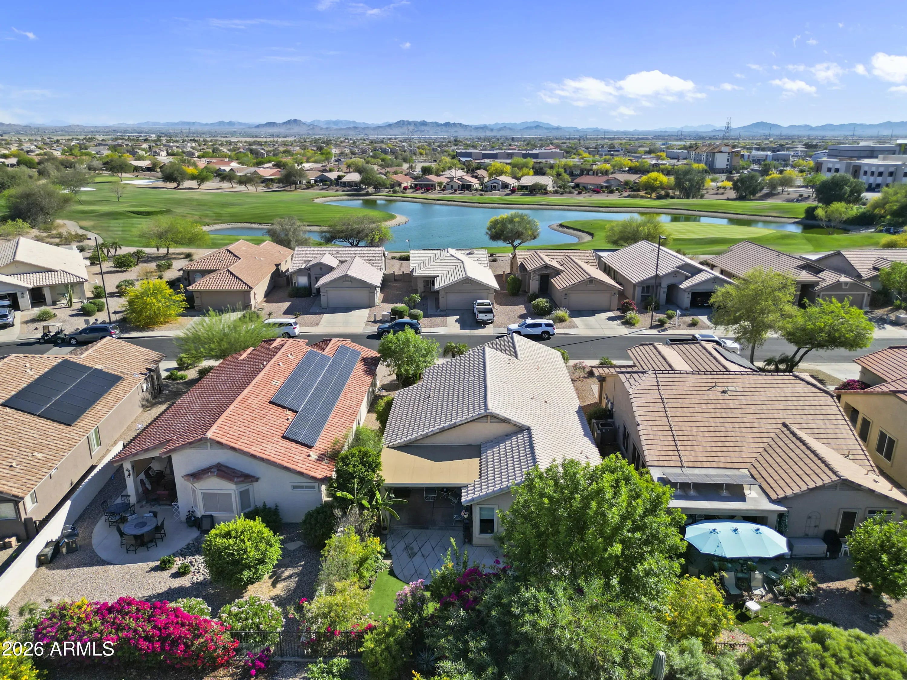 Welcome to this well-maintained 3-bedroom, 2-bath home in the popular Sundance Active Adult Community. The beautifully landscaped backyard features lush, mature vegetation creating a peaceful place to relax and enjoy Arizona evenings. Major updates include a new A/C and new carpet in 2025. Enjoy the active lifestyle Sundance is known for with amenities including a golf course, fitness center, exercise classes, pickleball, tennis, quilting groups, two pools, and a hot tub. Conveniently located near medical facilities, shopping, the community center, and easy access to I-10, making everyday living simple and convenient.