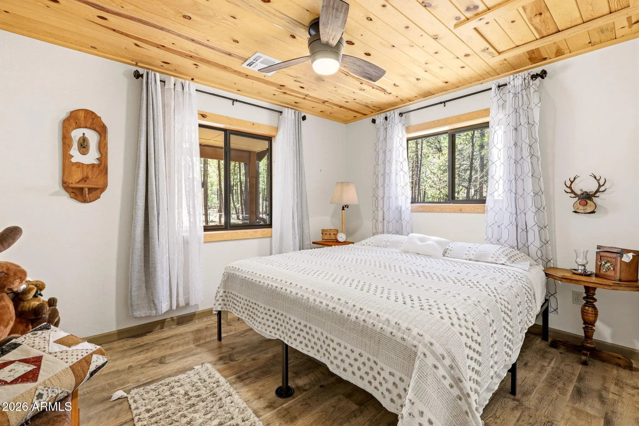 Dreaming of a perfect mountain cabin? Attention to detail fills this home. Split floor plan perfect for guests. Cozy wood stove in living room plus central gas heat and AC. Stainless steel appliances. Covered front and back trex decks (zero maintenance) that are 800sq foot to enjoy the four seasons in the White Mountains. The Trulog siding on the home is unique, looks like wood but metal with a 30year zero maintenance! warranty. Amazing back yard, back forest and includes a six-person hot tub with separate 220 sub-panel. to enjoy nature and wildlife. Great garden area, two extra water hydrants both front and back plus two sheds with electricity. RV hook up with 50amp hook up. On demand hot water heater. No HOA! And you can walk to Rainbow Lake! This home is a must see! Don't miss it