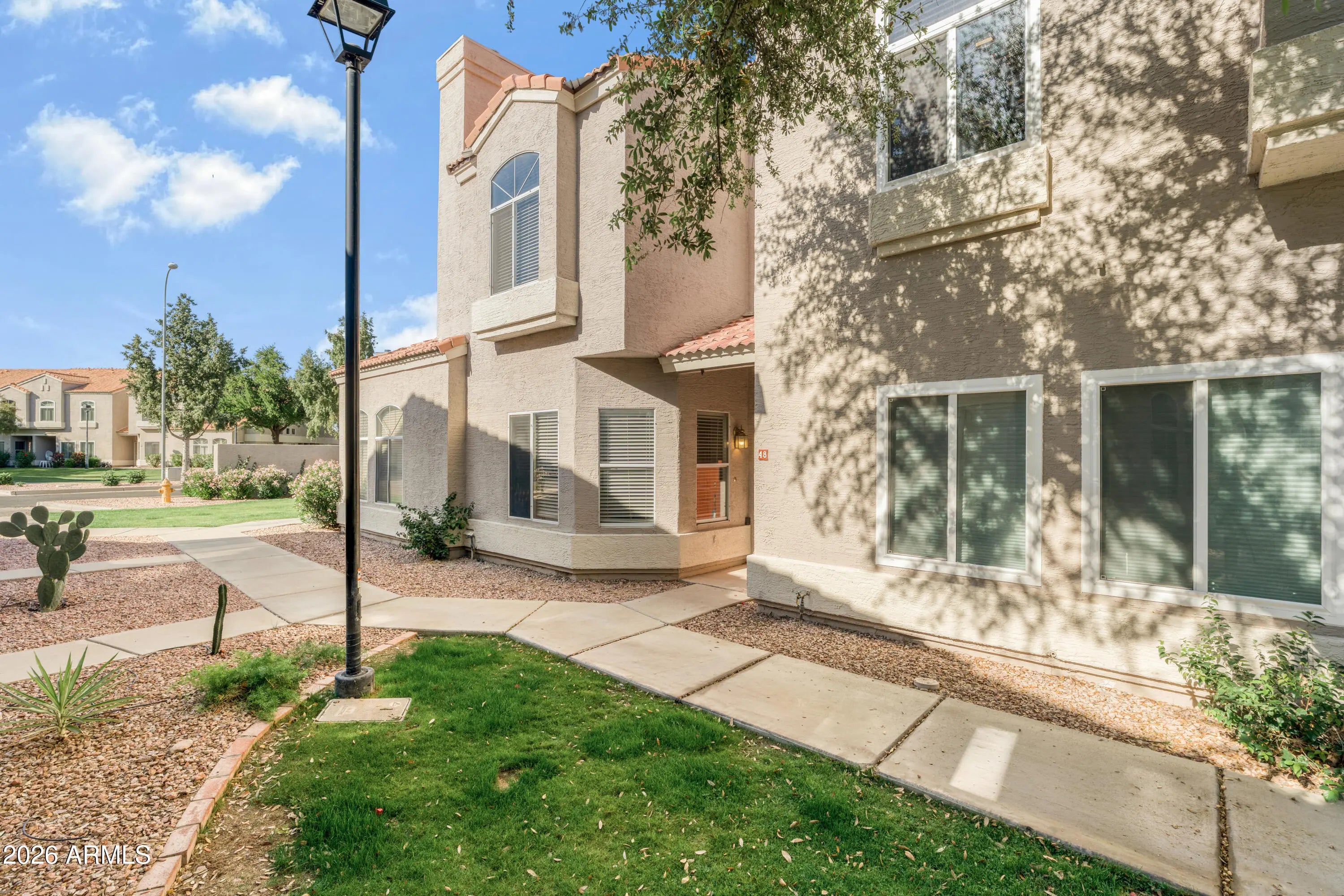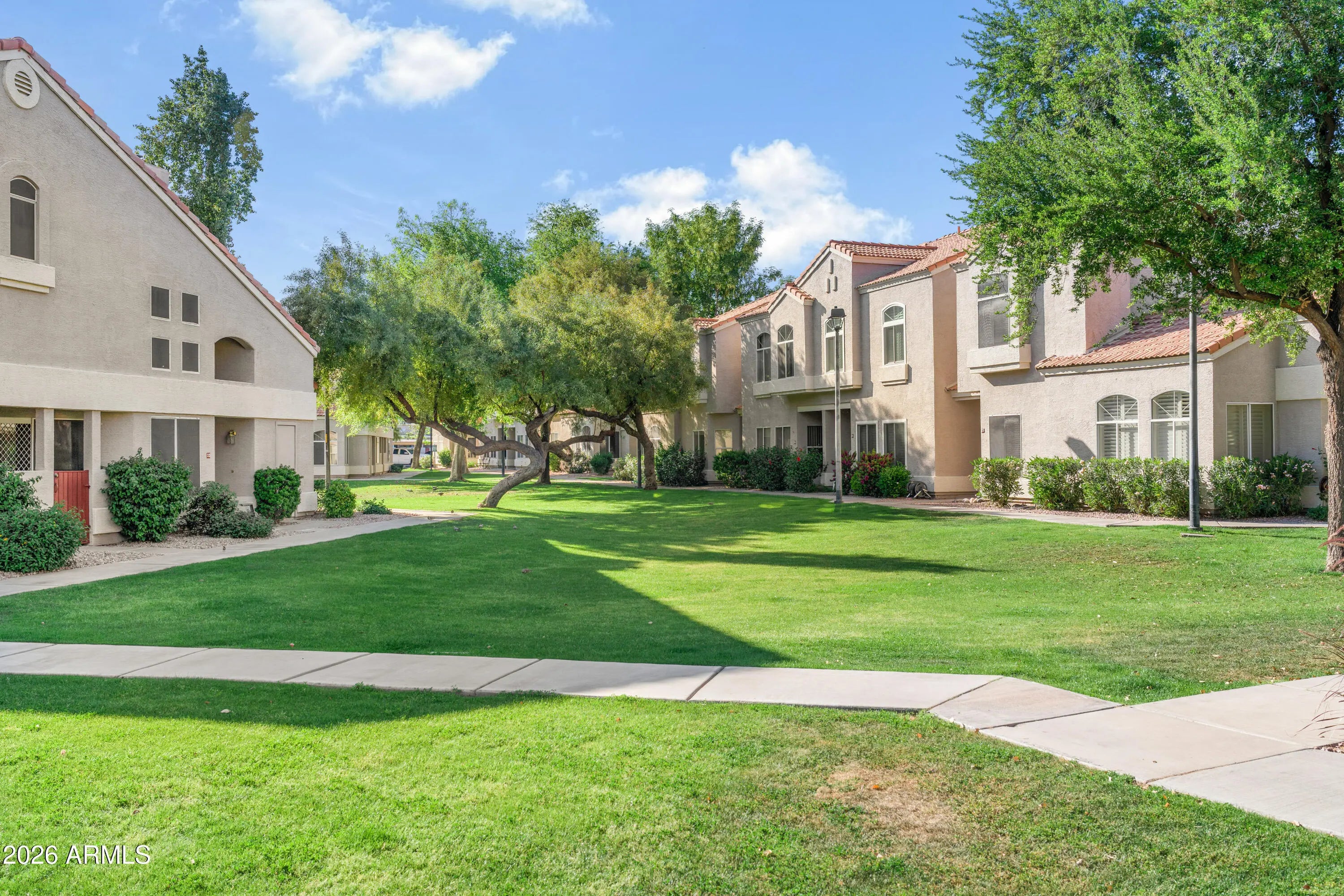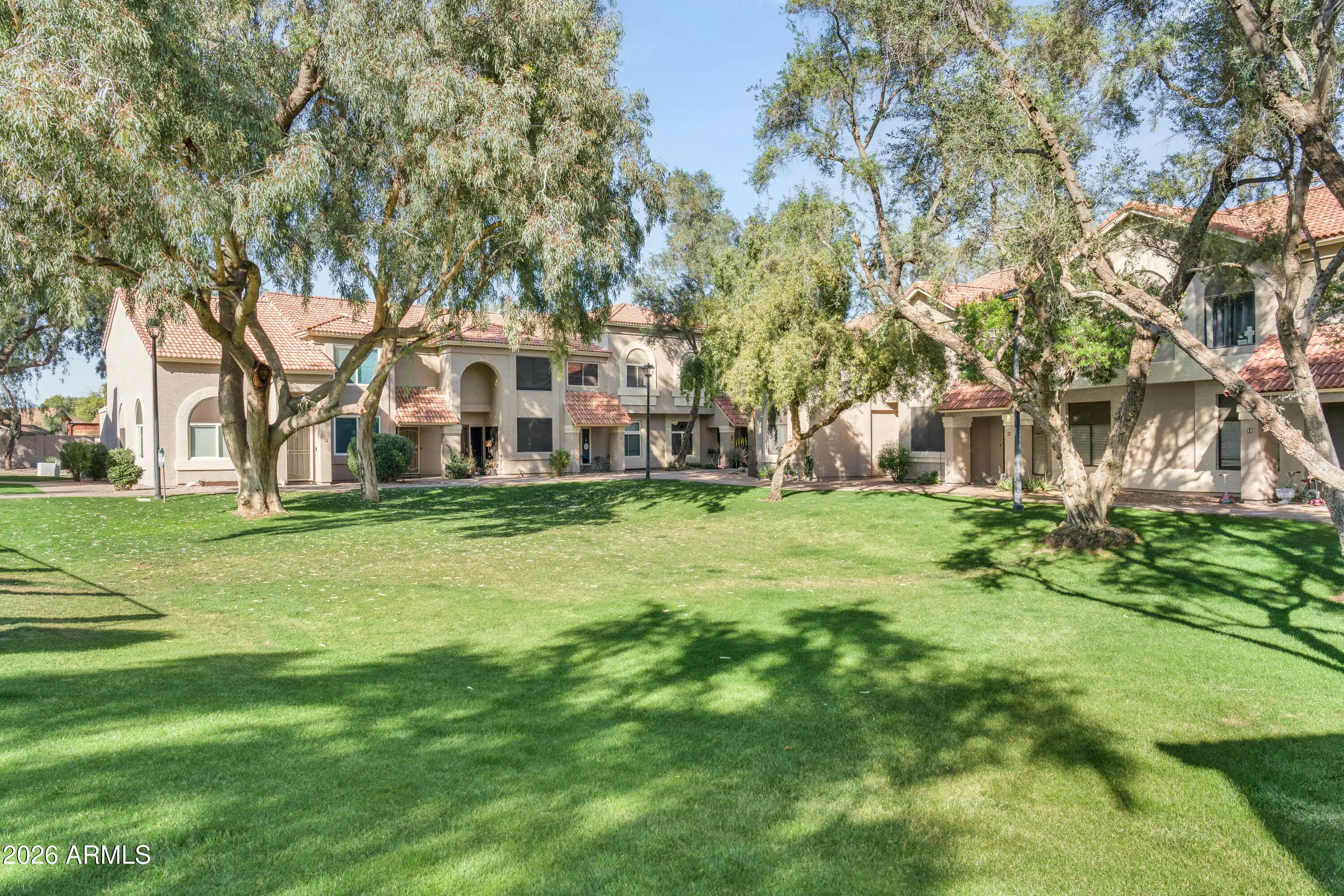 Upstairs, you'll find two generously sized bedrooms, each offering privacy and comfort, along with 2 full bathrooms and a convenient half bath downstairs for guests. Enjoy resort-style living with access to the community's sparkling pool, shaded ramadas, and lush greenbelt areas, all surrounded by mature trees and well-kept landscaping that create a peaceful, park-like setting. Located in a prime Chandler location near the Loop 202, shopping, dining, and major employment centers, this home is ideal for first-time buyers, investors, or anyone seeking low-maintenance living in a central location.