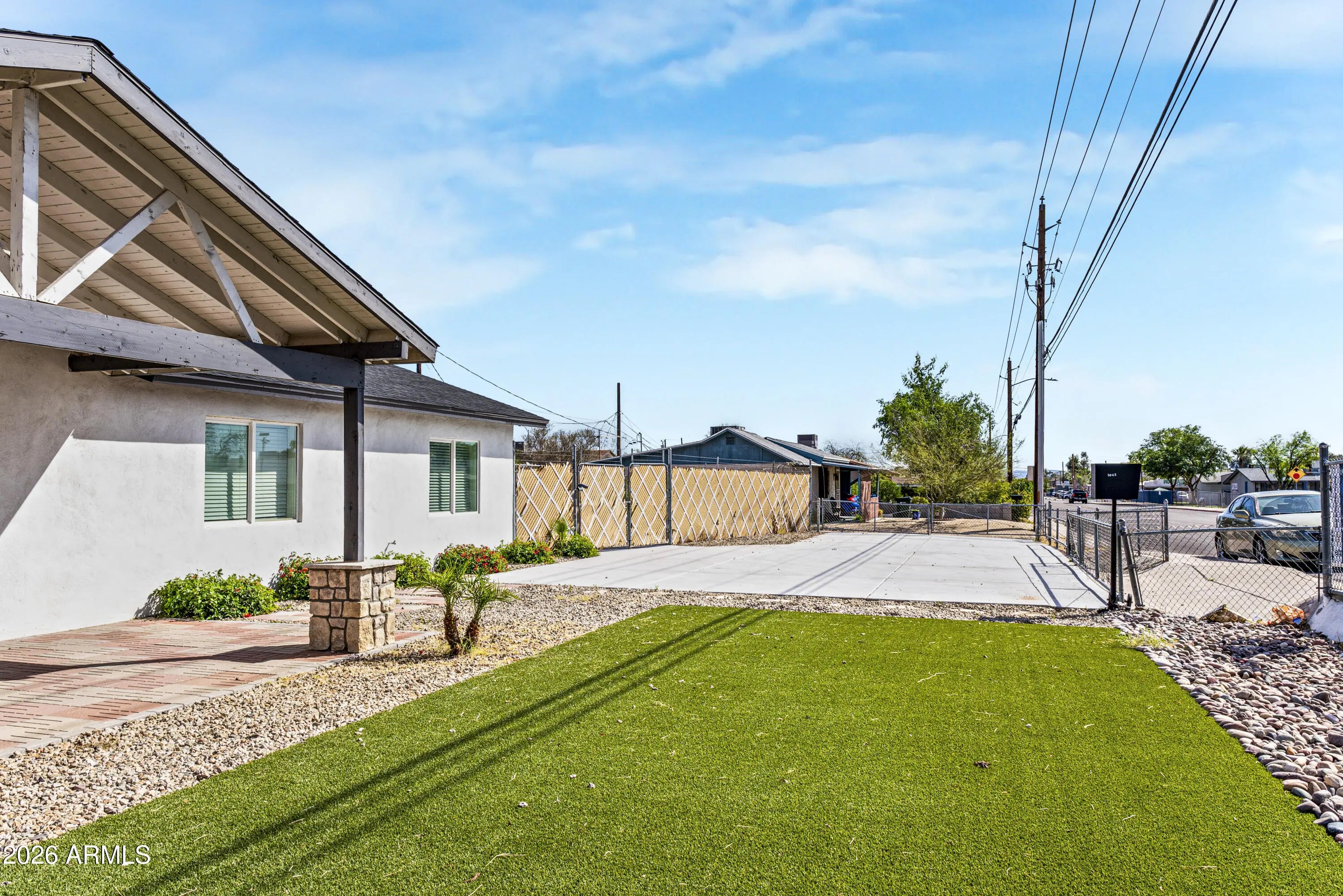 East/West Exposure, Alley, Corner Lot, Dirt Back, Gravel/Stone Front, Synthetic Grass Frnt