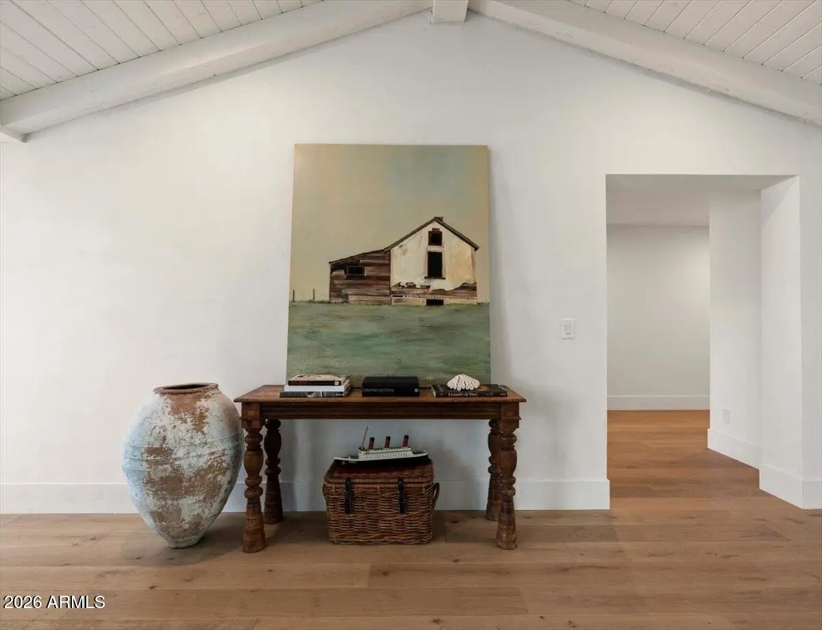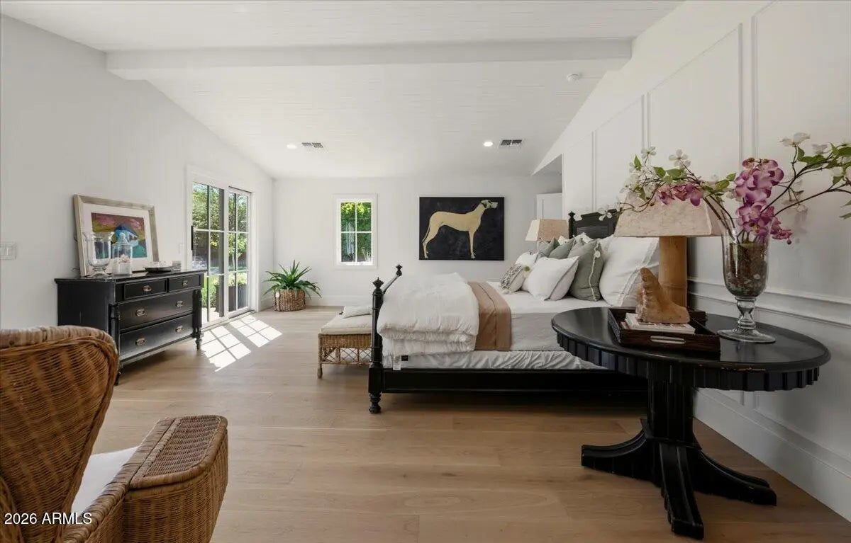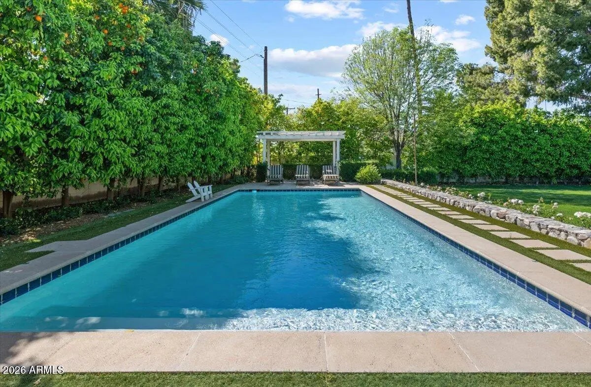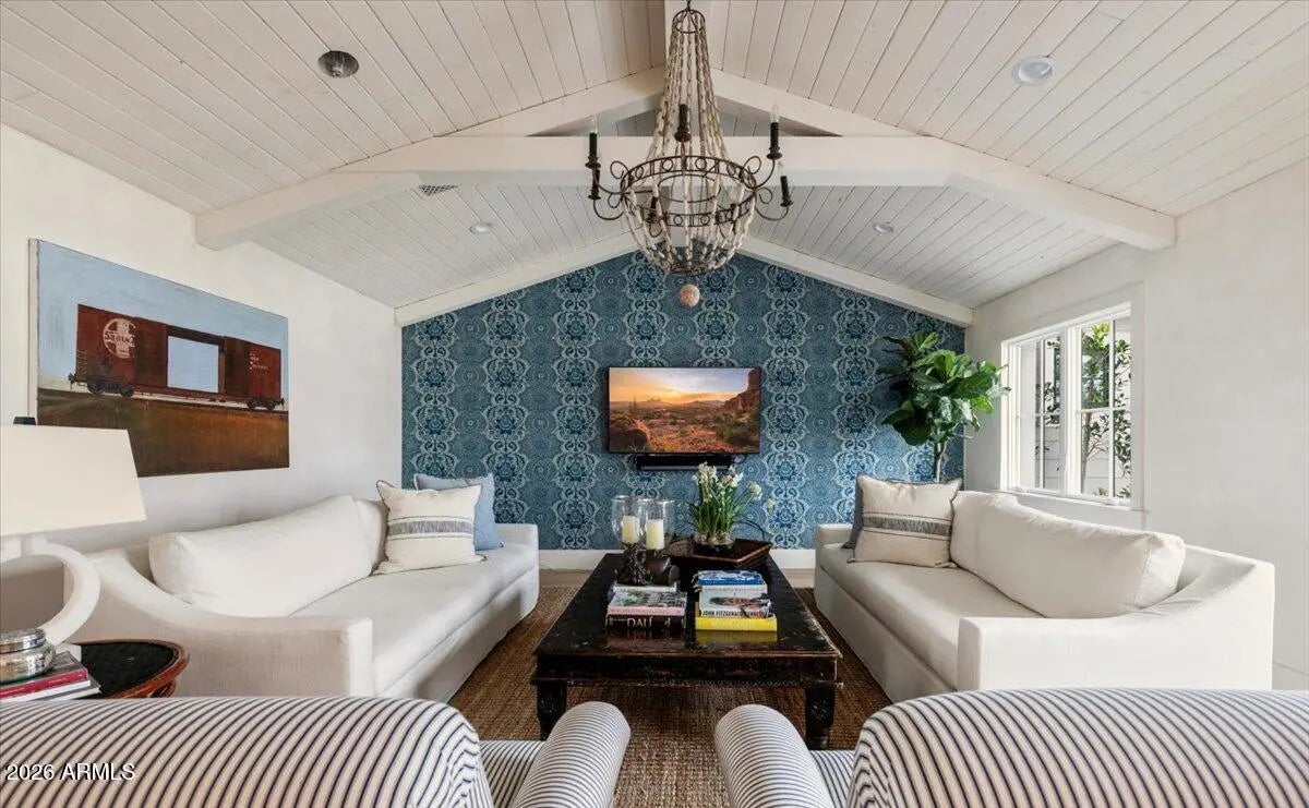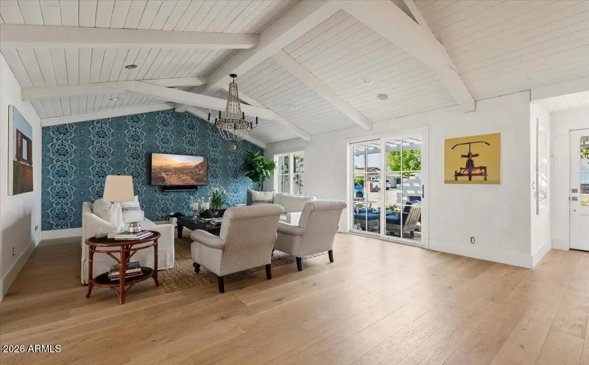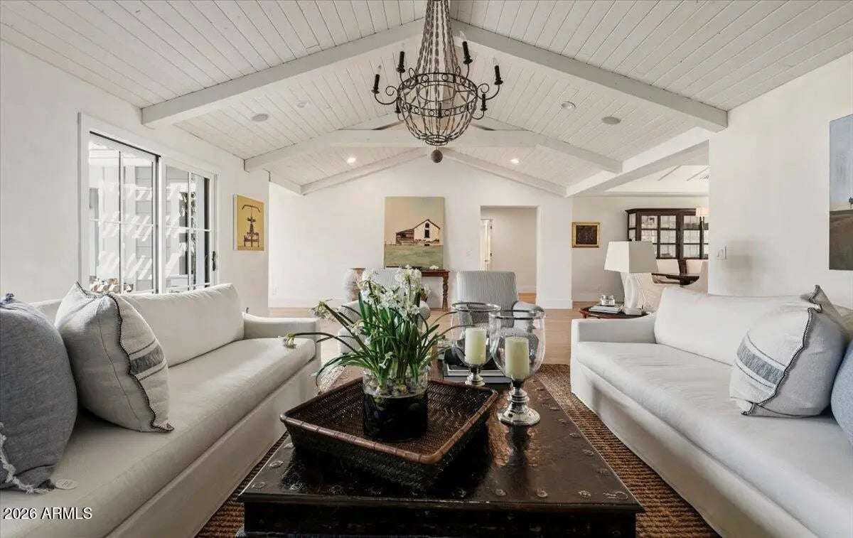 Welcome to 6141 E Calle Camelia--an exceptional Modern Coastal retreat perfectly positioned on a private half-acre lot with breathtaking Camelback Mountain views. Newly remodeled and completed in 2026, this thoughtfully designed estate blends timeless charm with elevated, resort-style living. The property features a 3,845 sq ft main residence plus a 590 sq ft guest house, offering a total of 6 bedrooms and 6.5 bathrooms, with all bedrooms ensuite--ideal for both family living and hosting guests with ease. From the moment you arrive, the home's incredible curb appeal and professionally landscaped grounds set the tone. Inside, vaulted ceilings and wide-plank wood flooring create a bright, airy ambiance, while expansive living spaces seamlessly connect indoors to out. At the heart of the home, the chef's kitchen is designed for both everyday living and entertaining, complete with a large island, abundant storage, and picturesque views overlooking the backyard oasis. The primary suite is a true retreat, featuring a spacious sitting area, direct access to the backyard, and an impressive custom closet. Step outside to experience the ultimate Arcadia lifestyle--an incredible backyard designed for gathering and relaxation. Enjoy the sparkling pool, built-in BBQ, outdoor dining areas, and a cozy outdoor fireplace, all surrounded by lush landscaping and plenty of space to roam. Additional features include an attached 2-car garage plus a detached 1-car garage, all located on a quiet, family-friendly street within the highly sought-after Hopi School District. This is more than a home--it's a lifestyle.