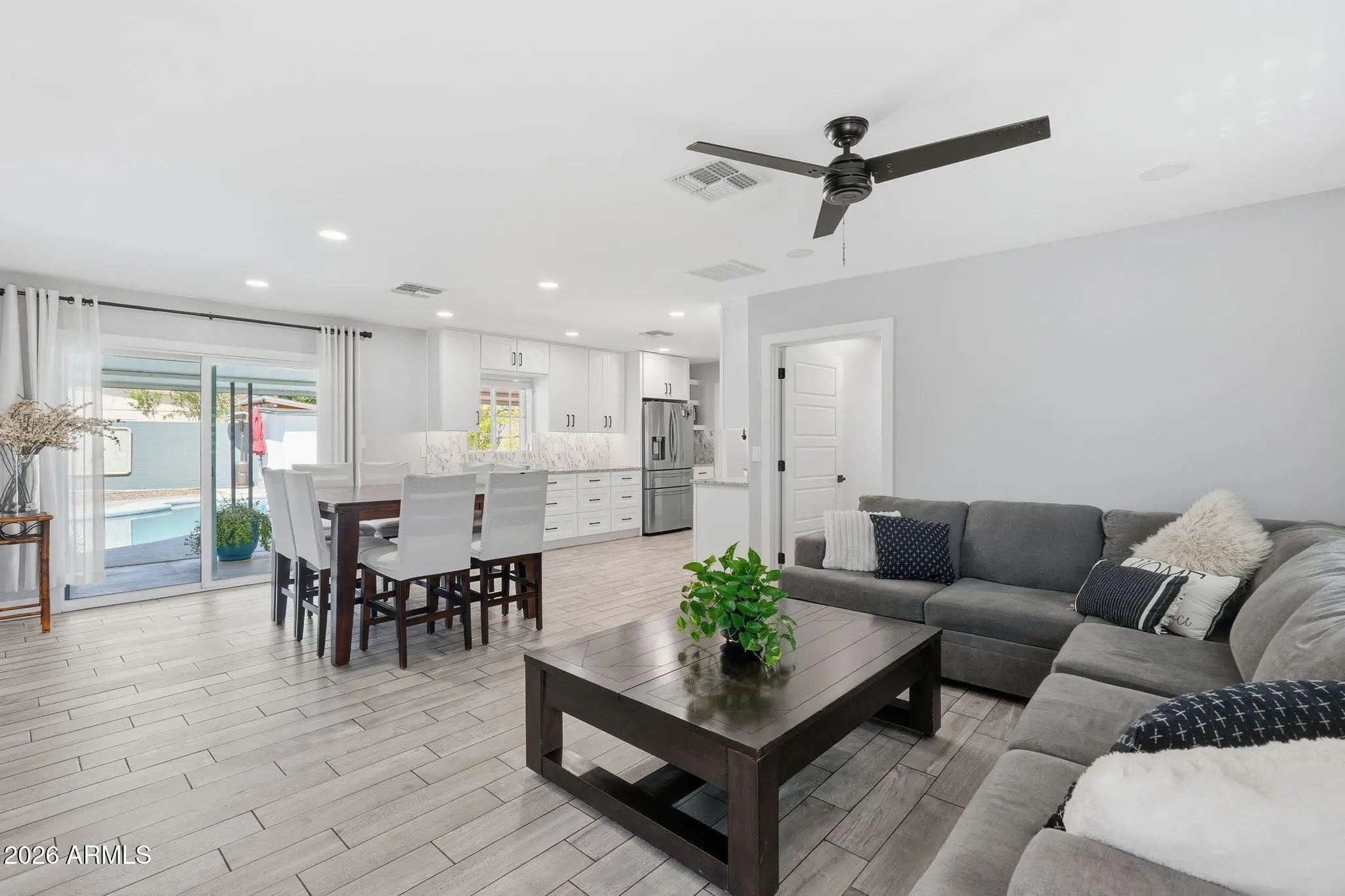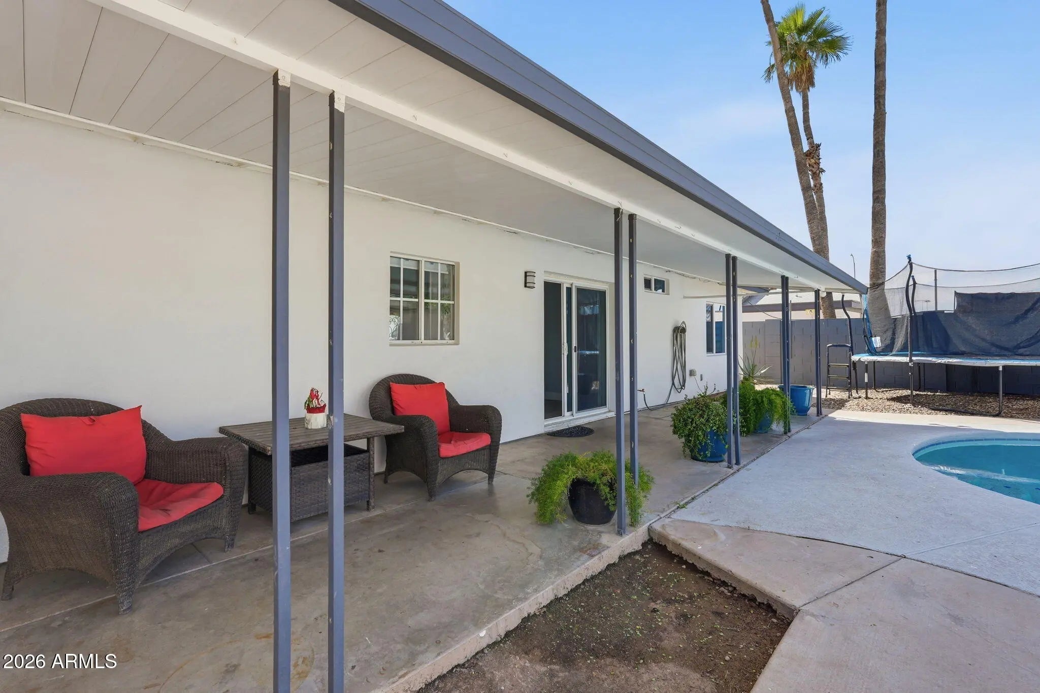Welcome to your beautifully renovated dream home! This stunning 3-bedroom, 2-bath residence has been completely updated from top to bottom, offering peace of mind and modern comfort at every turn. Major upgrades include new A/C unit, Bathrooms, flooring, drywall, spray foam insulation, electrical, plumbing, and energy-efficient windows, along with updated stucco for enhanced efficiency and a beautiful Iron front door for added curb appeal. Step inside to a brand-new kitchen designed to impress, featuring elegant backsplash as well as granite countertops, a convenient pot filler, and a sleek electric stove--plus a gas stub option available for buyers who prefer cooking with gas. The spacious primary suite offers a relaxing retreat with a cozy fireplace, a large walk-in closet, and... and a beautifully designed bathroom complete with stylish tile work and a glass enclosure. A second fireplace in the living room adds warmth and charm, creating the perfect space to gather and unwind. Outdoors, enjoy your own private oasis with a sparkling pool and a charming gazebo--perfect for entertaining, relaxing, or enjoying Arizona evenings. The home also includes solar panels to help reduce energy costs. This move-in-ready home blends modern upgrades with comfort, efficiency, and style--don't miss your opportunity to make it yours