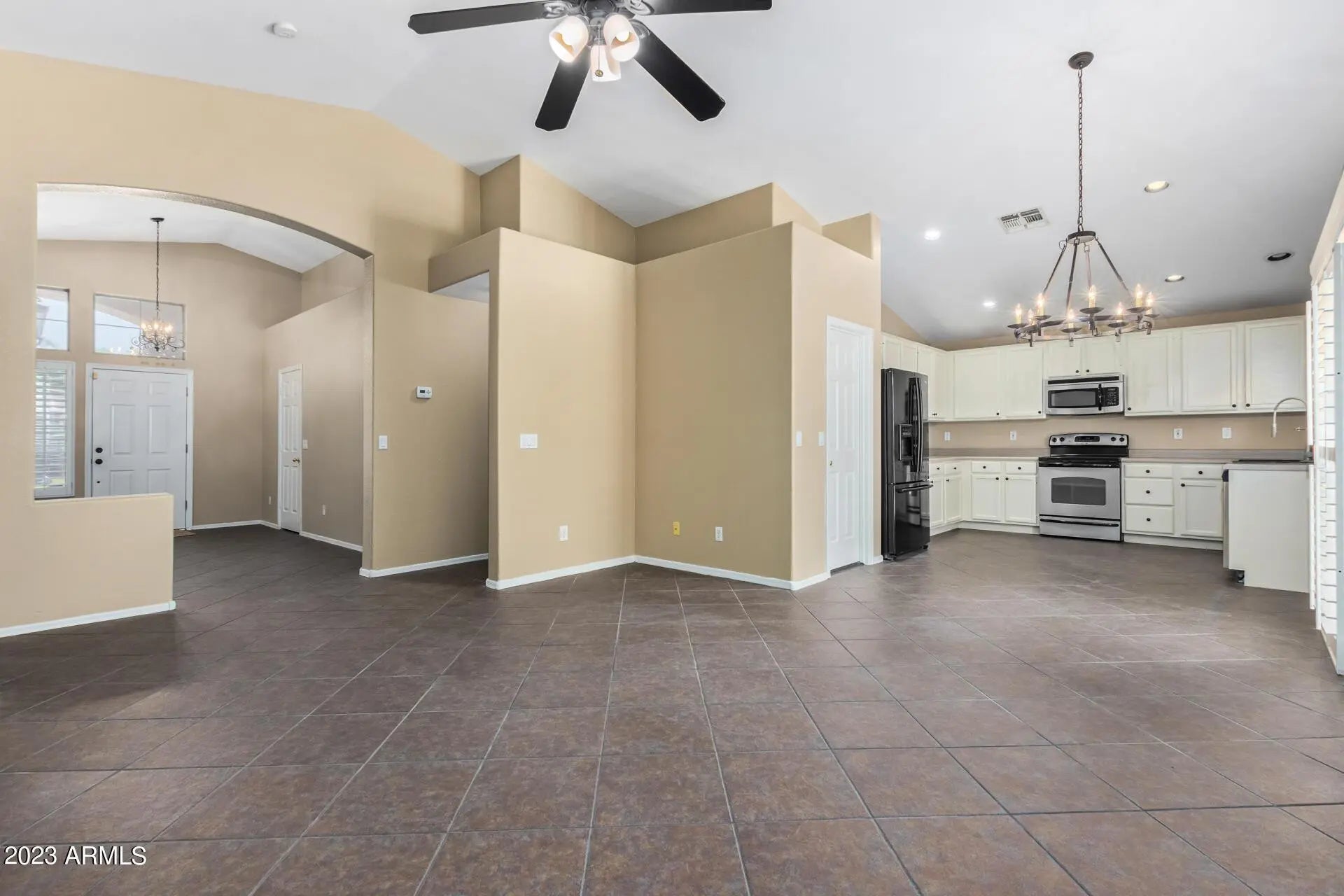 (Now available for showing 4/14/2026) Check out this charming 3 bed, 2 bath home in Chandler! This property offers a 2-car garage, a well-kept landscape, and a lovely facade. Welcoming interior features a spacious living room, soaring vaulted ceilings, dazzling chandeliers, plantation shutters, trending paint, & neutral tile flooring. Continue to the HUGE great room showcasing a beautiful kitchen complete with white cabinets, built-in appliances, a pantry, & recessed lighting. The sizable primary suite highlights an immaculate ensuite w/dual sinks, a separate shower & tub, and a walk-in closet. All bedrooms are provided with wood-look floors for warmth underfoot. The backyard is awesome for outdoor gatherings, it has a relaxing covered patio, BBQ grill, dining bar, fire pit, and a refreshing pool. Hurry! See it now!