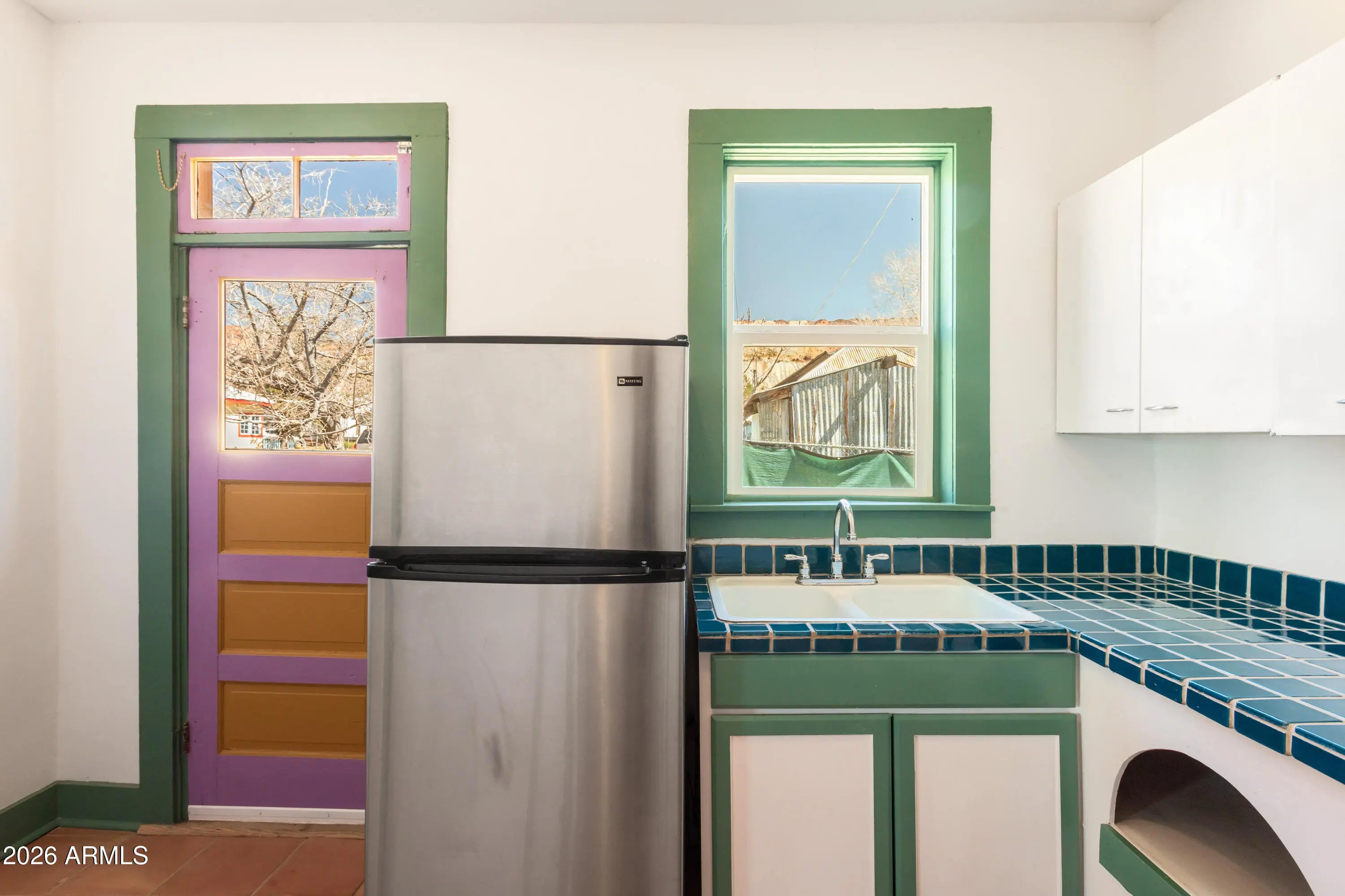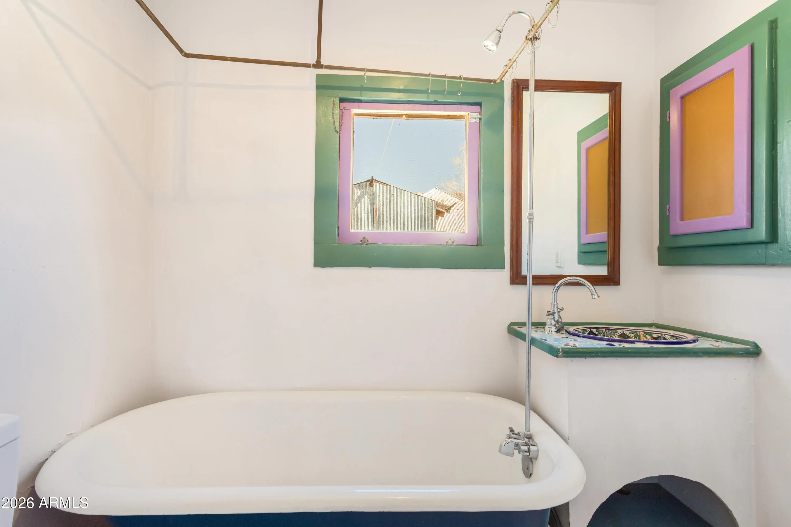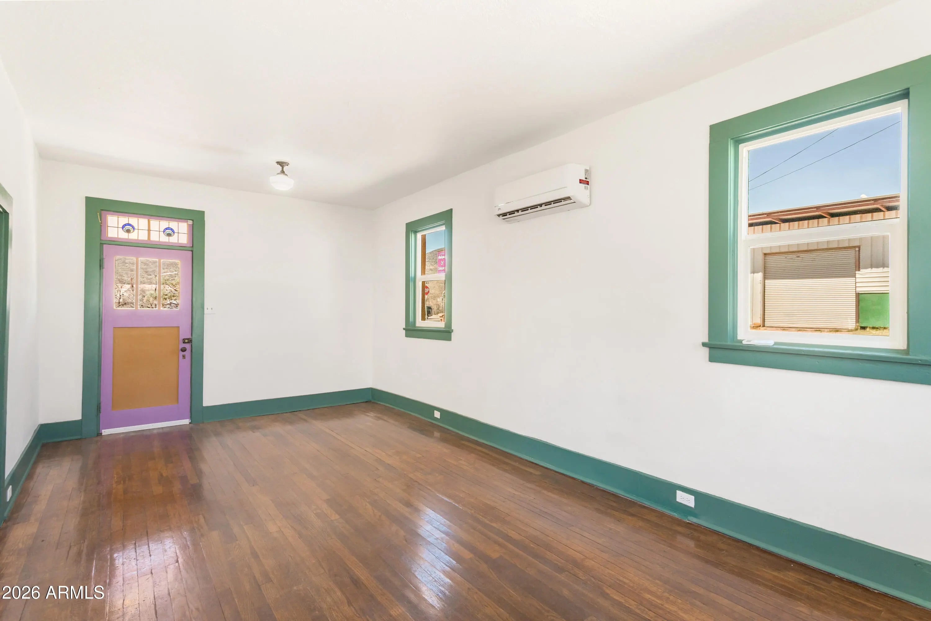 Solid little house that was brought back to life in 2022/23! One bedroom, one bath, approximately 675 sq ft house. All electric everything, dual pane windows, clawfoot tub, ductless heating and cooling (mini split), new electric meter (2022), stained glass transoms, saltillo tile and hardwood floors. It has an exterior storage area and covered porch on one side. Located by the Hitching Post and the shops in Bakerville. The front yard has some established cactuses and a beautiful old juniper tree. The home sits on relatively level ground with easy access. It's the kind of small Bisbee house that feels welcoming and full of good vibes. Make it your own!