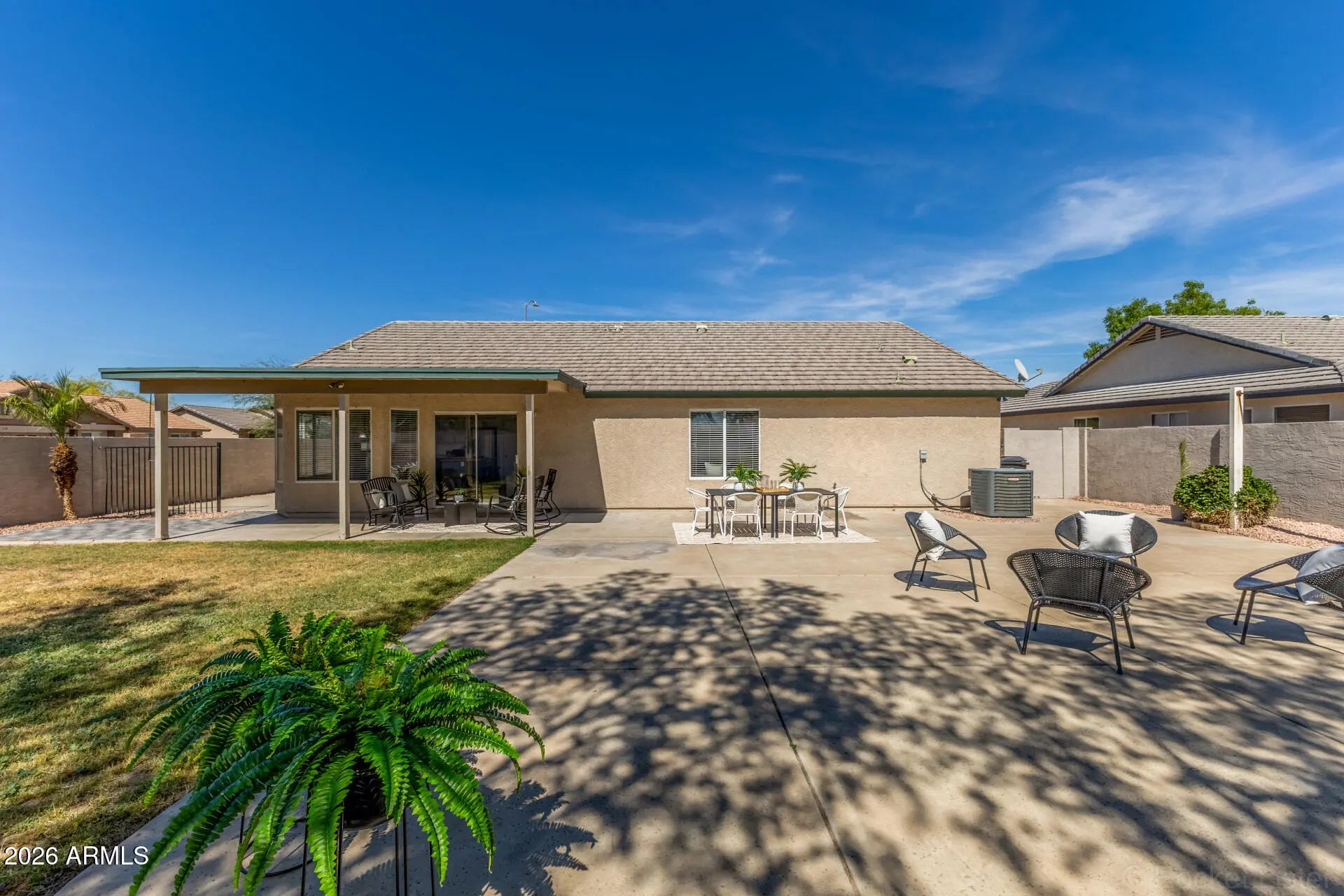 Positioned on a desirable corner lot with over 8,100 sq ft and no neighbors behind, this beautifully updated home offers privacy, space, and everyday comfort in a highly convenient location. Featuring over 1,800 sq ft, this 4-bedroom home offers a flexible and functional layout with a separate front living space perfect for a home office, playroom, or additional lounge, along with an open-concept kitchen and family room designed for gathering and connection. The kitchen is both warm and practical, showcasing a butcher block island, double oven, stainless steel appliances, and ample room to cook and entertain. All new interior paint and brand new carpet, combined with wood-look blinds throughout, create a clean, inviting, and truly move-in ready feel. Recent updates--including a newer HVAC system (2023), exterior paint, and energy-efficient sunscreens--provide added value and peace of mind. The oversized backyard features a covered patio, fresh landscaping, a versatile half-paved area, and an RV gate with side parking. With only one neighboring home and a private setting, this property stands out for both space and functionality. Ideally located near parks, trails, schools, dining, and freeway access, this home offers the lifestyle, flexibility, and value today's buyers are looking for.