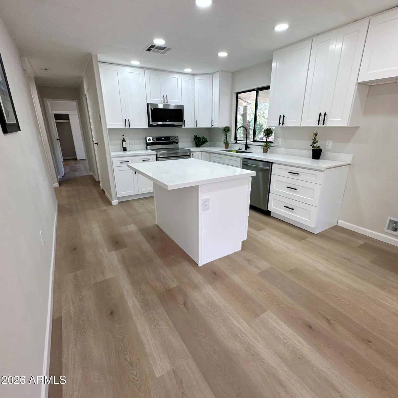 Updated 3 bedroom, 2 bath Home with 2 Car Garage. The home has a Spacious Gourmet Kitchen with New Quartz Countertops, New 42'' Cabinets, Large Island, Stainless Steel Appliances, New Plank Flooring, New Lighting and Plumbing Fixtures. The Kitchen leads out to a Great Room with a Vaulted Ceiling with Brand New Plank Flooring with access to a Covered Porch. Master Bedroom New Plank Flooring, the Mater Bath has Quartz Countertop, Dual Sinks, New Cabinets and Walk-in Shower. The Home has New Flooring, Dual Pane Windows, New Ceiling Fans, Paint, New Lighting, Hardware and Plumbing Fixtures and New Paint Throughout the Home. Easy walking or bicycling to town, Parks, Restaurants and Entertainment.