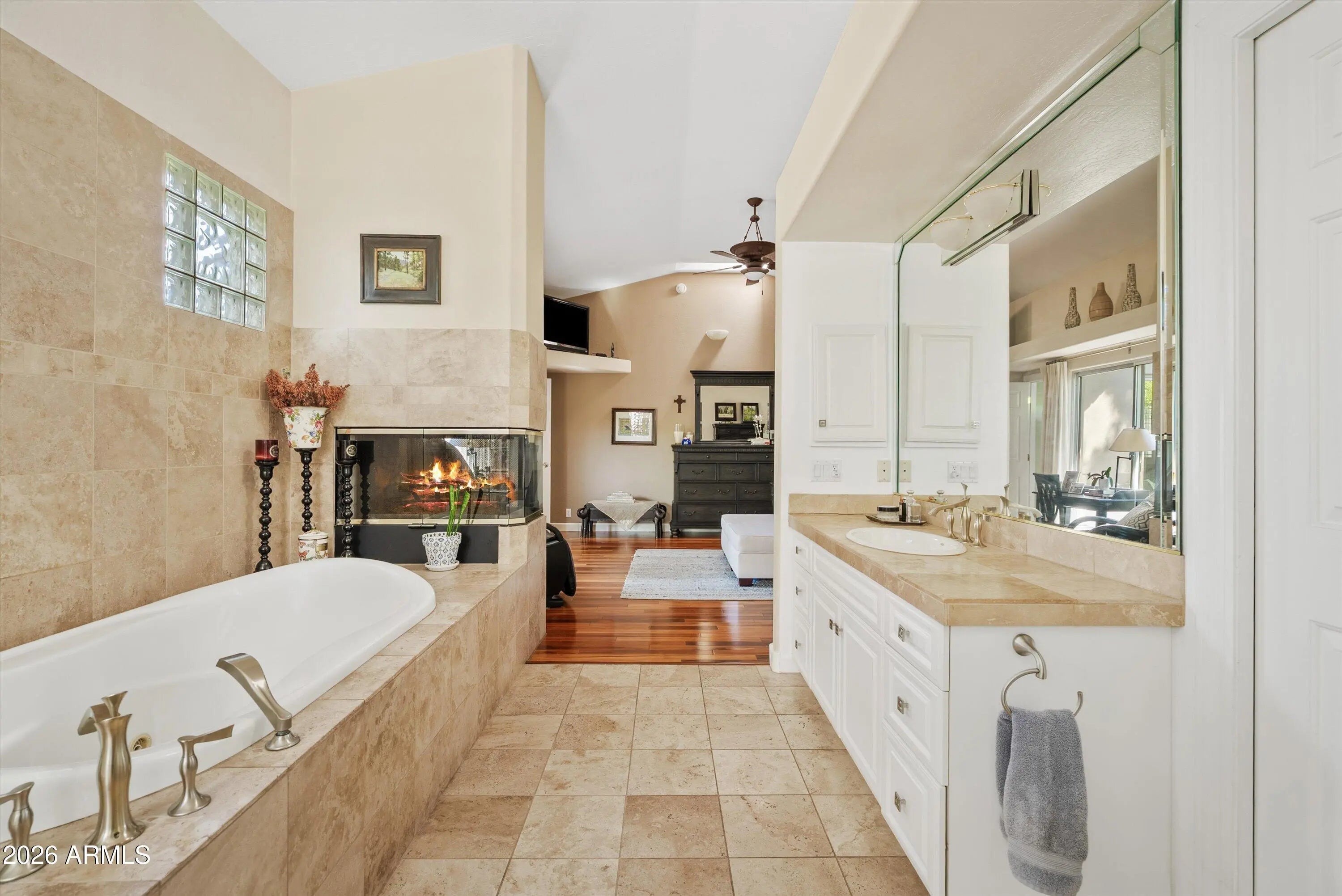 Two Way Fireplace, Living Room, Master Bedroom, Gas