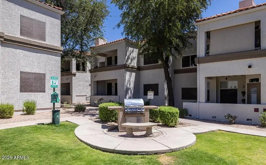 Please allow 2 hour notice for showings. Stop in and see this lovely 2-bedroom, 2-bath condo with a split floor plan. Both bedrooms feature walk-in closets; the primary suite offers a private 3/4 bath with a walk-in shower. The kitchen includes abundant cabinetry, a pantry, granite countertops, and a breakfast bar adjacent to the dining area. In-unit laundry with storage and included washer/dryer is conveniently located next to the kitchen. The living room, with a fireplace, opens to a private covered balcony for outdoor relaxation. Ideal for first-time buyers, seasonal residents, or investors in this upscale Scottsdale neighborhood.