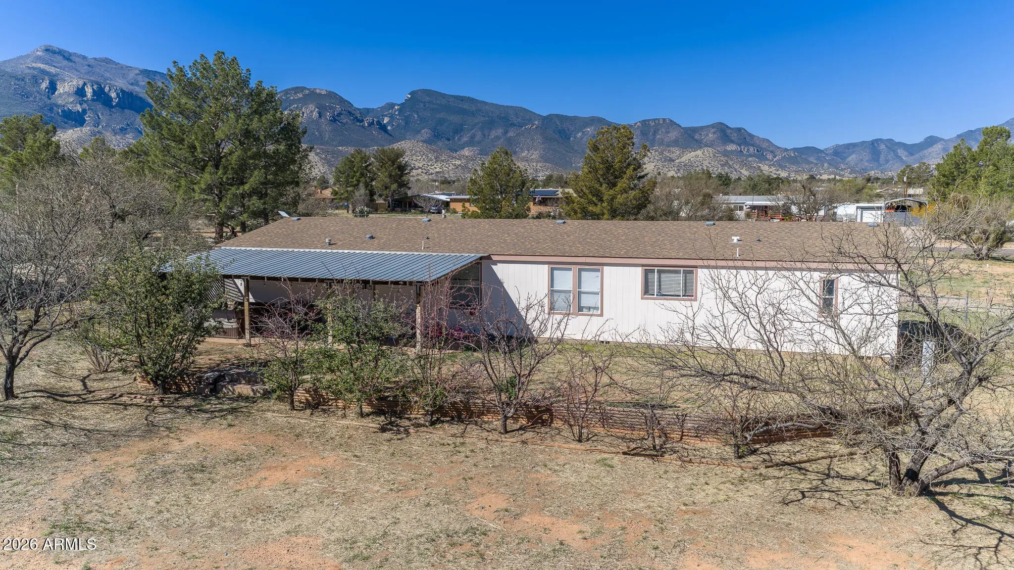 This 4-bedroom, 2-bath home sits on just over an acre of land, offering space, privacy, and breathtaking mountain scenery. Inside, you'll find a thoughtfully designed split floor plan, featuring a spacious primary suite with a walk-in closet and large bathroom. The open kitchen and living area is the heart of the home, complete with stainless-steel appliances and plenty of storage. On the opposite side, three additional bedrooms, a full bath, and a huge bonus room provide flexibility for guests, hobbies, or a home office. Outside, there's no shortage of space to include a 18x20 steel garage, two RV gates, and room for all your toys. End your day on the private patio surrounded by peaceful desert skies.