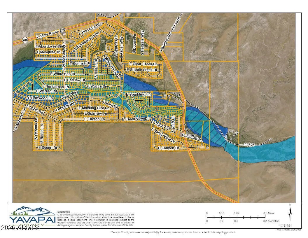 GREAT PRICE AND OVER ONE THIRD ACRE (.36) LOCATED IN THE CLEAR CREEK WEST SUBDIVISION. CONVENIENT LOCATION AND PERFECT FOR OUTDOORS ENTHUSIAST WHO WANT TO BE CLOSE TO TOWN WITH EASY ACCESS TO MANY AMENITIES. CLOSE PROXIMITY TO THE WEST CLEAR CREEK & VERDE RIVER. CURRENTLY RECREATIONAL USE ONLY AS PROPERTY LOCATED IN REGULATORY FLOODWAY. ZONED R1-10** THINKING OF CREATING YOUR OWN HOME, BEGIN YOUR DUE DILIGENCE THROUGH STACEY YEAGER, CFM HYDROLOGIST FOR YAVAPAI COUNTY FLOOD DISTRICT. BUYER TO VERIFY, ZONING / USE , UTILITIES, AND ALL PERTINENT INFORMATION**YAVAPAI COUNTY.