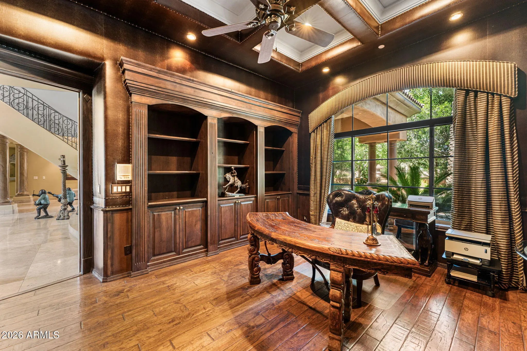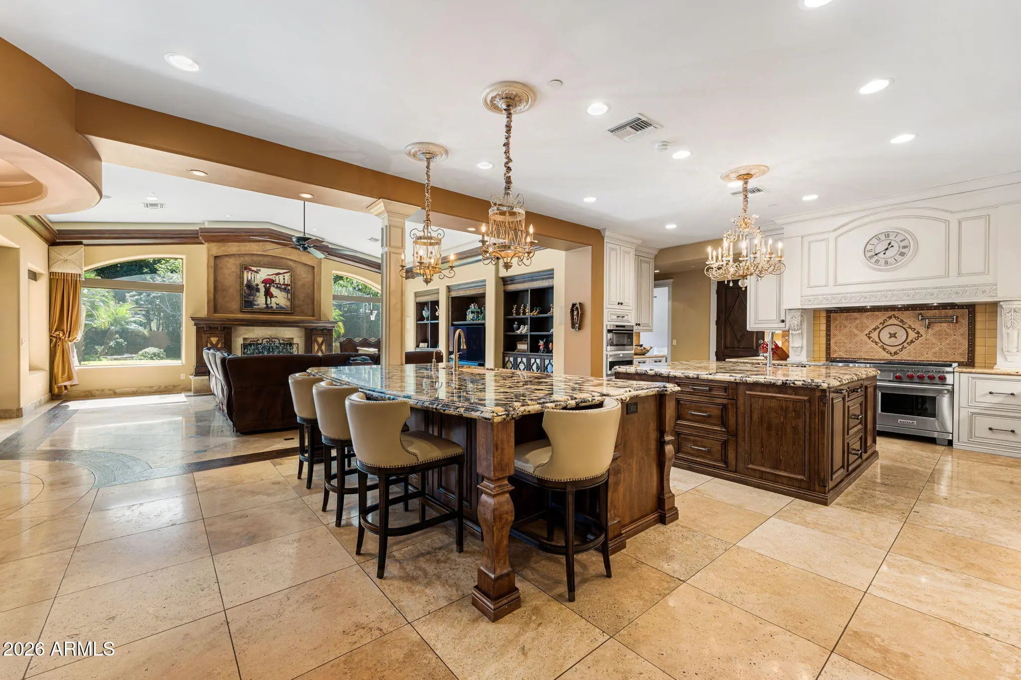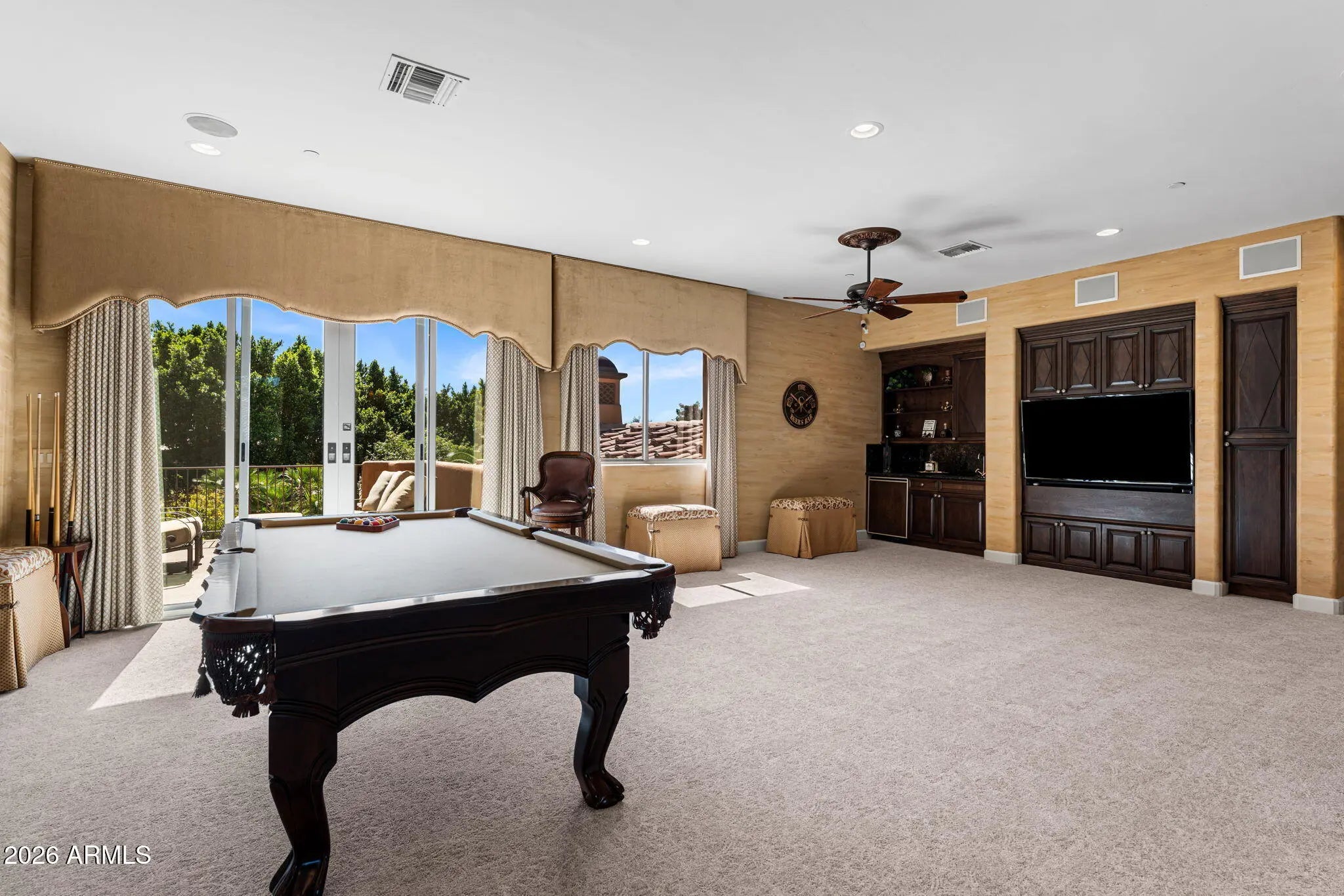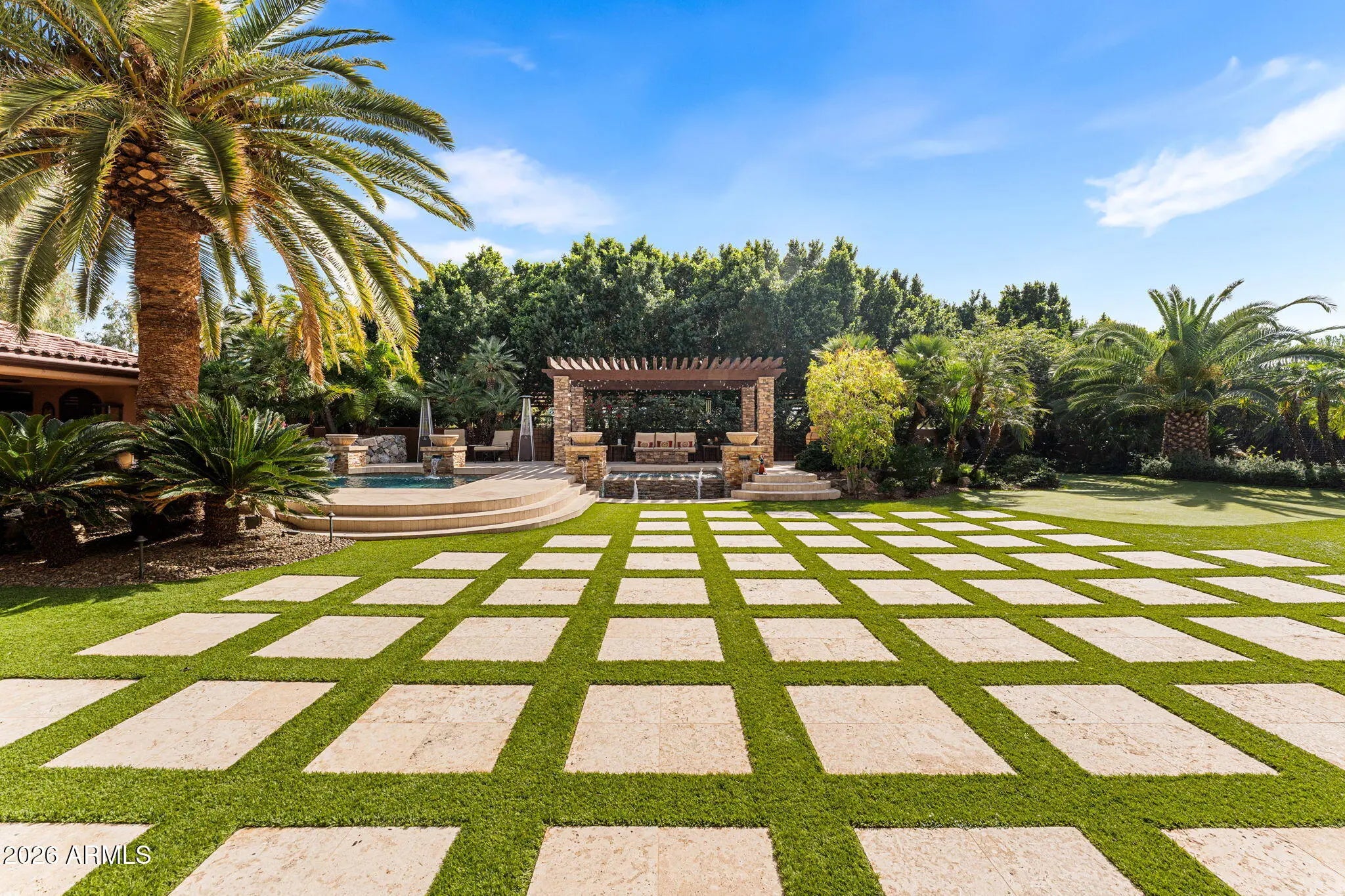 Iconic Mediterranean Estate I Resort Living on a Grand Scale A statement of timeless architecture and refined desert luxury, this magnificent Mediterranean estate offers an extraordinary lifestyle in one of Scottsdale1s most coveted settings. Privately nestled on an expansive 43,000sf homesite, the residence makes a lasting first impression with a sweeping paver motor court, lush mature landscaping, and a stately covered entry designed for elegant arrivals. Spanning 8,433 square feet, the home blends grand scale with thoughtful livability. A dramatic double height foyer, sweeping staircase, and rich architectural detailing set a tone of sophistication, while stone flooring and curated finishes reflect enduring craftsmanship. Designed to host at any scale, the estate offers an effortless flow between formal and casual living spaces ideal for refined entertaining or relaxed everyday living. At the heart of the home, the chef1s kitchen is a showpiece, appointed with dual oversized islands, custom cabinetry, premium appliances, and abundant prep and gathering space for seamless hosting. Five luxurious bedrooms and seven spa inspired baths provide exceptional comfort and privacy, creating serene retreats for both residents and guests. A dedicated billiards room adds a classic touch of leisure and entertainment. Outdoors, the property transforms into a private resort. Enjoy a sparkling pool and spa, a fully equipped outdoor kitchen, and a charming dining gazebo perfect for al fresco evenings. Professional grade pickleball and basketball courts elevate recreation, while expansive grounds offer rare space and seclusion. A four-car garage with EV charging completes the home's modern conveniences. This is a rare opportunity to own a residence that pairs architectural presence with resort caliber amenities crafted for those who expect distinction, privacy, and effortless luxury.
