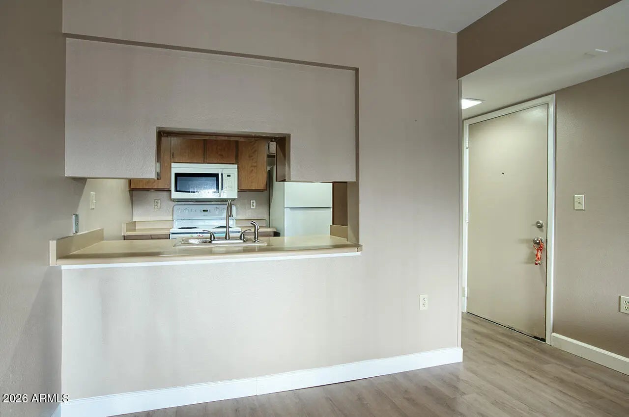 elcome to this affordable remodeled condo in Arcadia light with a MidCentury feel! This 1 bedroom 1 bath condo is the perfect condo for you or for a family member you would like to live close by! This third floor end unit has no neighbors on three sides or above, new Luxury Vinyl Plank flooring throughout and new paint. The kitchen includes white appliances, laminate countertops, and an open view into the family room. The bedroom has plenty of light and space for a queen bed. Third floor full size balcony has views of the mountains! Community is located on Los Olivos Park. Walking distance to tons of restaurants, a short drive to the Biltmore, Downtown and the Airport.