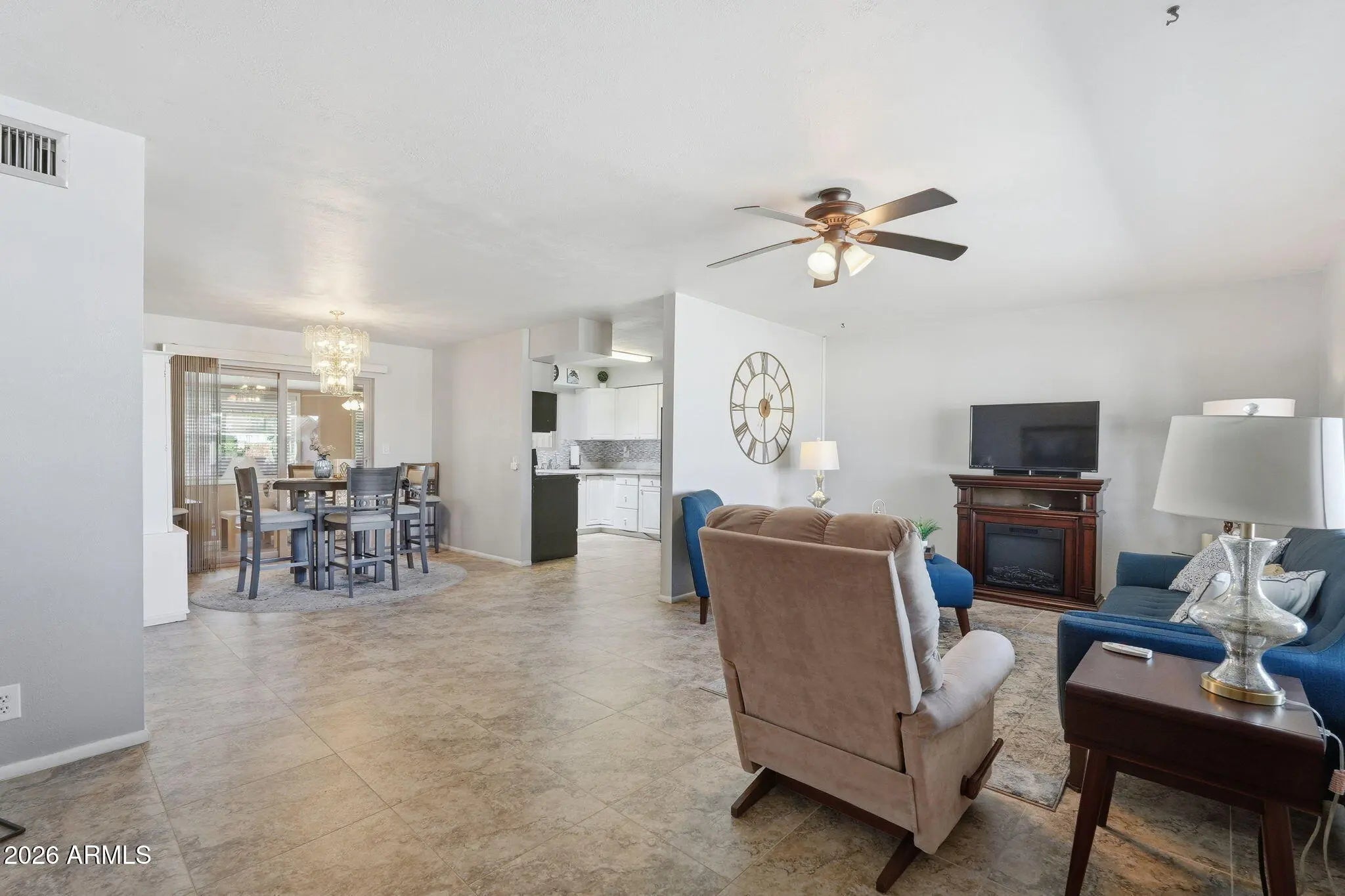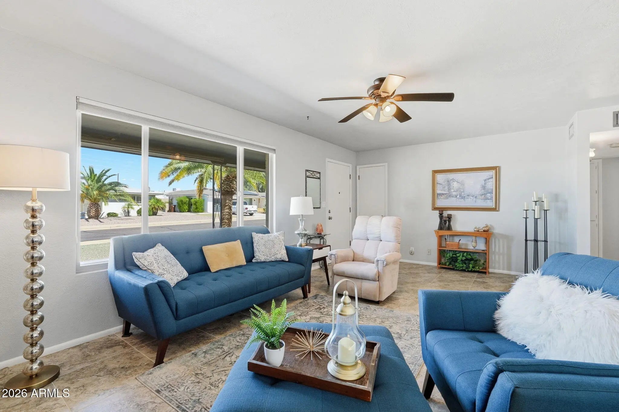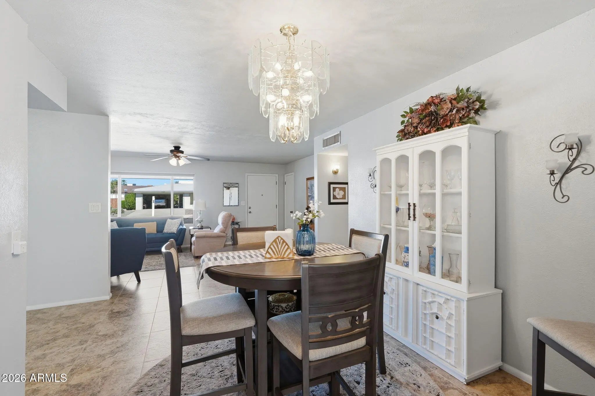 The one you've been waiting for in Dreamland Villa has officially arrived. Beautifully upgraded and move-in ready, this home offers a light, bright kitchen with raised panel cabinetry, granite counters, and a timeless feel that never goes out of style. Thoughtful improvements including NEW ROOF in 2025, dual-pane Low-E windows, 18'' attic insulation, a solar attic fan, and sealed ductwork bring year-round comfort and efficiency. Easy-care tile flooring runs throughout, including the Arizona Room, making everyday living effortless. Set in the highly sought-after 55+ community of Dreamland Villa, you'll enjoy access to pools, spas, and an active lifestyle with endless opportunities to connect and unwind. Homes like this don't come around often. Come see it before it's gone.