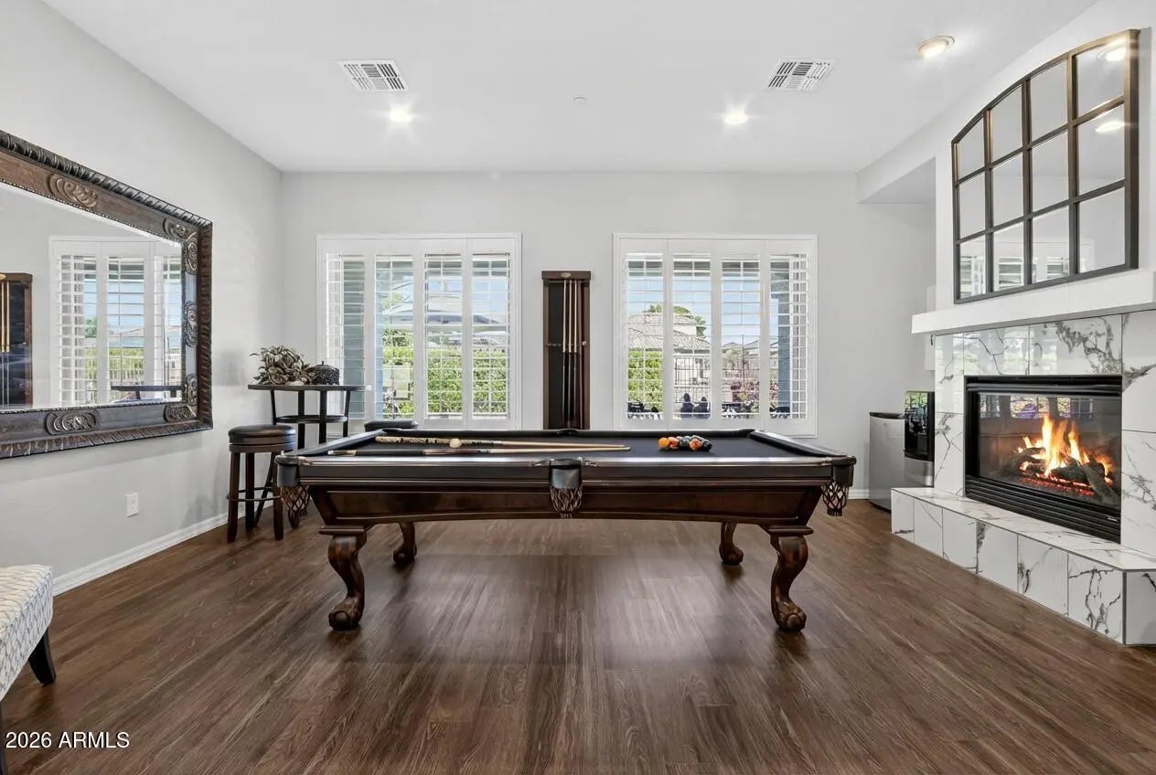 Welcome to this beautifully updated, meticulously maintained basement home in the heart of Litchfield Park. Neighboring WIGWAM GOLF CLUB and right next to the community park, greenbelt & bike paths. Manicured landscaping & 3-car garage create stunning curb appeal. Inside features designer finishes, plantation shutters & abundant natural light. Flexible floor plan includes formal dining, office, bonus room & expansive basement -- ideal for multi-generational living or media room. Gourmet kitchen offers quartz counters, stainless steel appliances & statement island. Owner's suite with spa-like bath & patio access. Private backyard with covered patio & sparkling pool. New windows 2024. Minutes to Goodyear SPRING TRAINING Ballpark. 1% LENDER CREDIT AVAILABLE TO QUALIFIED BUYERS
